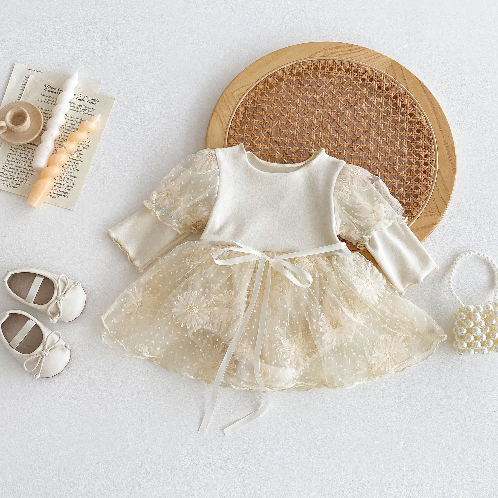여자 원피스 2025 봄과 가을 옷 아기 아기 1 세 거즈 공주 긴 소매 하이 등반 옷 판초 거즈 치마스토어 가기
