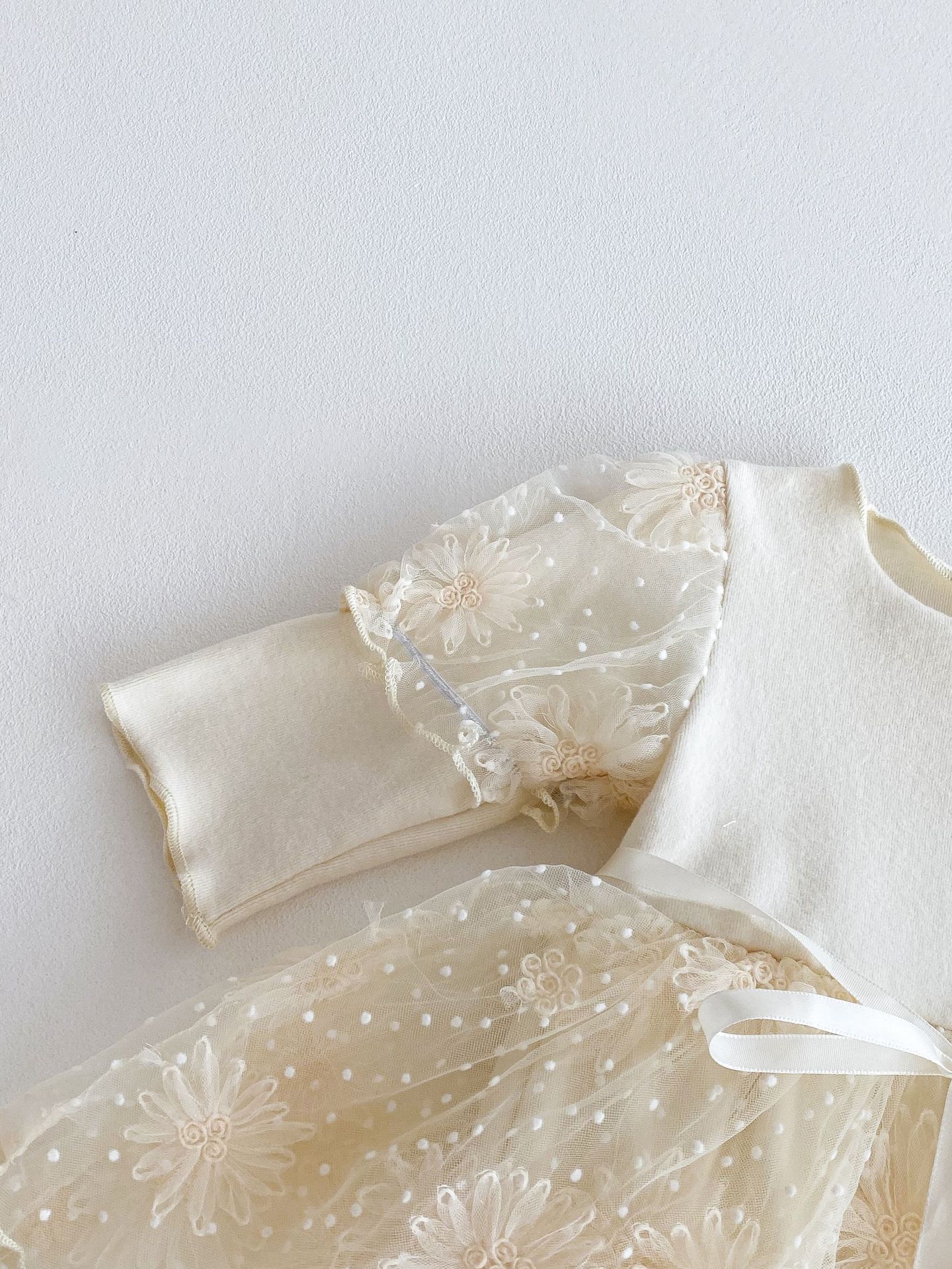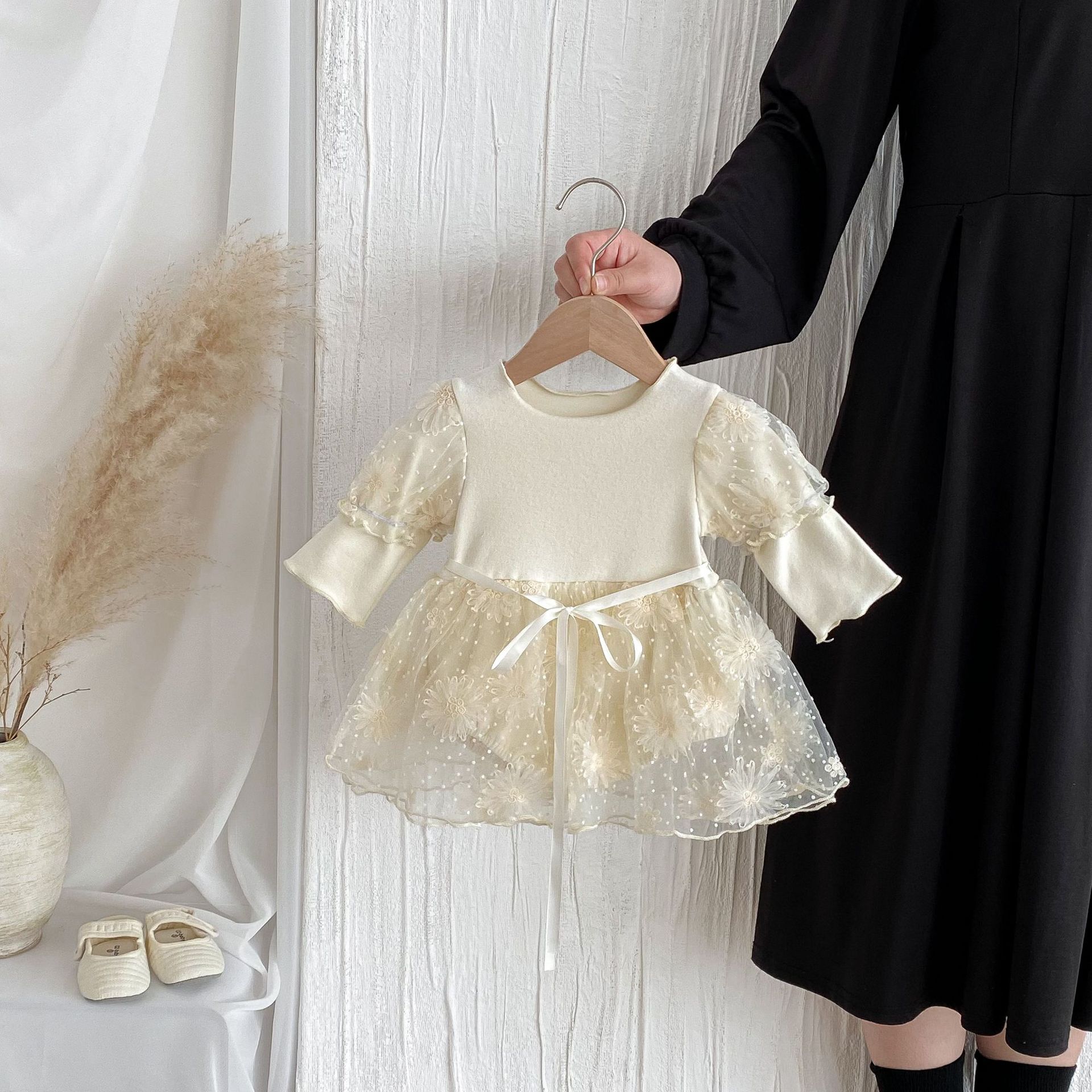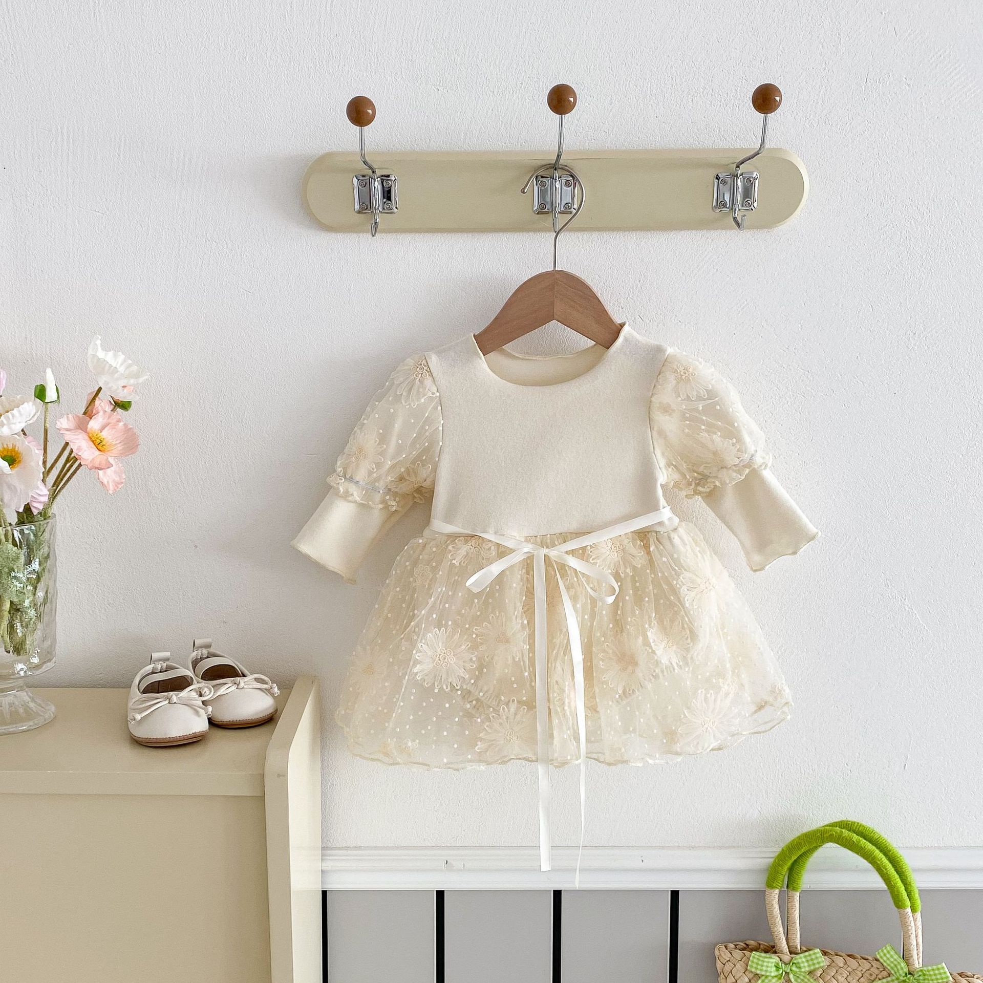 여자 원피스 2025 봄과 가을 옷 아기 아기 1 세 거즈 공주 긴 소매 하이 등반 옷 판초 거즈 치마