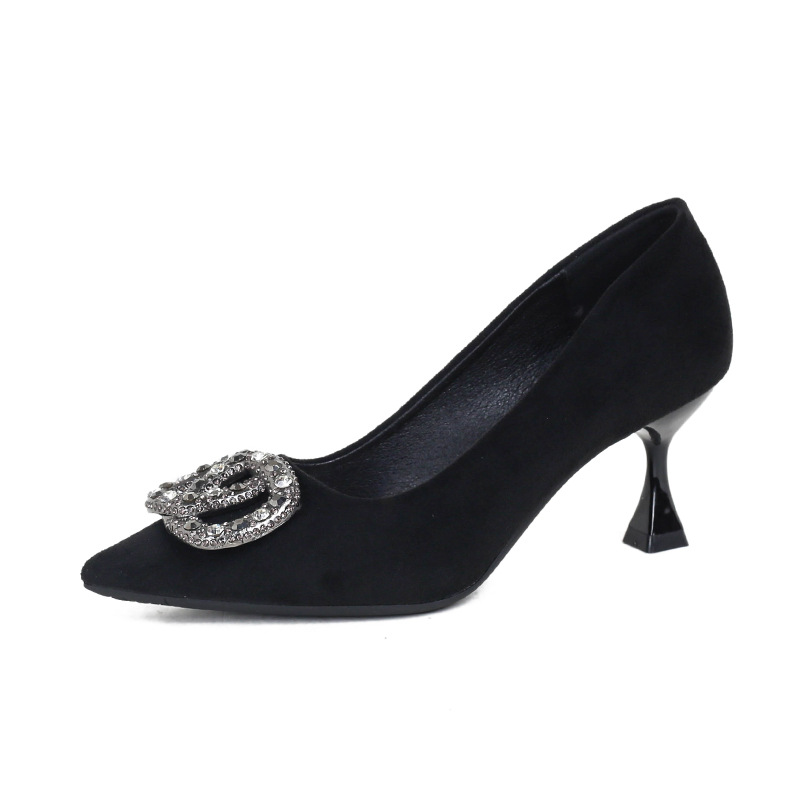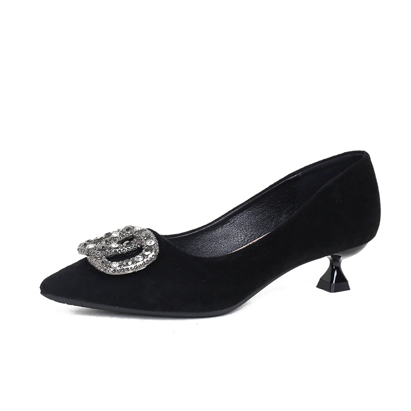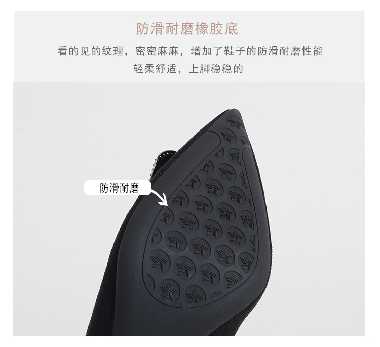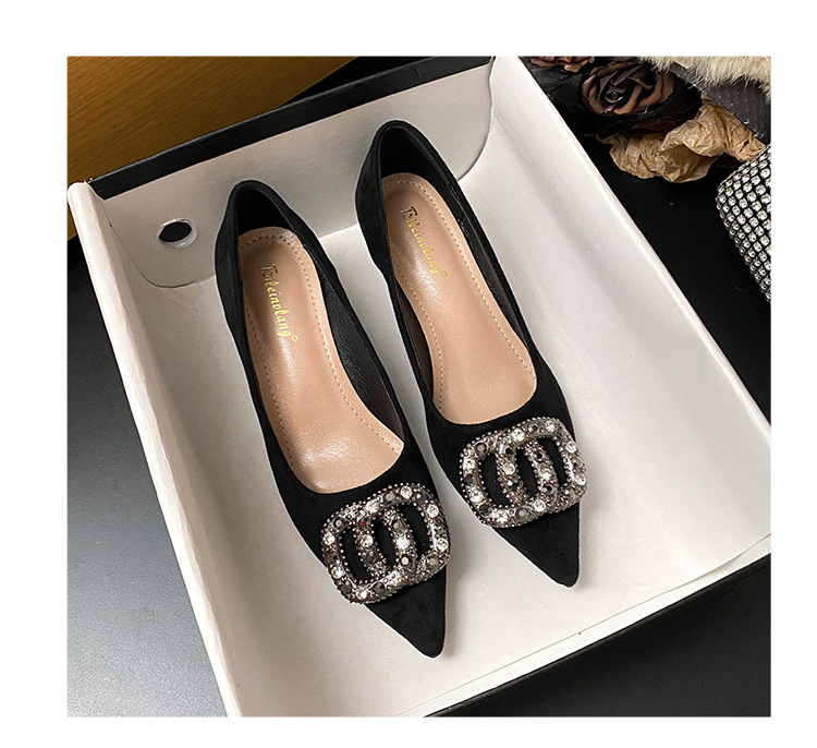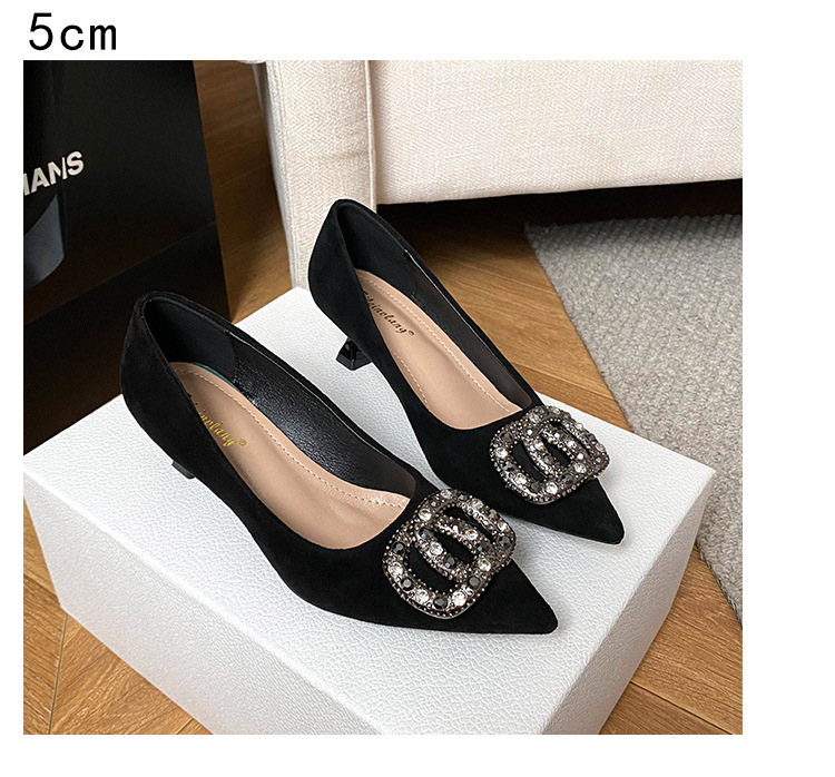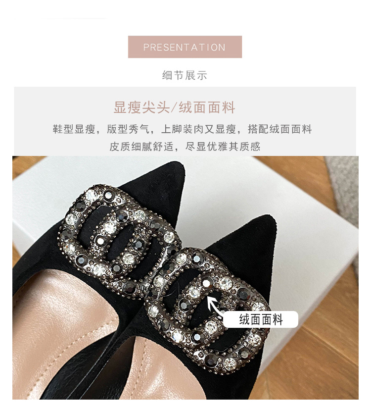 프렌치 레트로 두꺼운 힐 하이힐 여자 25 봄 새로운 통근 올매치 라인스톤 얕은 입 스퀘어 발가락 신발 샤넬 스타일