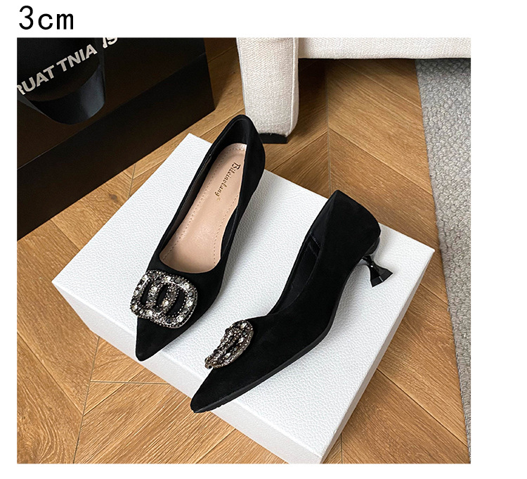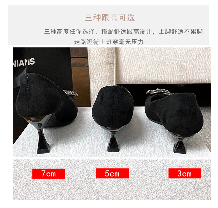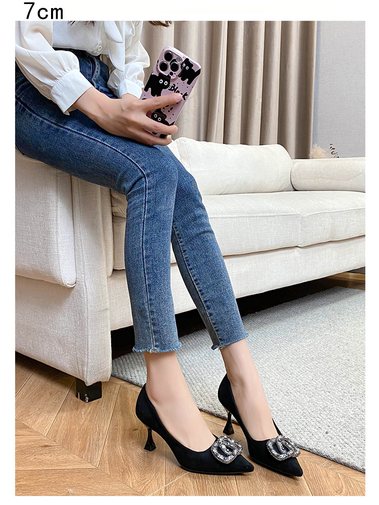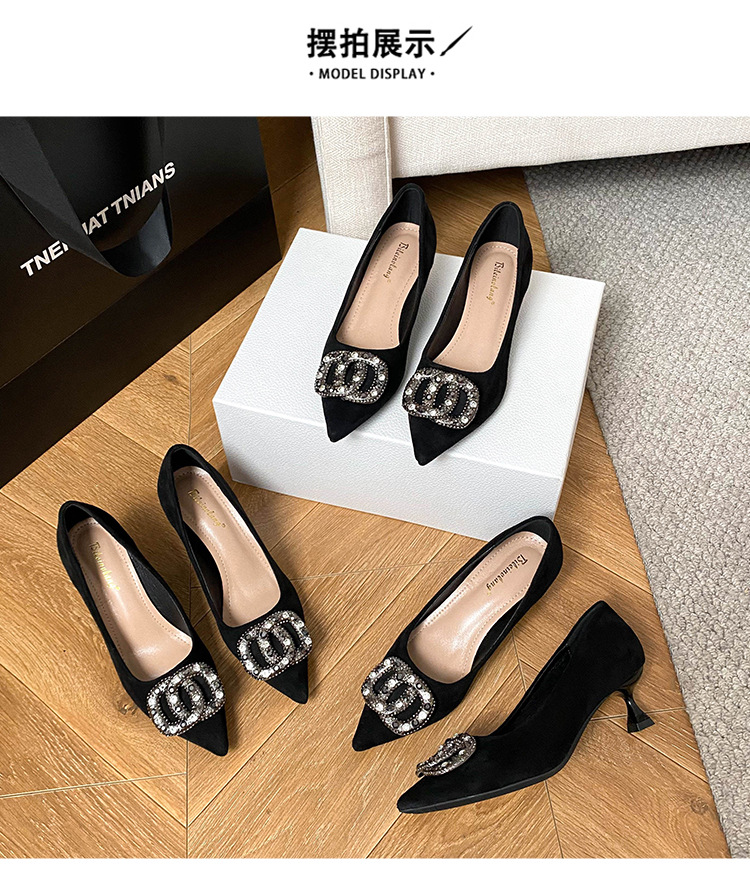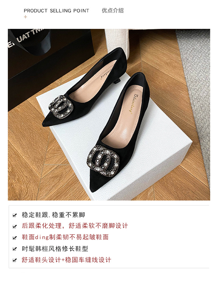 프렌치 레트로 두꺼운 힐 하이힐 여자 25 봄 새로운 통근 올매치 라인스톤 얕은 입 스퀘어 발가락 신발 샤넬 스타일스토어 가기