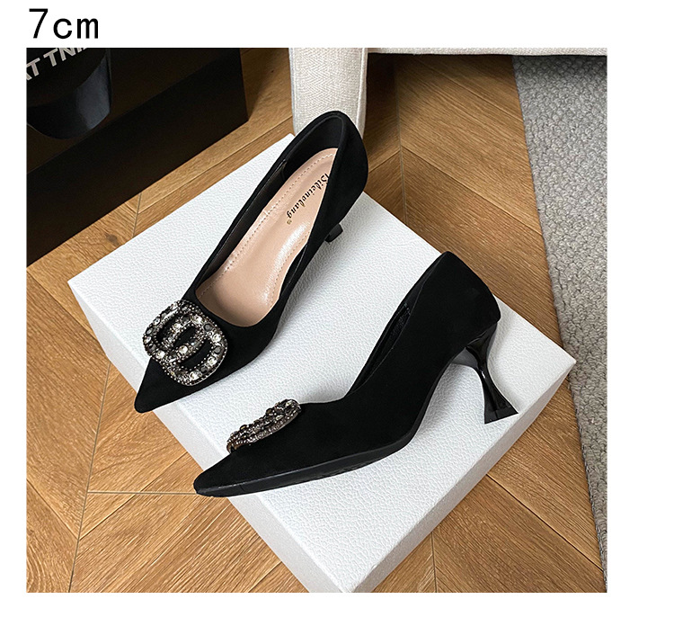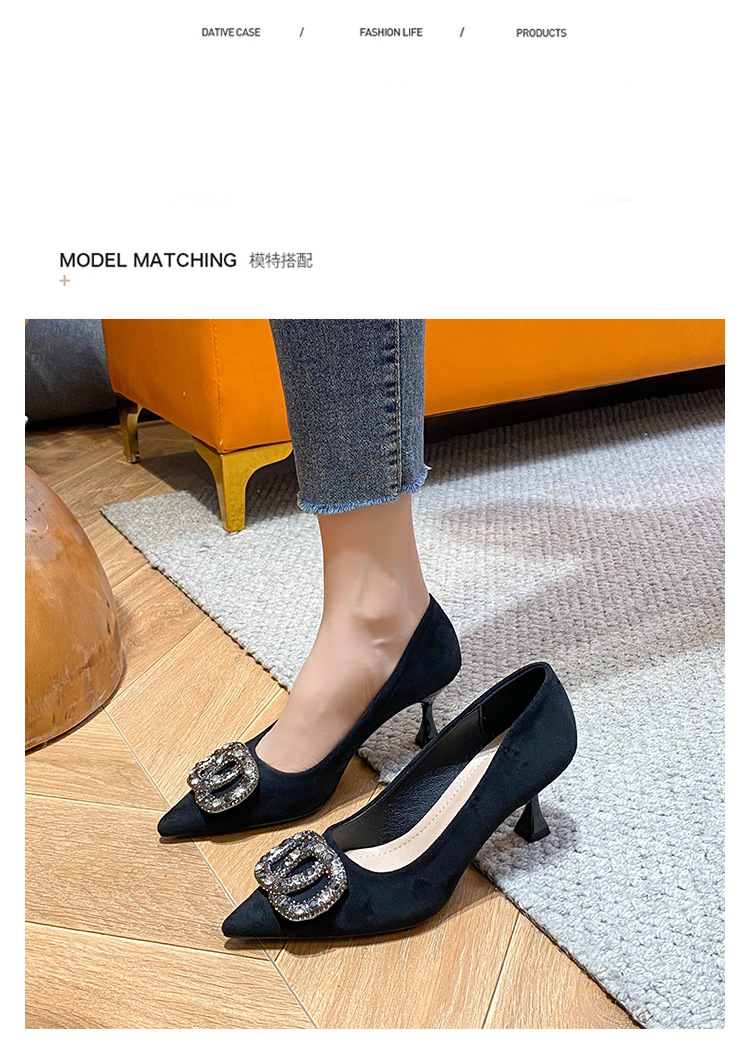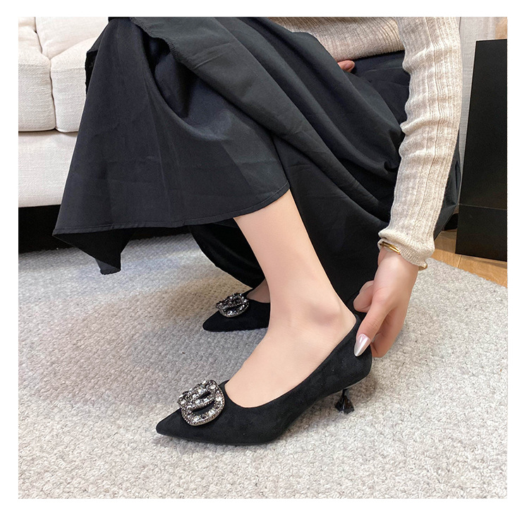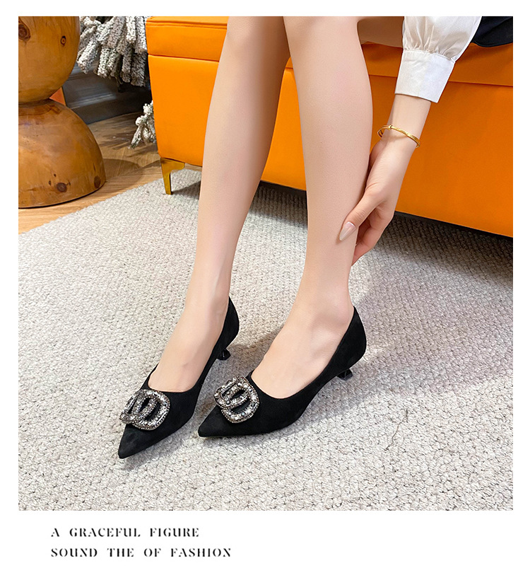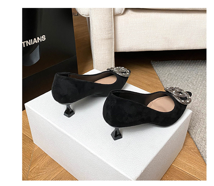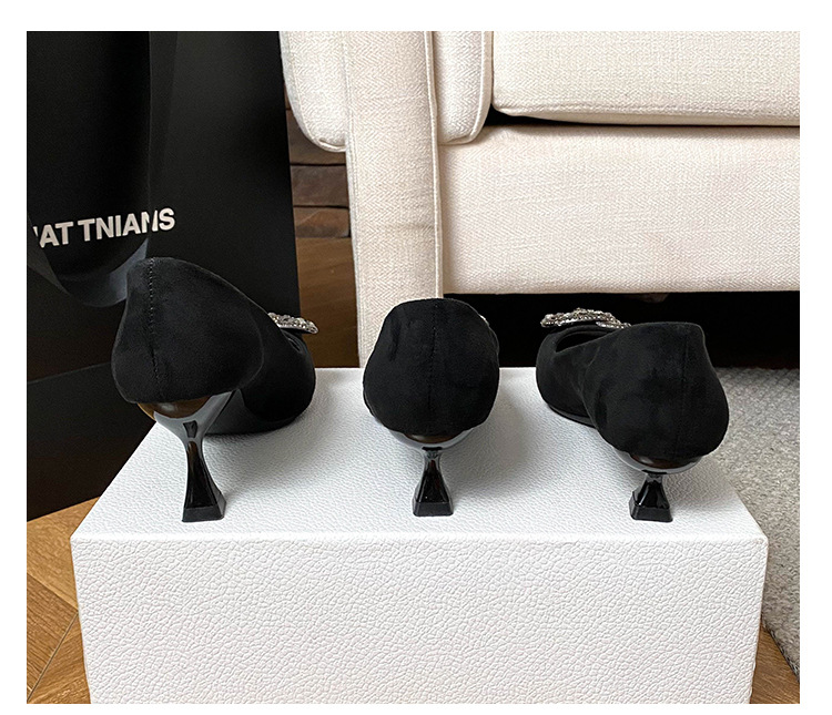 프렌치 레트로 두꺼운 힐 하이힐 여자 25 봄 새로운 통근 올매치 라인스톤 얕은 입 스퀘어 발가락 신발 샤넬 스타일스토어 가기