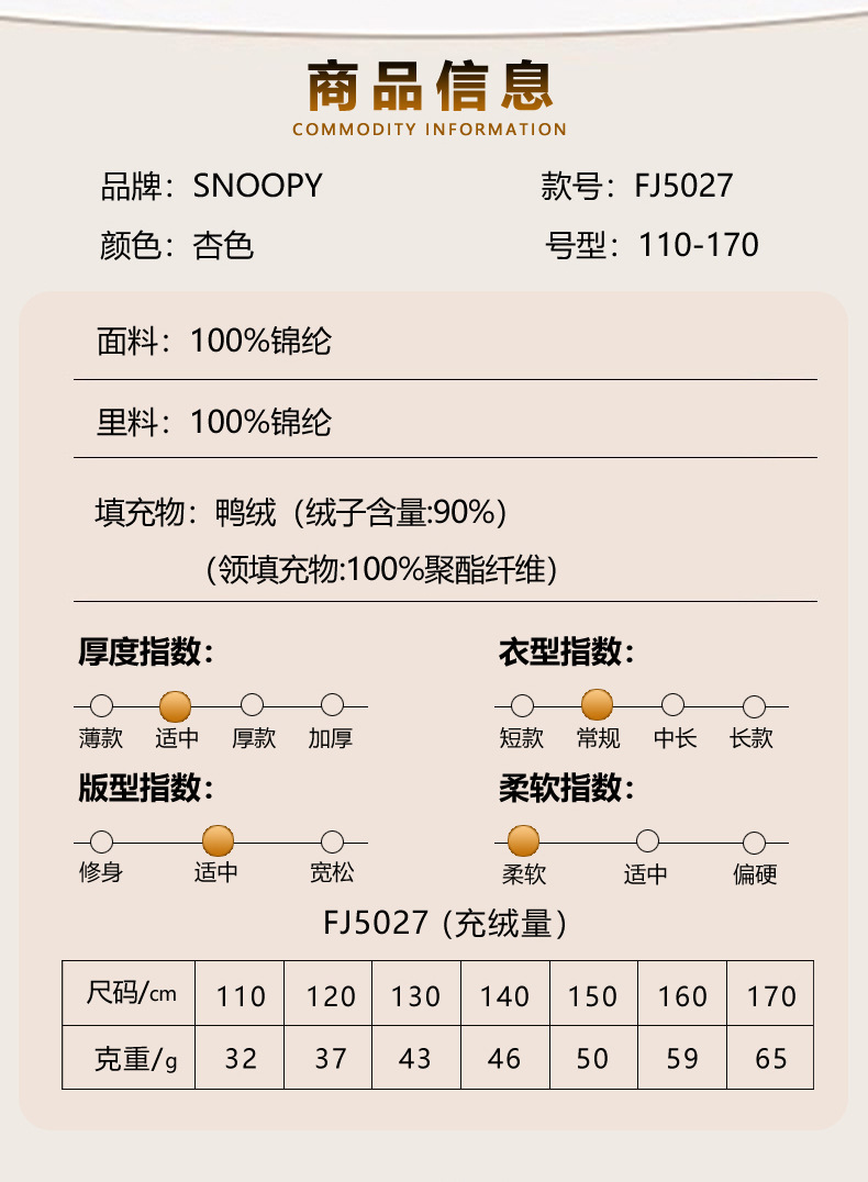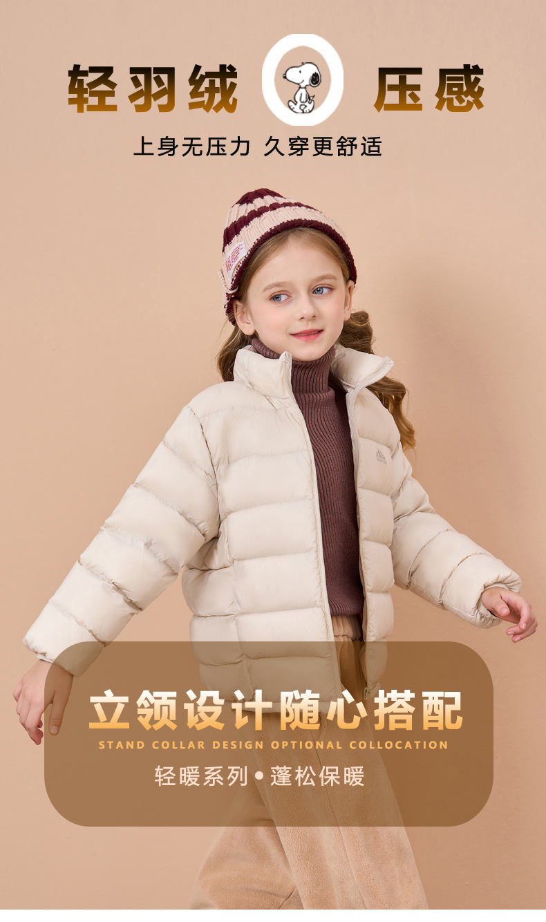 스누피 새로운 가을과 겨울 어린이 스탠드 칼라 라이트 다운 재킷 라이너 따뜻한 소년과 소녀 코트