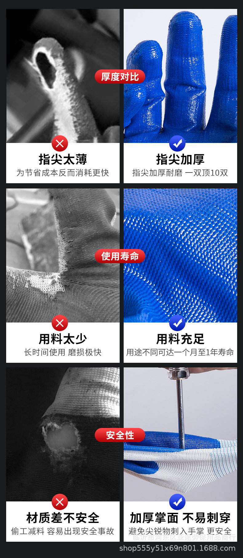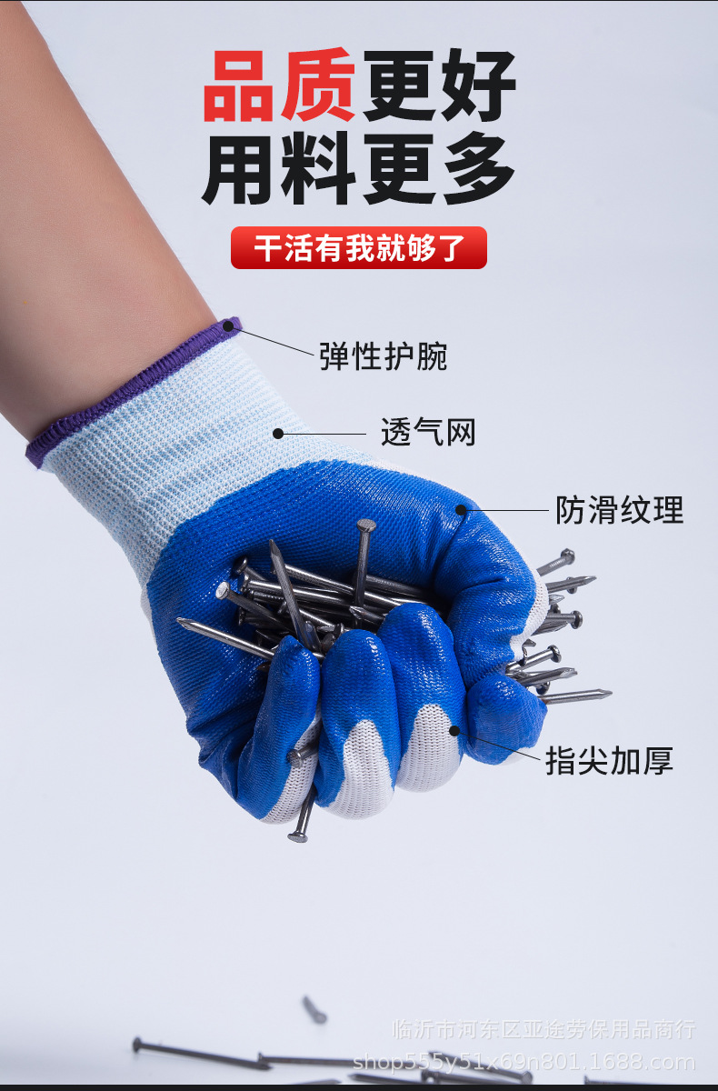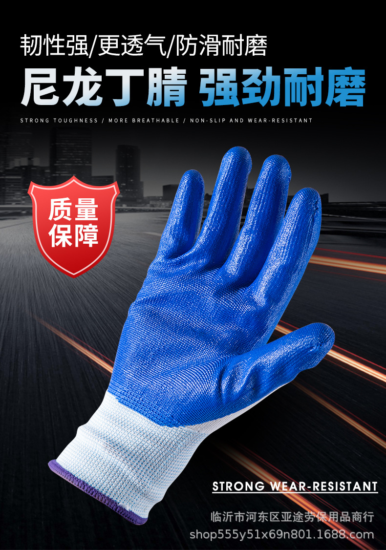 현장 작업용 13 핀 나일론 고무 걸이 장갑 노동 보호 장갑 내마모성 노동 보호 라인 주름진 니트릴 라텍스 고무 담근 장갑스토어 가기