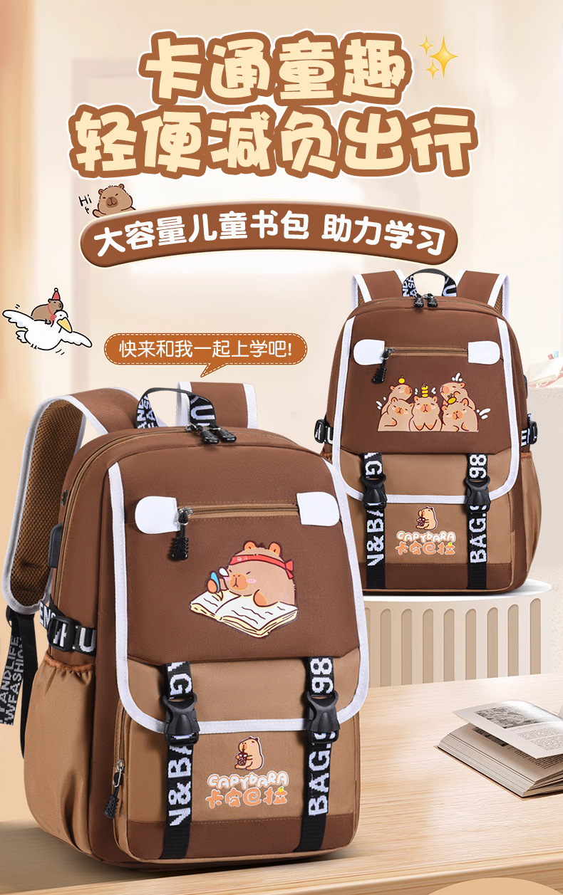Kapibala 어린이 학교 가방 대용량 중학생 소녀 초등학생 3-6 학년 소년 경량 배낭