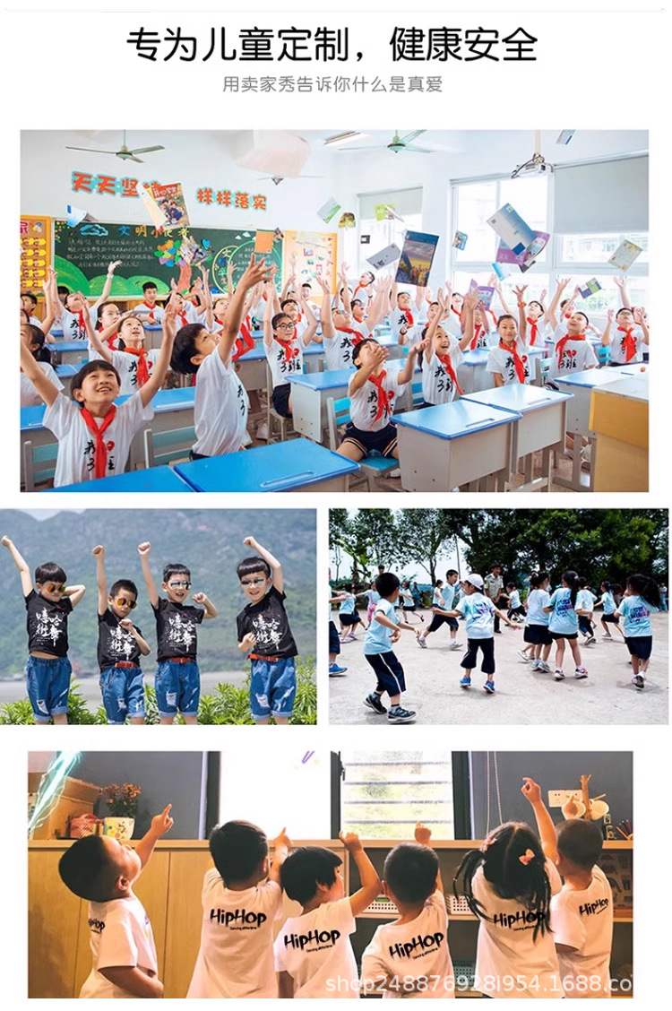 어린이 헤비급 순면 티셔츠 라운드 넥 로고 여름 캠프 티셔츠 인쇄 유치원 초등학생 졸업식 유니폼스토어 가기