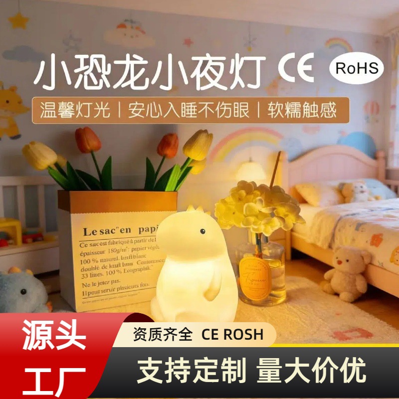 국경을 넘는 분위기 조명, 귀여운 만화 공룡 실리콘 터치식 야간 조명, 만화 장난감, 소녀들을 위한 창의적인 수면 동반자스토어 가기