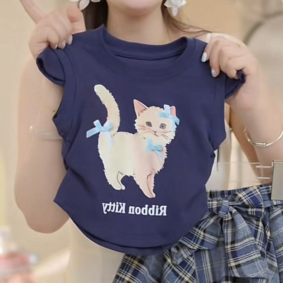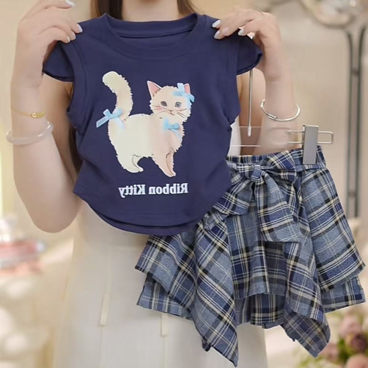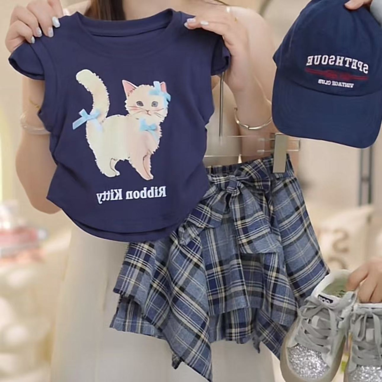 [핑크 하우스] 세트 새로운 여름 아기 소녀 서양식 귀여운 고양이 조끼 레이스 바지 유행 세트스토어 가기