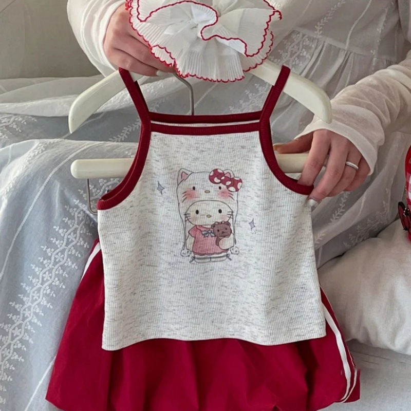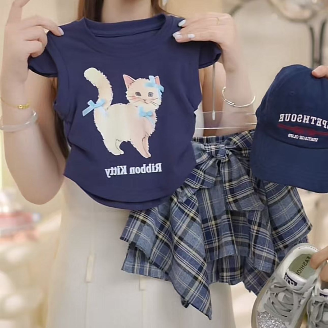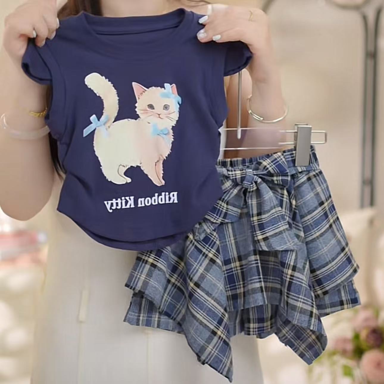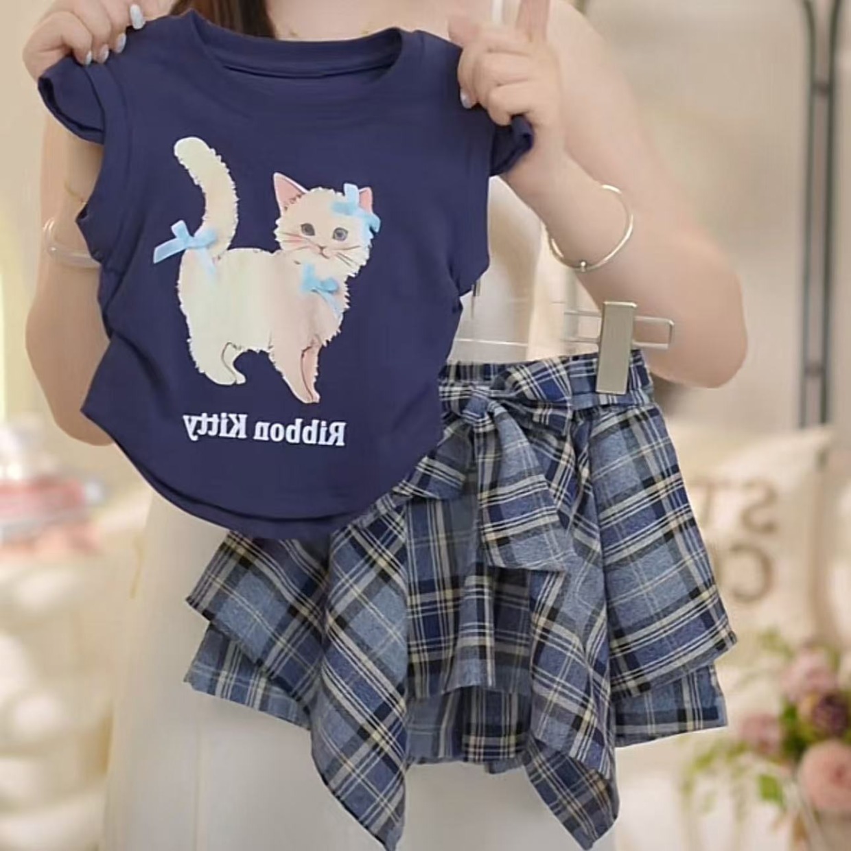 [핑크 하우스] 세트 새로운 여름 아기 소녀 서양식 귀여운 고양이 조끼 레이스 바지 유행 세트스토어 가기