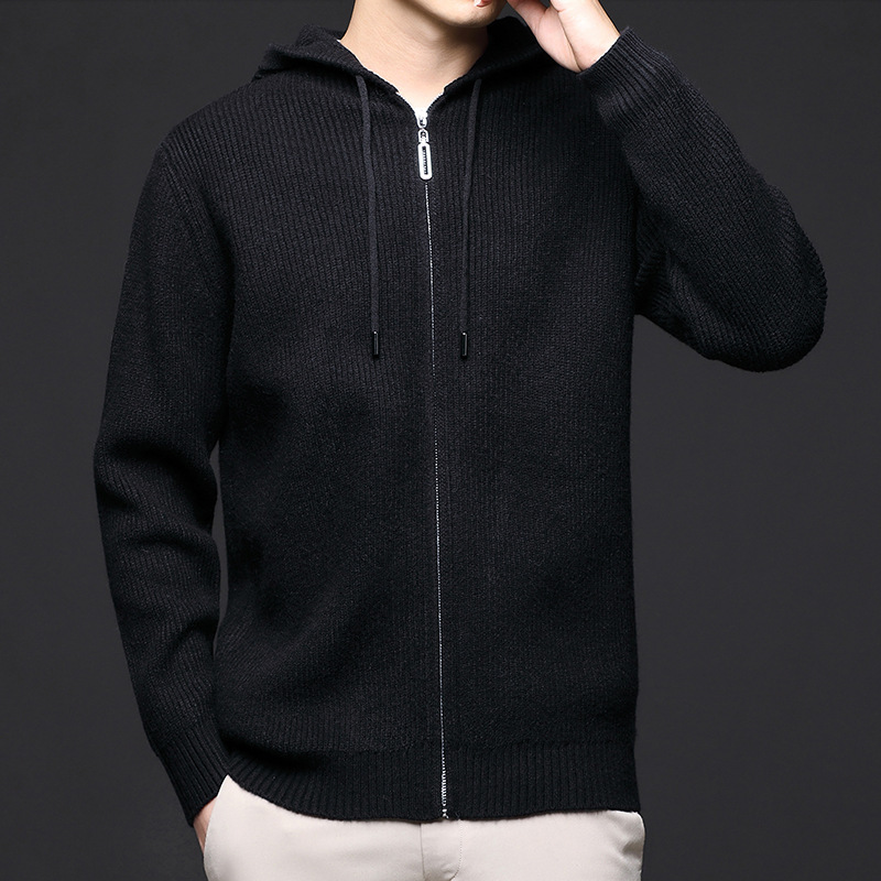 가을 겨울 유행 남성 후드 긴 지퍼 패션 니트 재킷, 양모 두꺼운 바늘 보풀 방지 카디건 포함스토어 가기