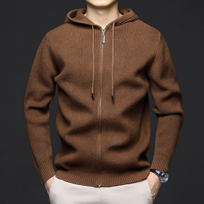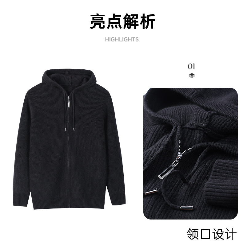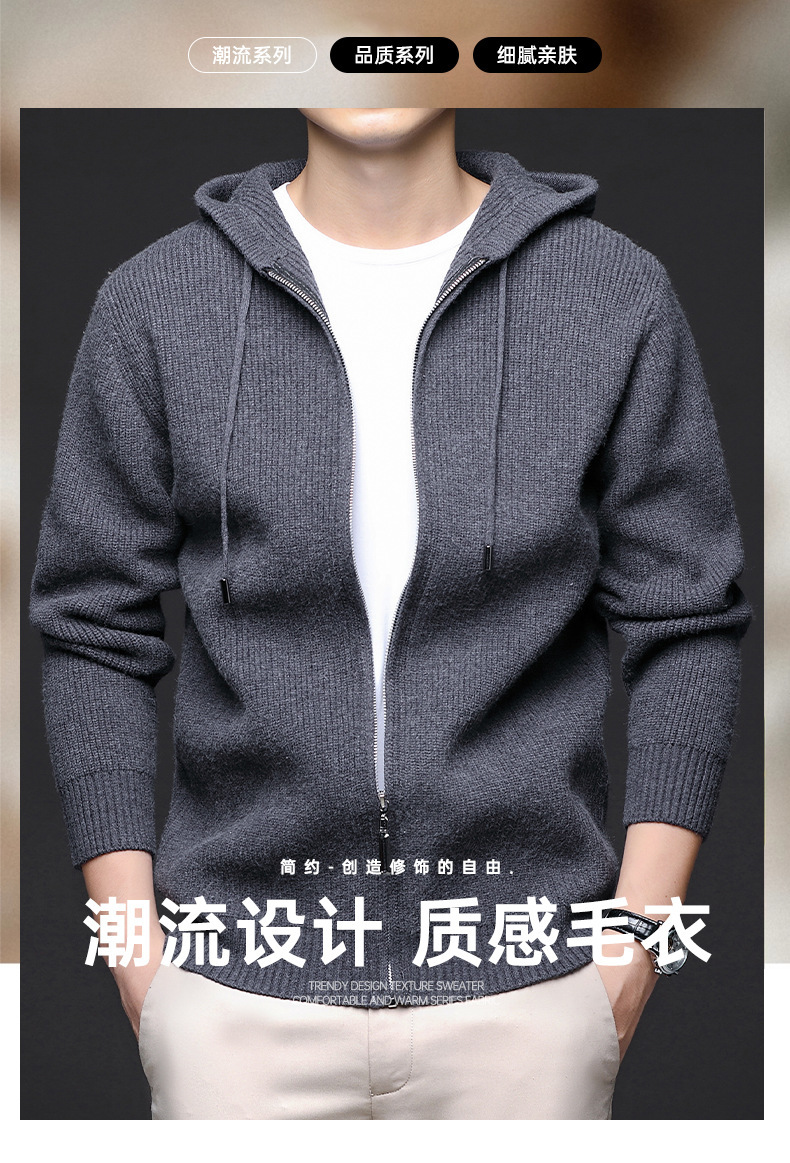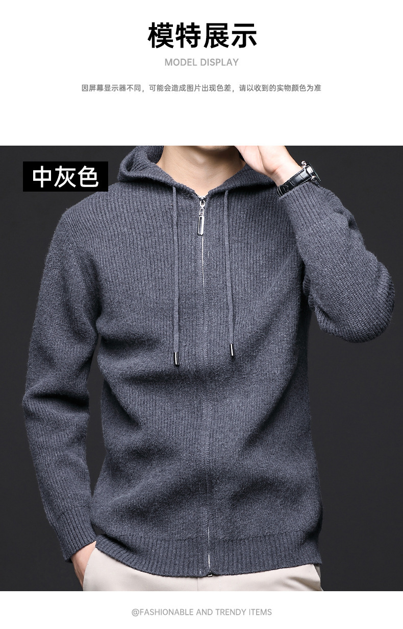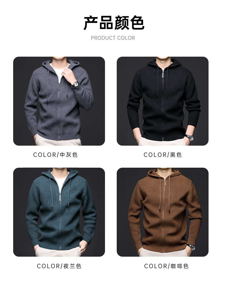 가을 겨울 유행 남성 후드 긴 지퍼 패션 니트 재킷, 양모 두꺼운 바늘 보풀 방지 카디건 포함