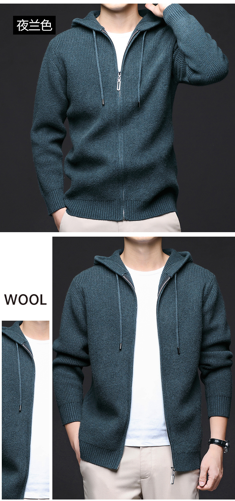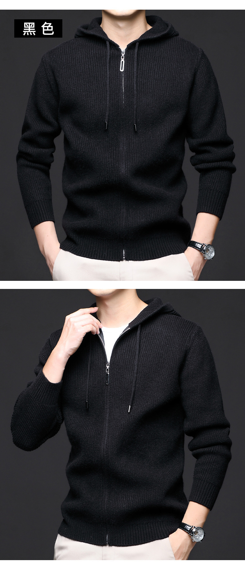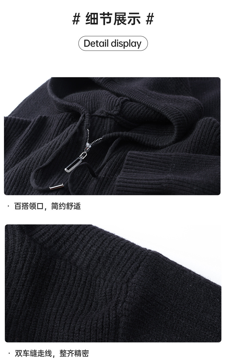 가을 겨울 유행 남성 후드 긴 지퍼 패션 니트 재킷, 양모 두꺼운 바늘 보풀 방지 카디건 포함