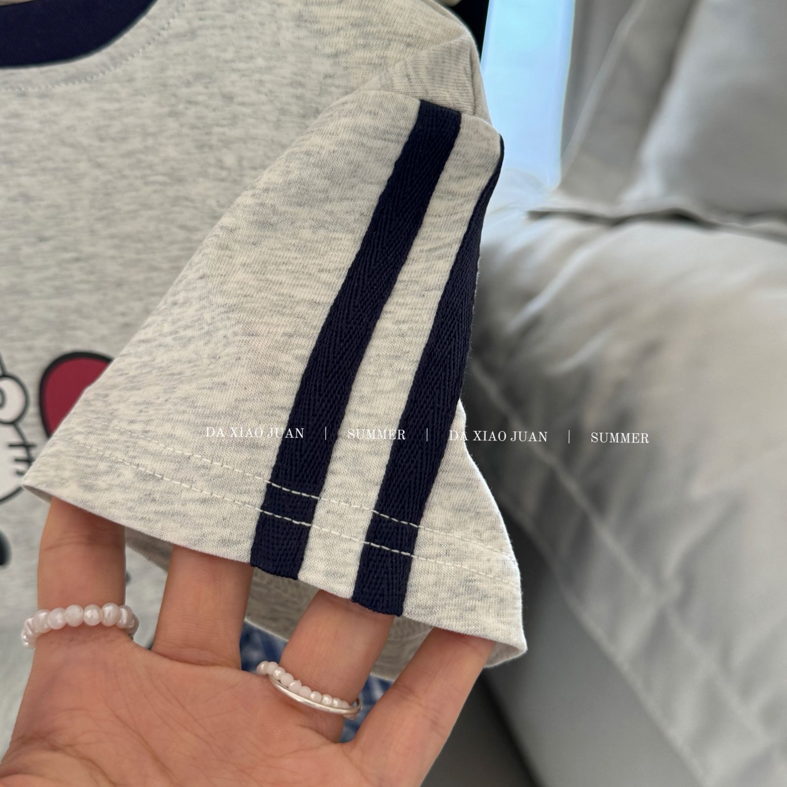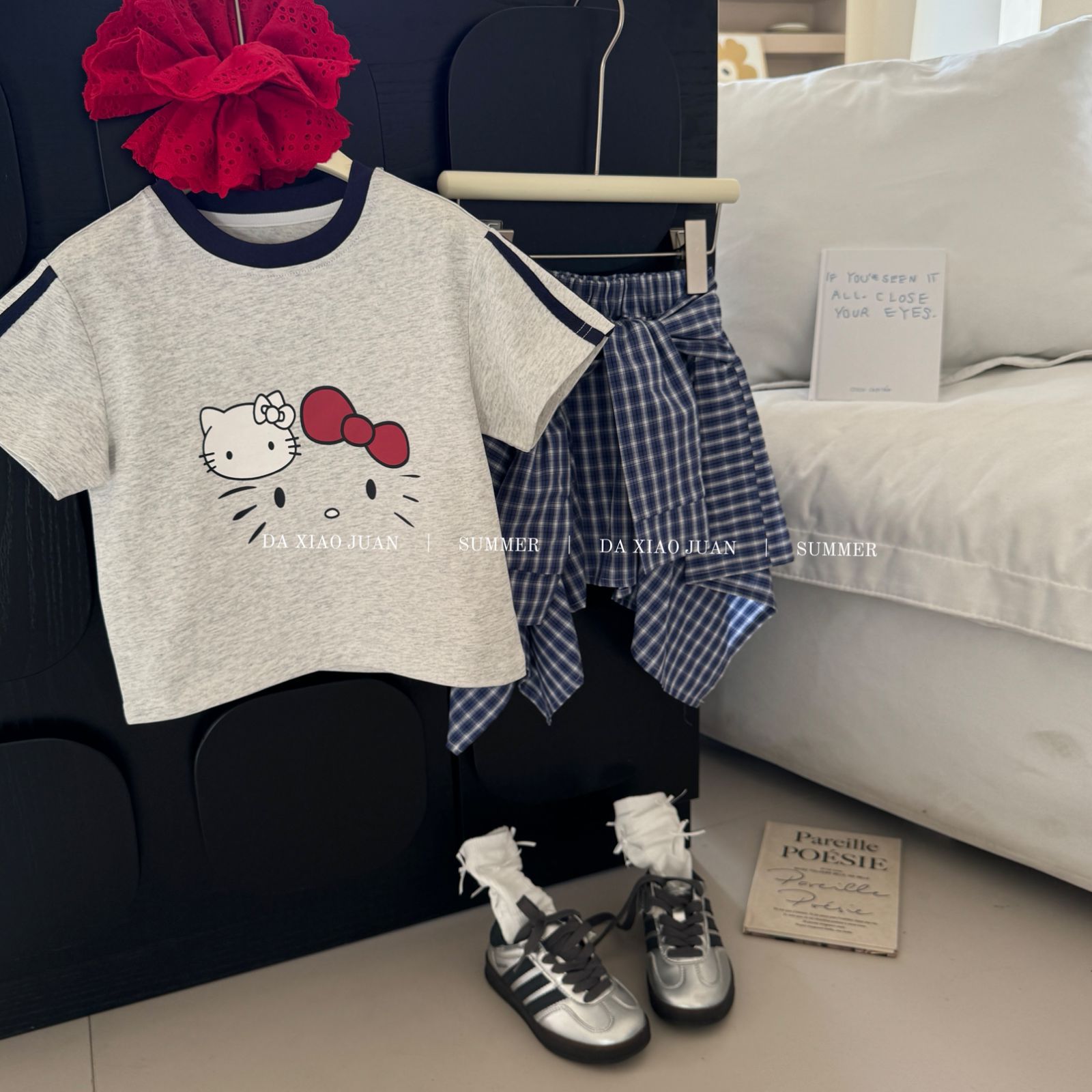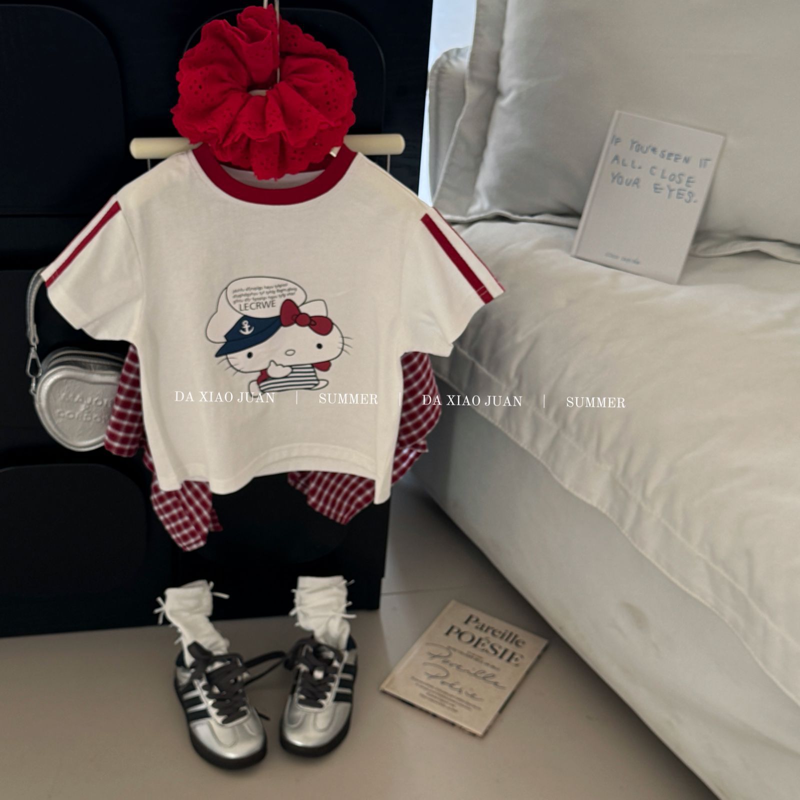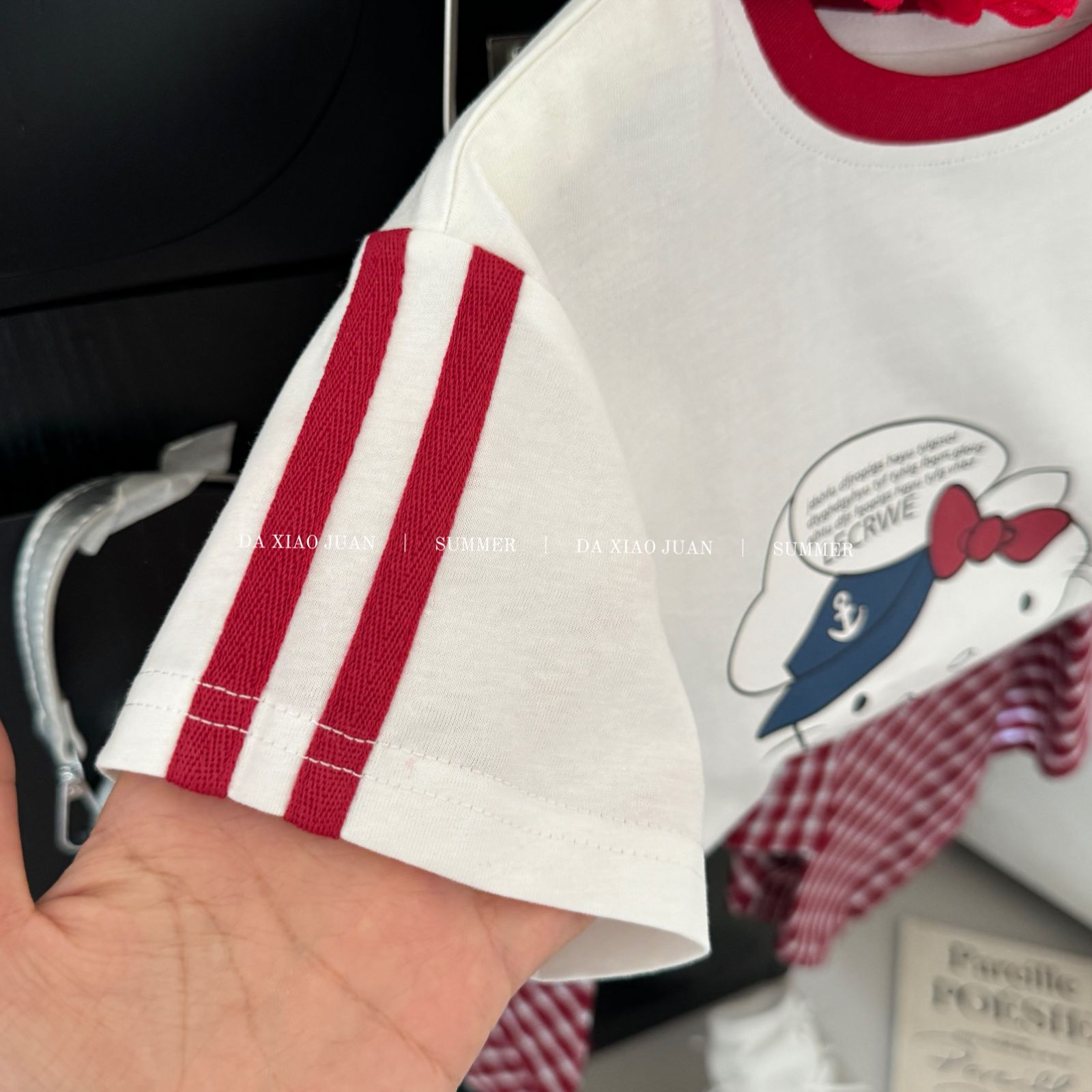 사이즈 롤 25 Xia Xin 소녀 헬로 키티 짧은 소매 아기 소녀 스타일 귀여운 인쇄 탑 불규칙한 치마
