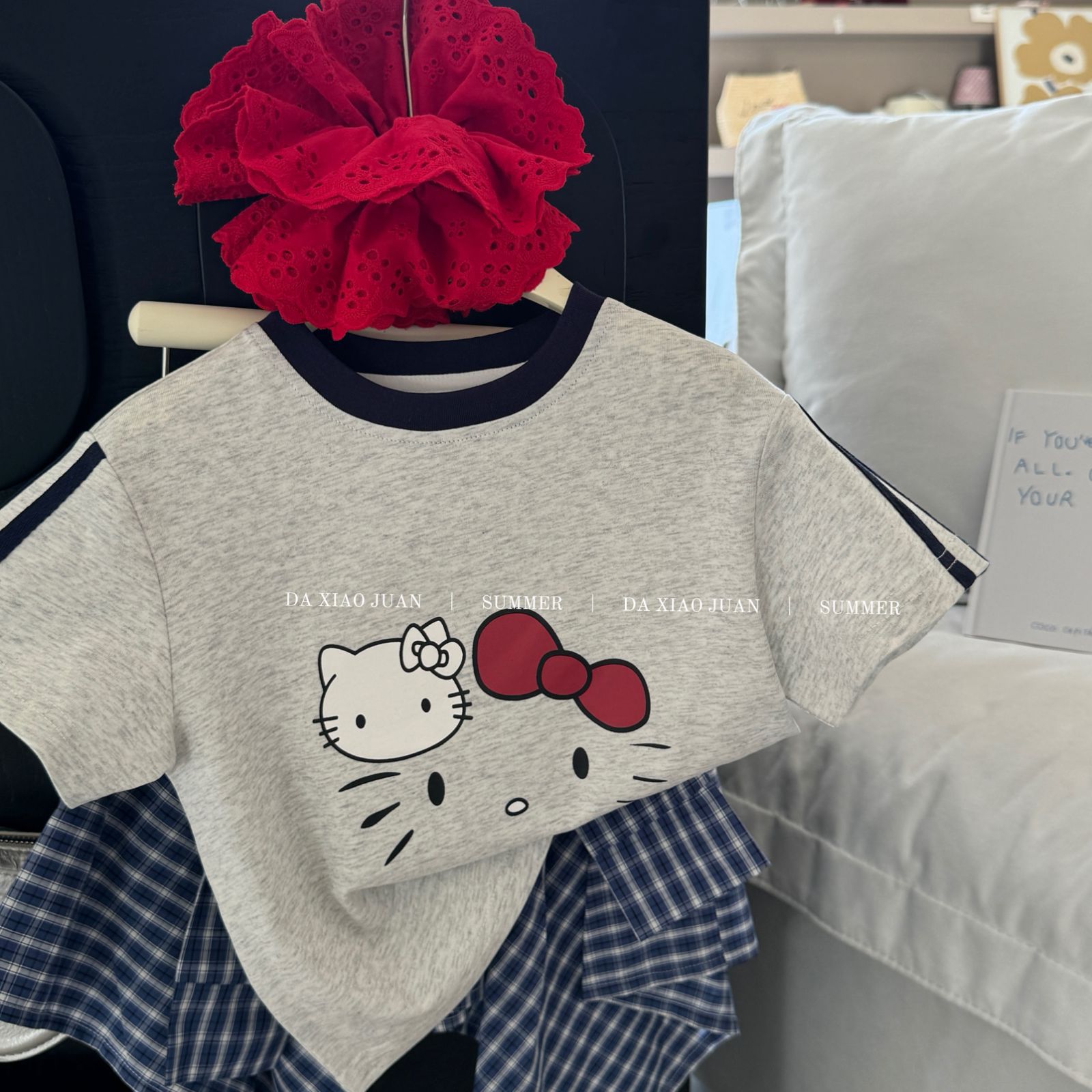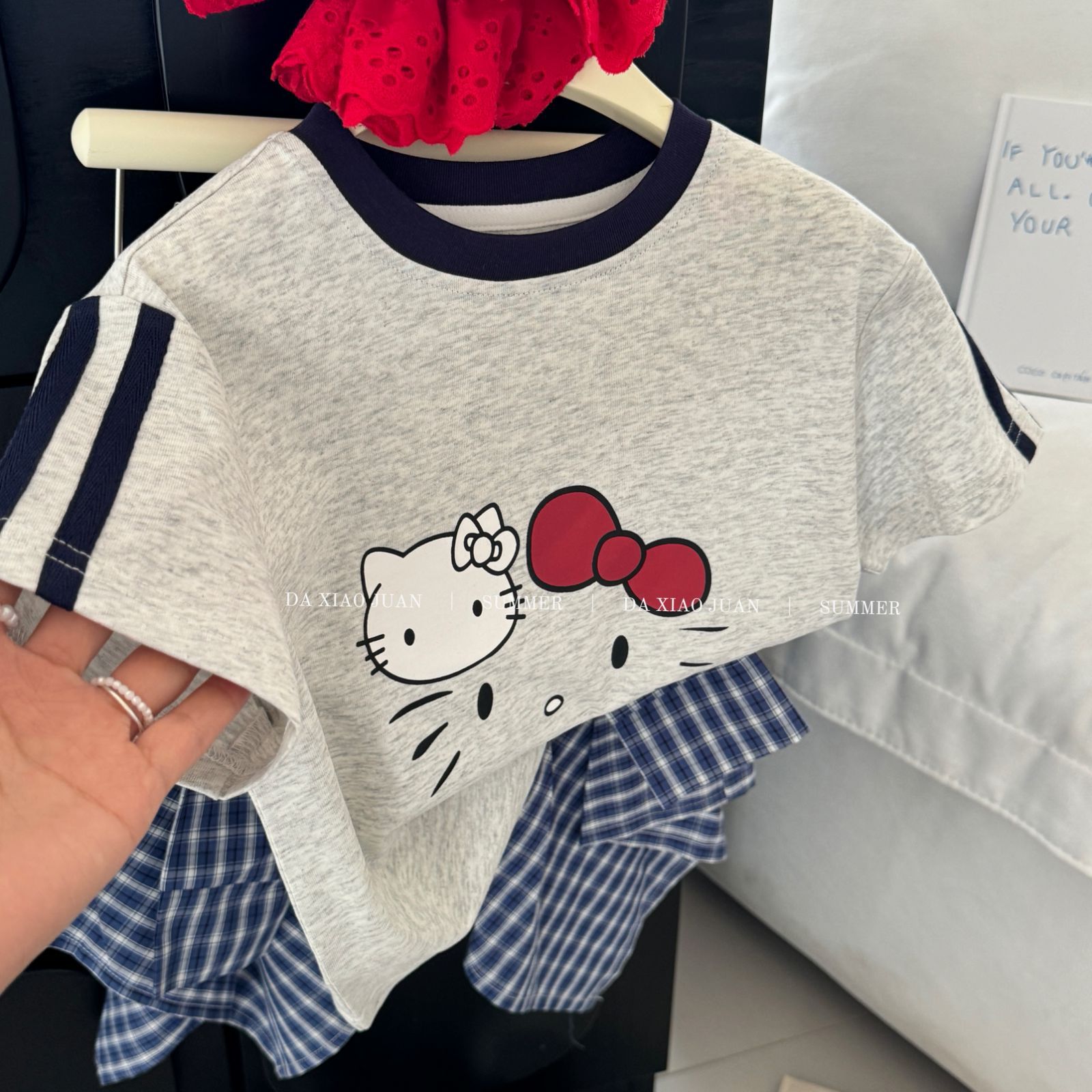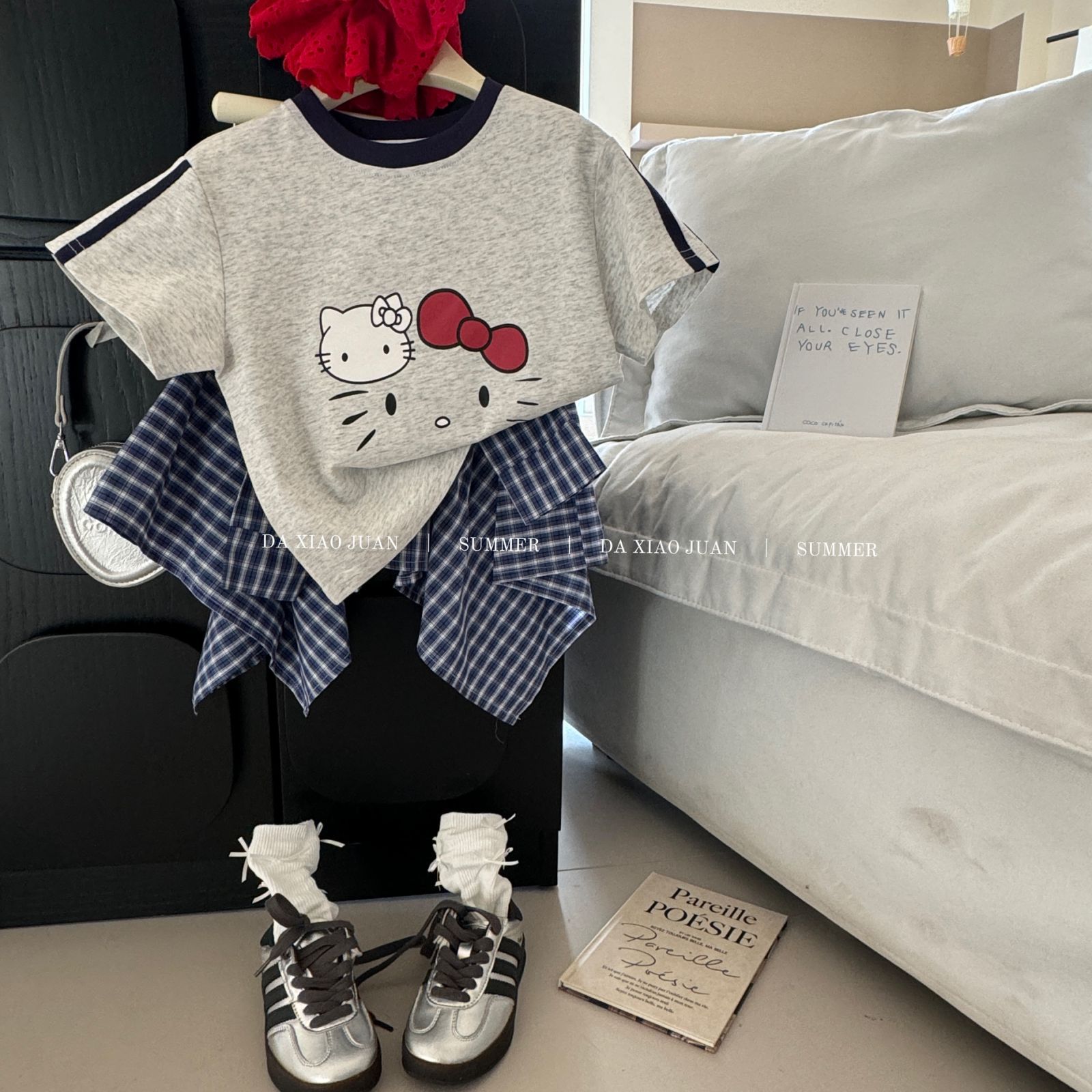 사이즈 롤 25 Xia Xin 소녀 헬로 키티 짧은 소매 아기 소녀 스타일 귀여운 인쇄 탑 불규칙한 치마스토어 가기