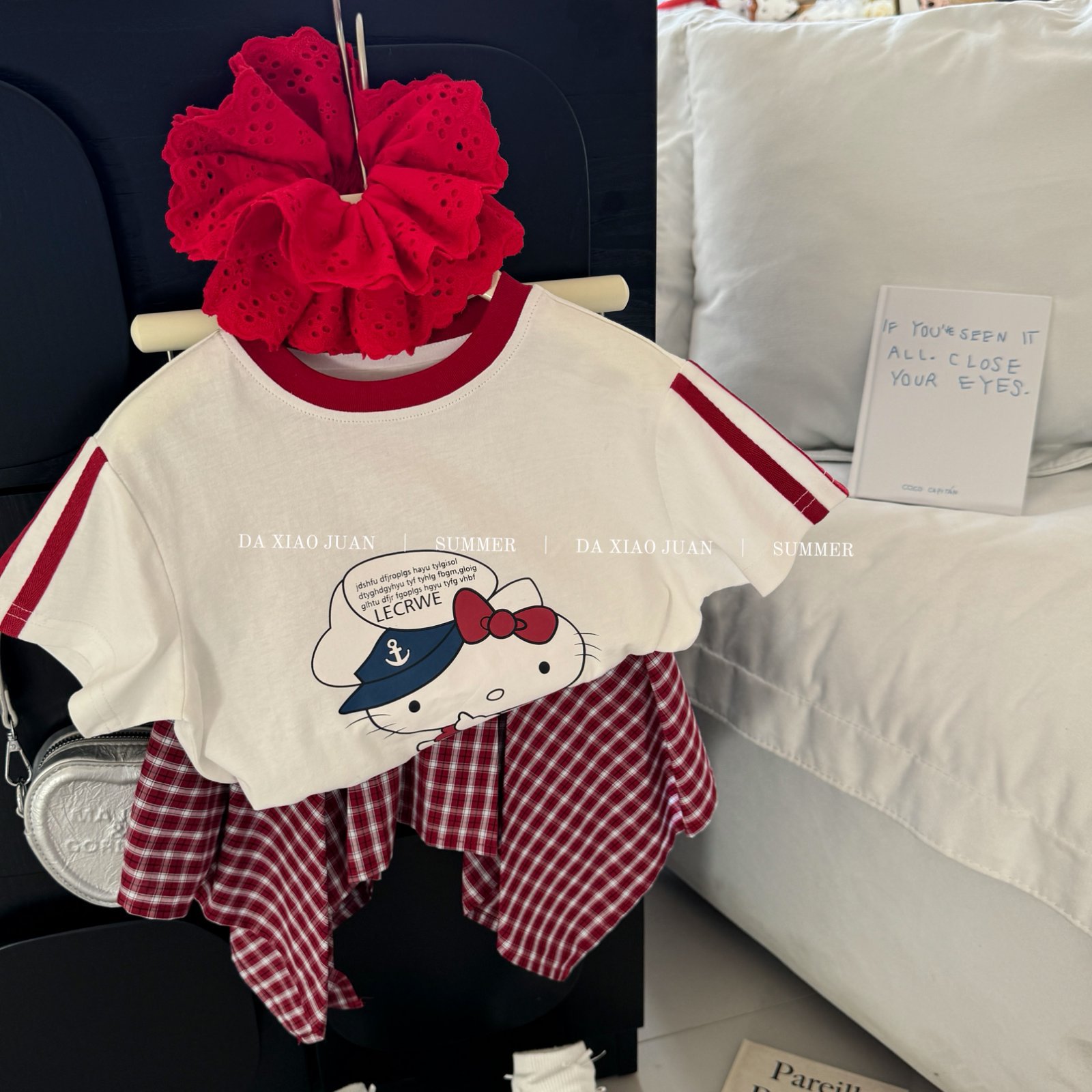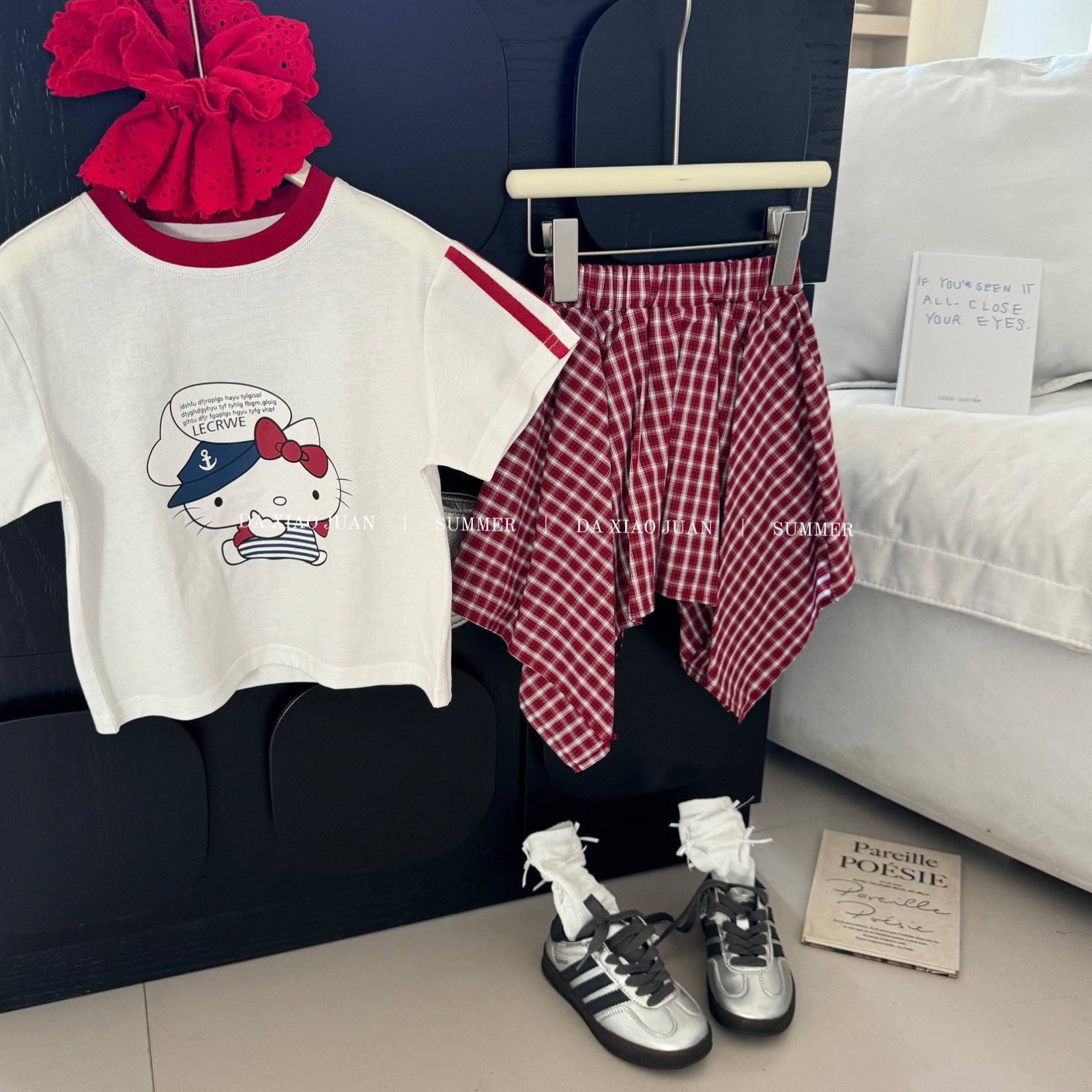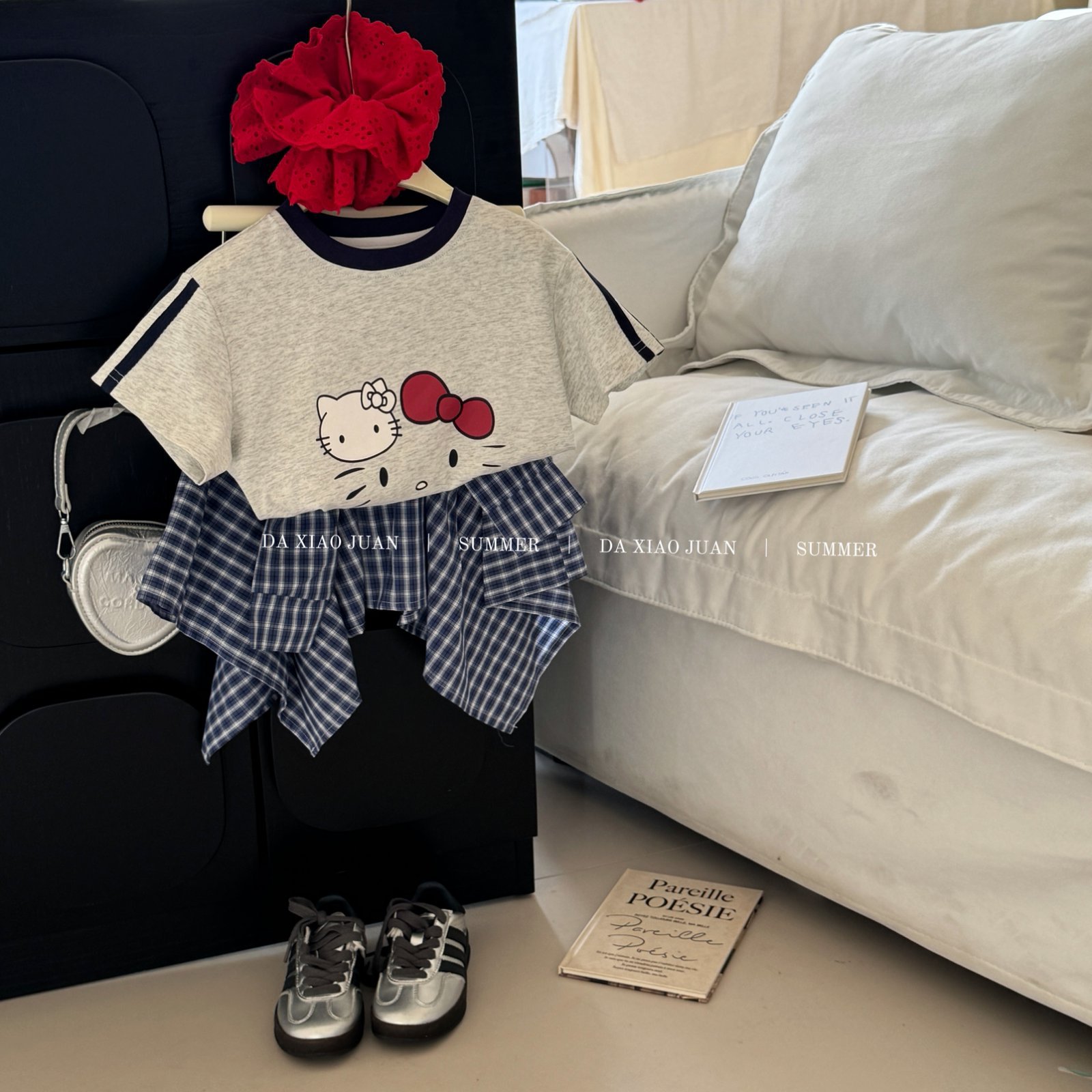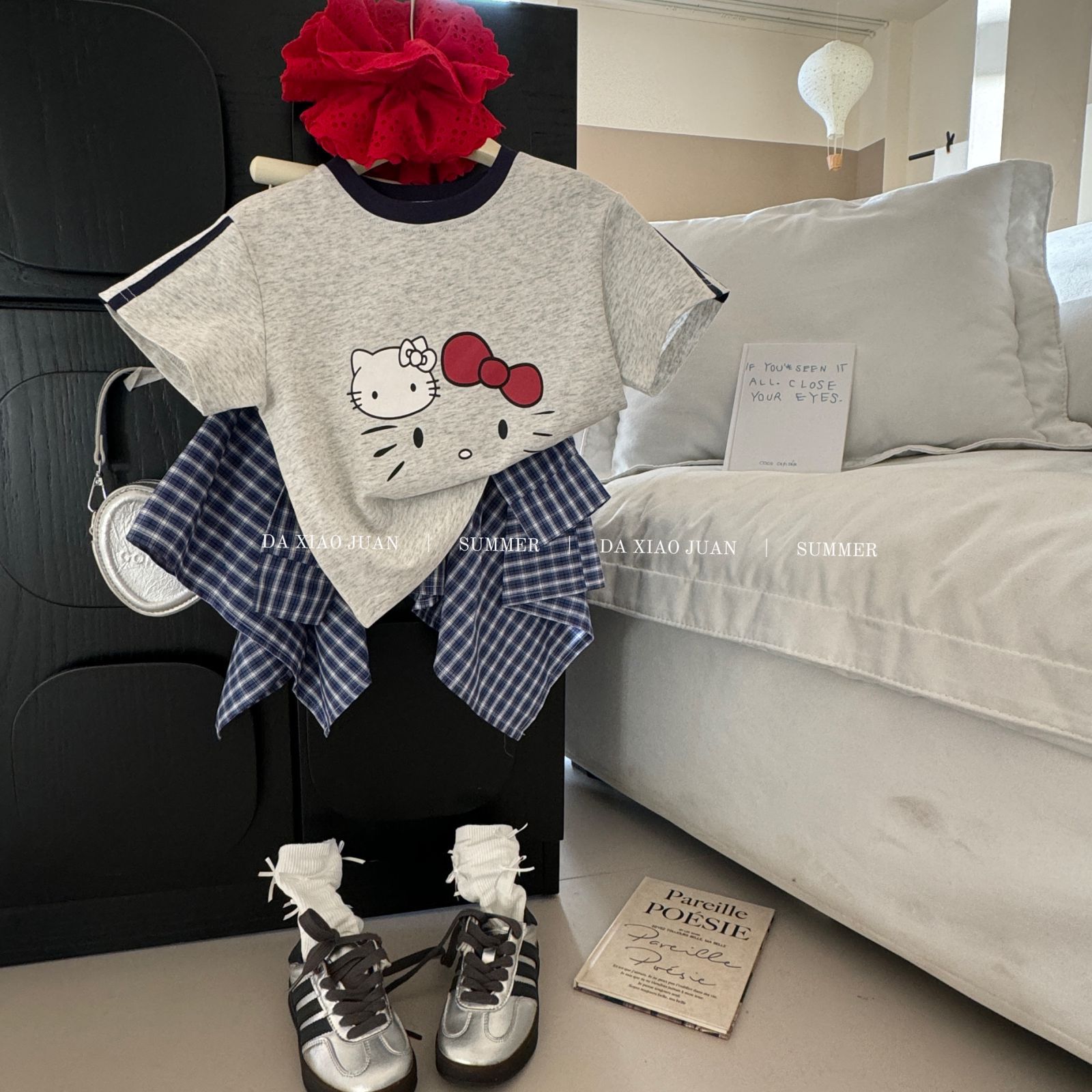 사이즈 롤 25 Xia Xin 소녀 헬로 키티 짧은 소매 아기 소녀 스타일 귀여운 인쇄 탑 불규칙한 치마스토어 가기