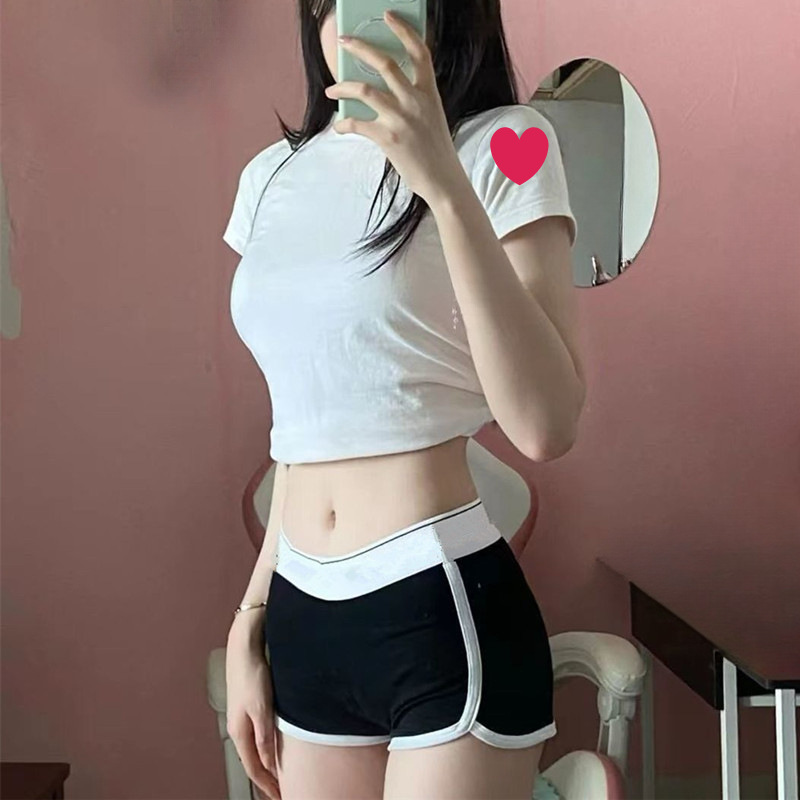 콘트라스트 컬러 핫 걸스 순수한 욕망 높은 허리 반바지 여성용 슬림핏 슬림 와이드 레그 핫 팬츠 여름 스포츠 외부 캐주얼 팬츠