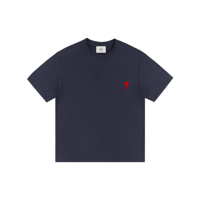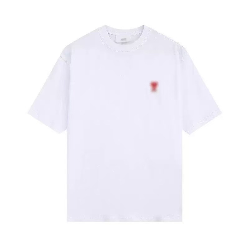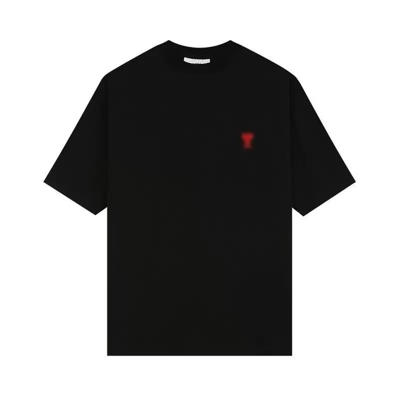 2025 여름 핫 트렌디 브랜드 패션 반팔 티셔츠 남성 사랑 자수 루즈 숄더 슬리브 탑 AMI & EANM스토어 가기