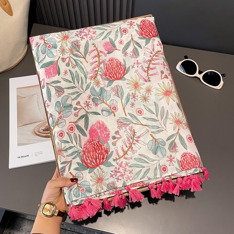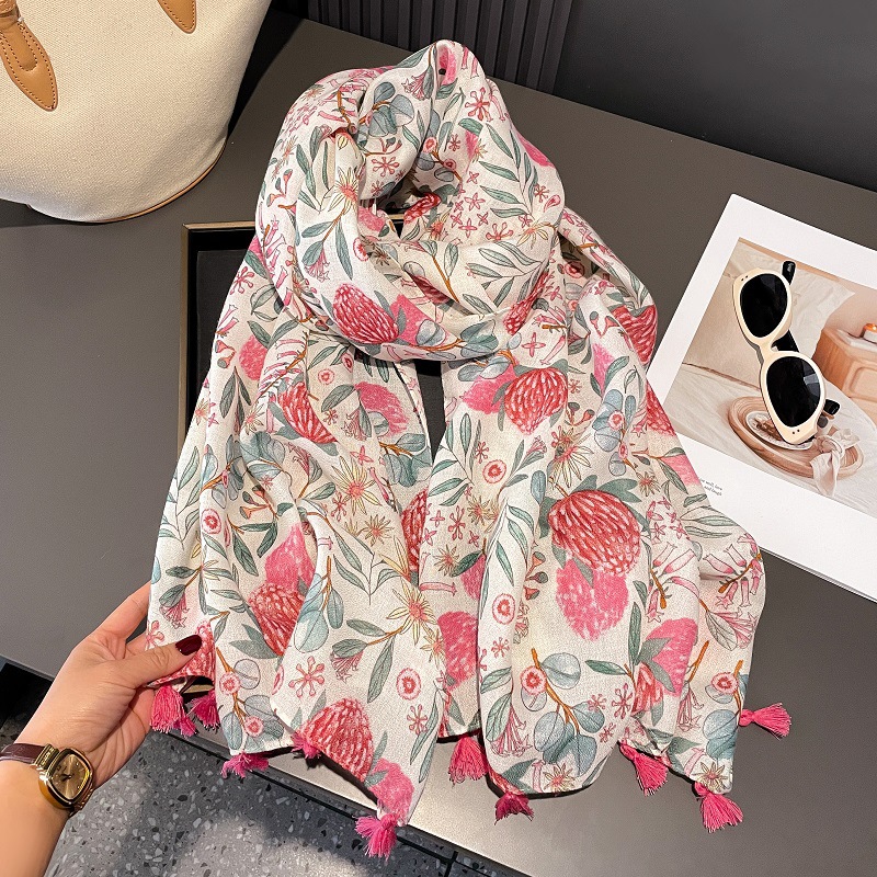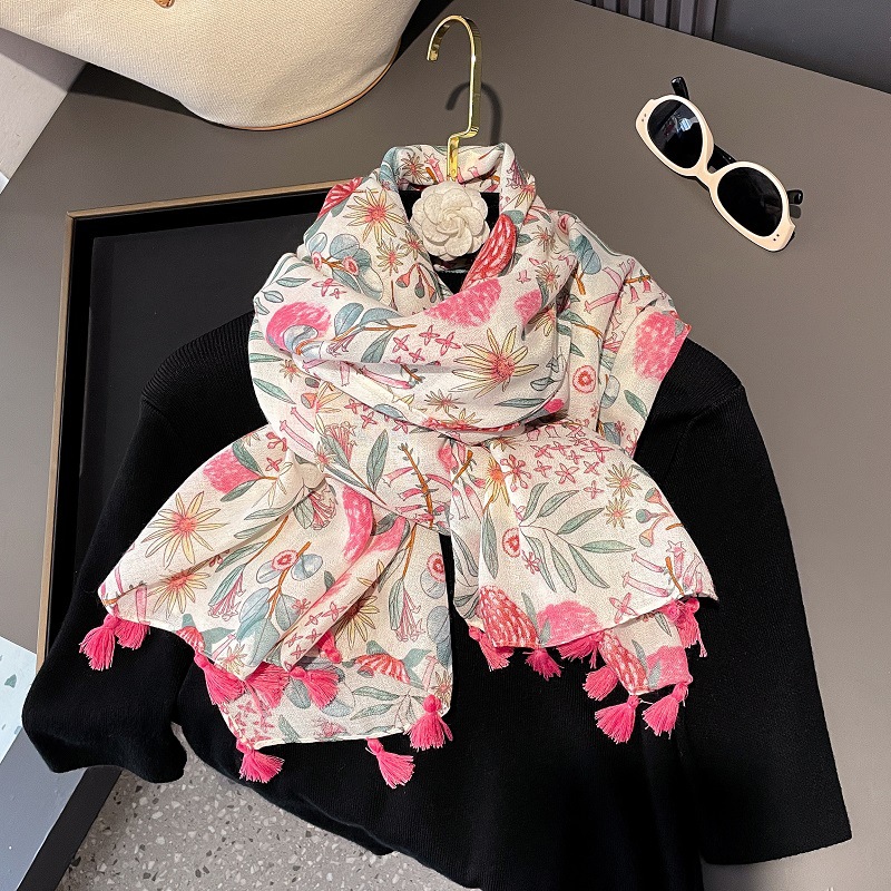 2025 봄과 여름 새로운 면화와 리넨 스카프 여성의 작은 신선한 예술 패션 에어컨 룸 목도리 얇은 선 스크린 여행 스카프스토어 가기