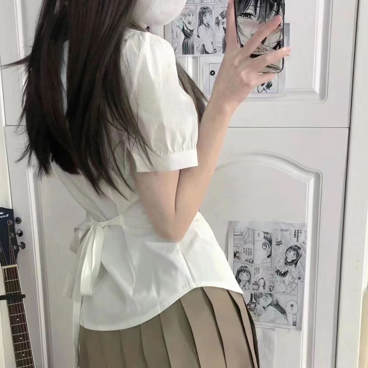 2025 새로운 봄과 여름 순수한 바람 뜨거운 소녀 짧은 소매 허리 올 매치 학업 스타일 슬림 jk 셔츠 스트랩 셔츠스토어 가기
