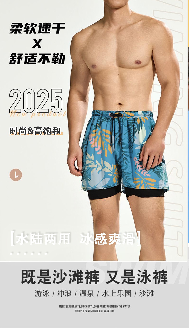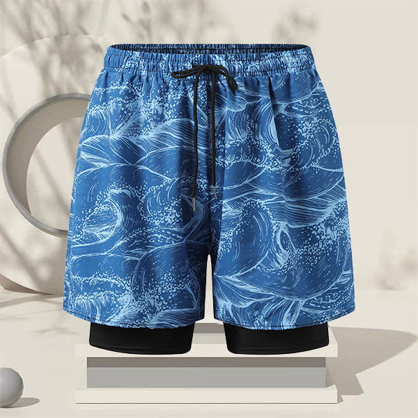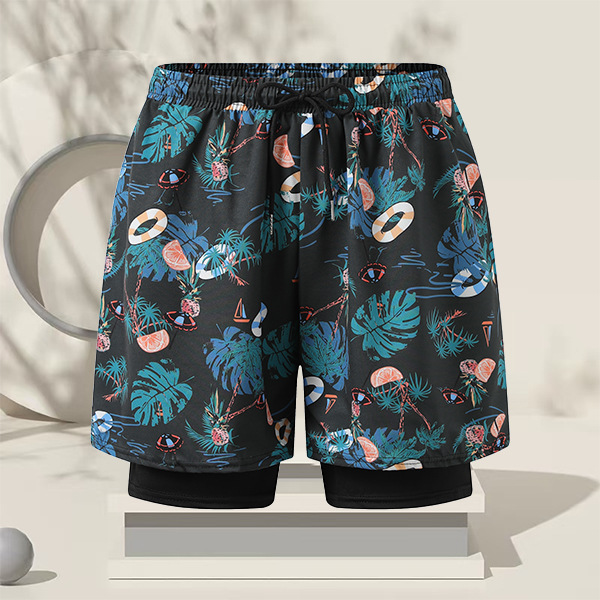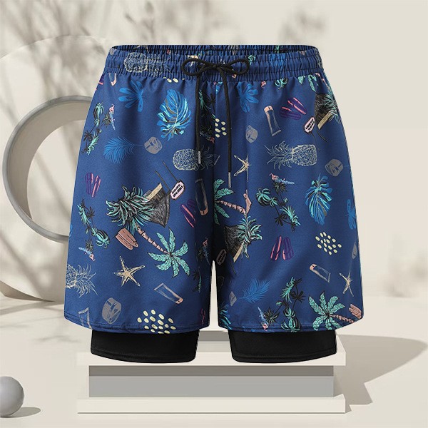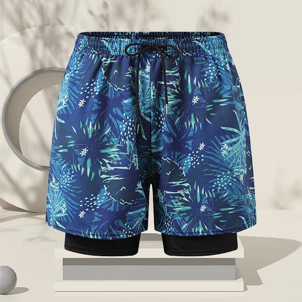 공장 직접 뚱뚱한 남자 수영 트렁크 더블 레이어 권투 선수와 뚱뚱한 안티 당혹감 빠른 건조 수영 트렁크 중년 남성 비치 바지
