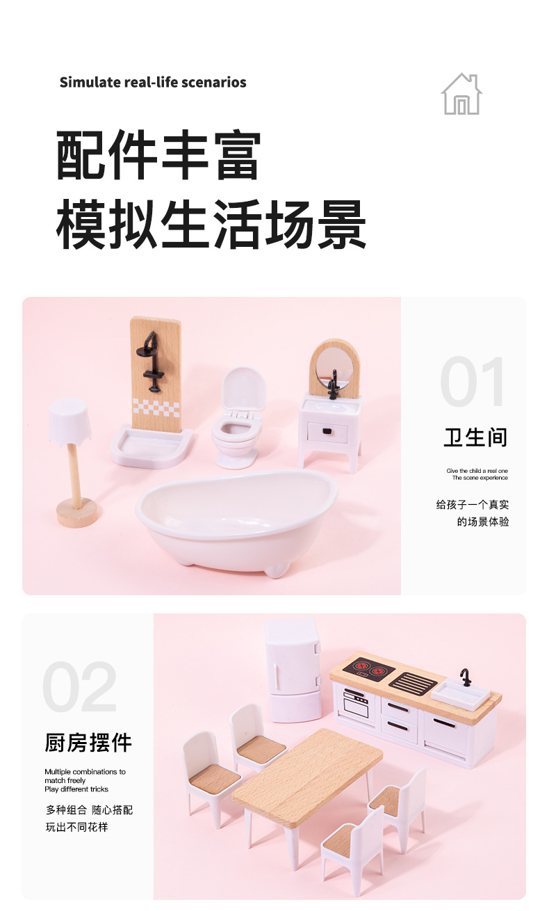 시뮬레이션 어린이 모듈 인형 집 미니 작은 가구 풀 하우스 놀이 집 방 세트 나무 장난감
