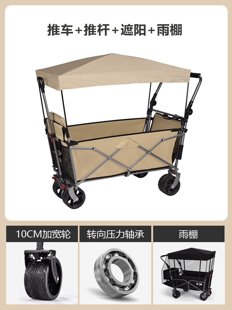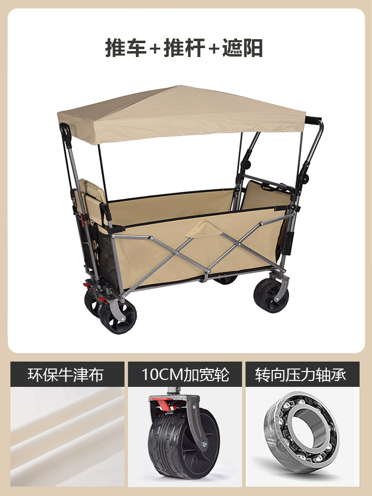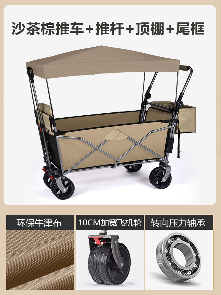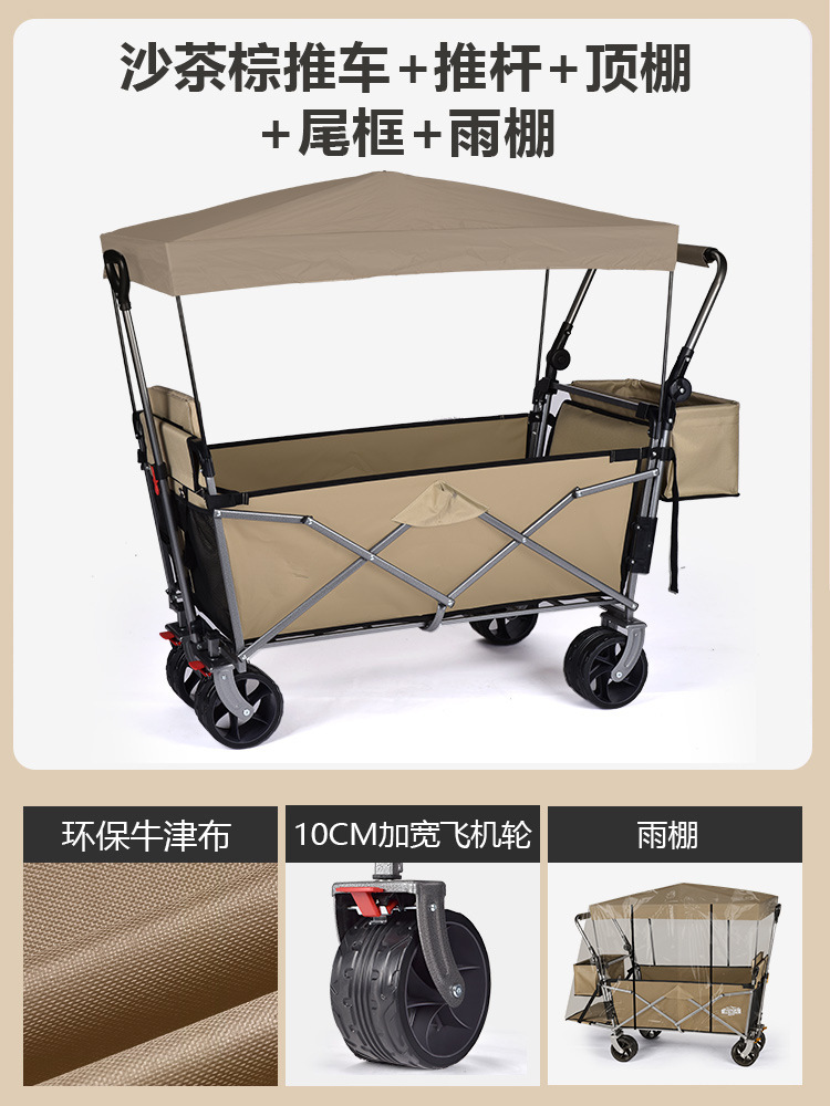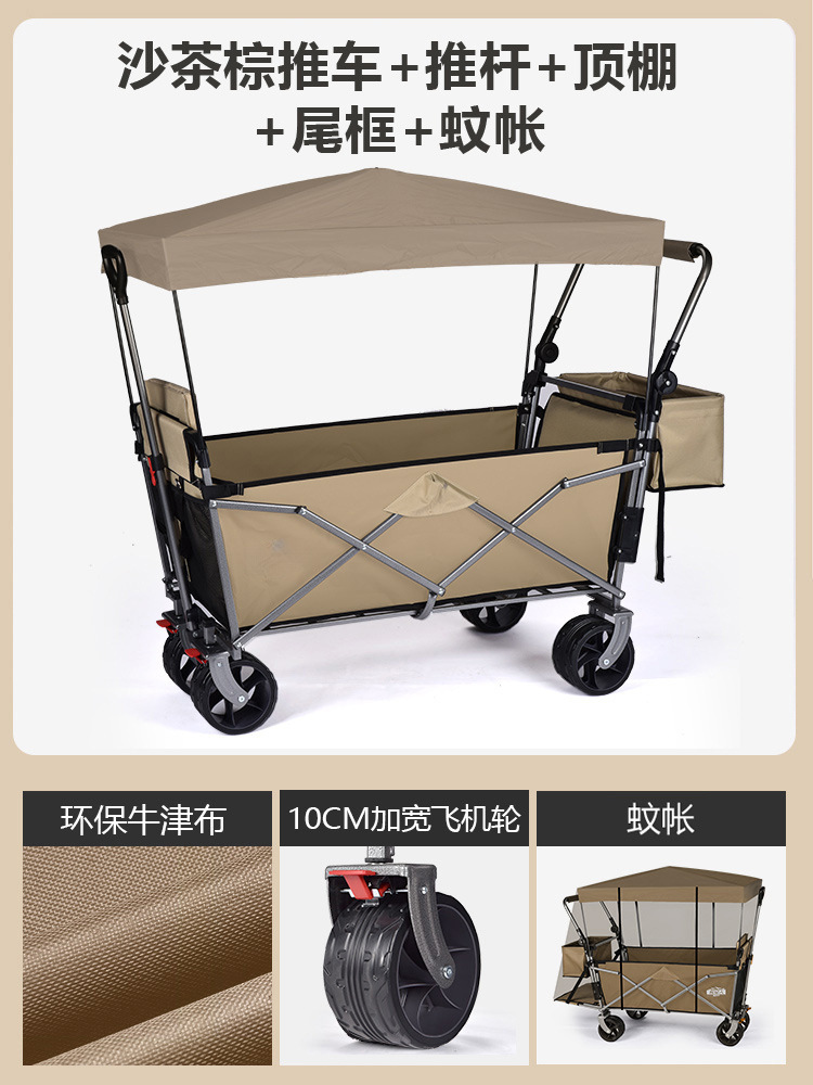 • 샤차 브라운은 길어지고 넓어진 후면 개방형 대형 카트 + 푸시로드 + 차양 + 테일 프레임 + 차양 + 모기장