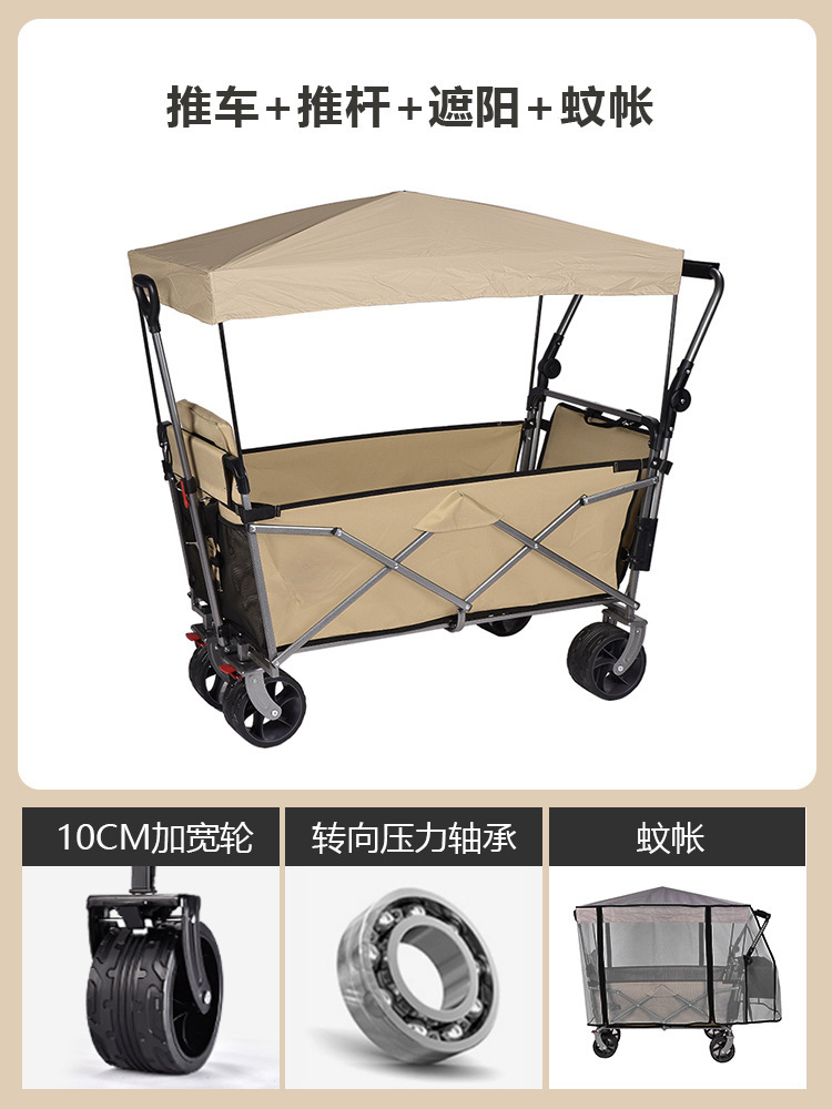 • 샤차 브라운은 길어지고 넓어지고 뒷문이 열리는 대형 카트 + 푸시로드 + 차양 + 모기장