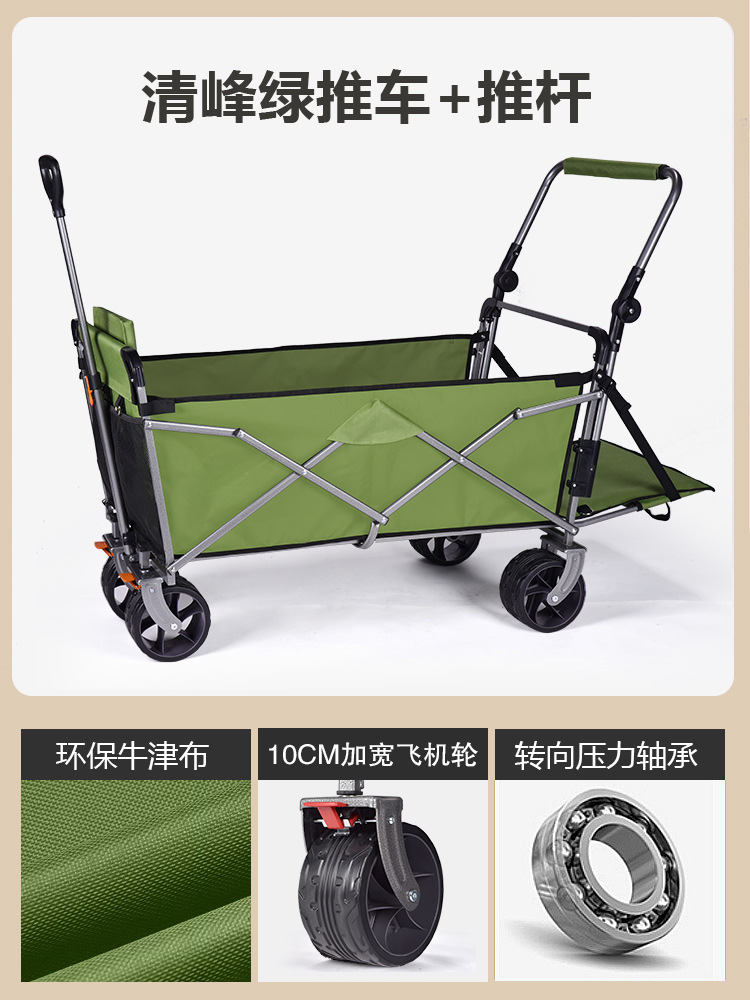 • Qingfeng 녹색 확장 및 확장 후면 개방형 대형 침대형 유모차 + 푸시로드 + 차양 + 테일 프레임 + 차양