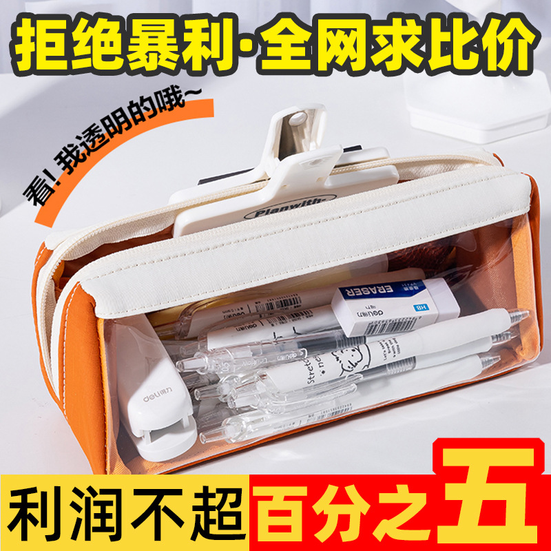 연필 케이스 투명한 대용량 고색 가치 문구 상자 새로운 귀여운 어린이 문구 용품 초등 학생을위한 특수 학교 용품스토어 가기