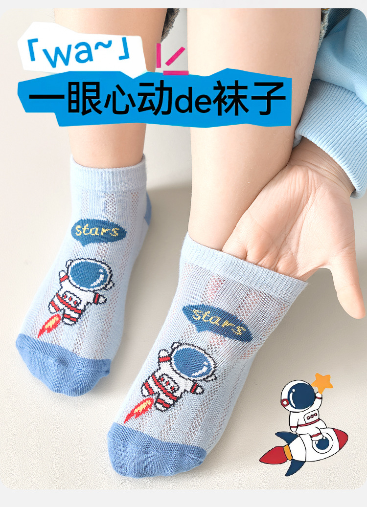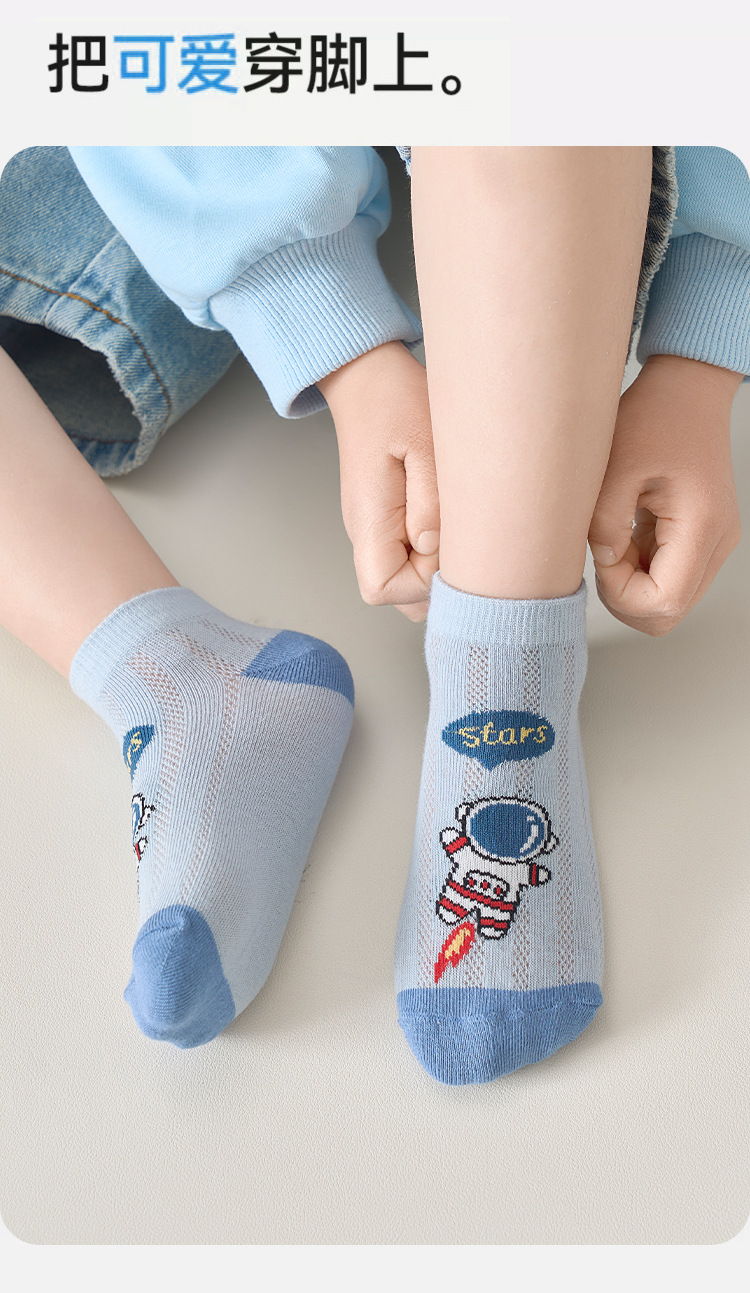 [폭발] 소년 양말 여름 얇은 만화 메쉬 통기성 짧은 튜브 딸 어린이 양말 소년 땀 흡수 양말