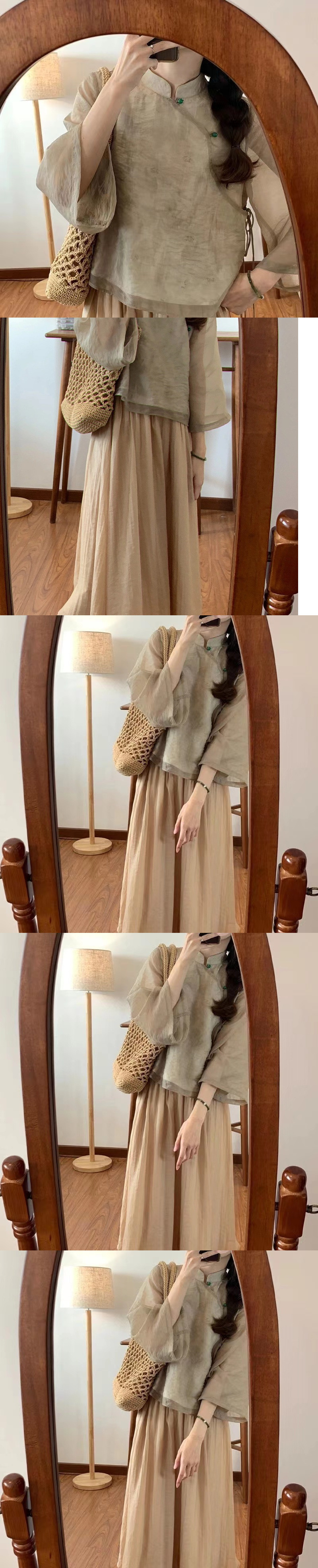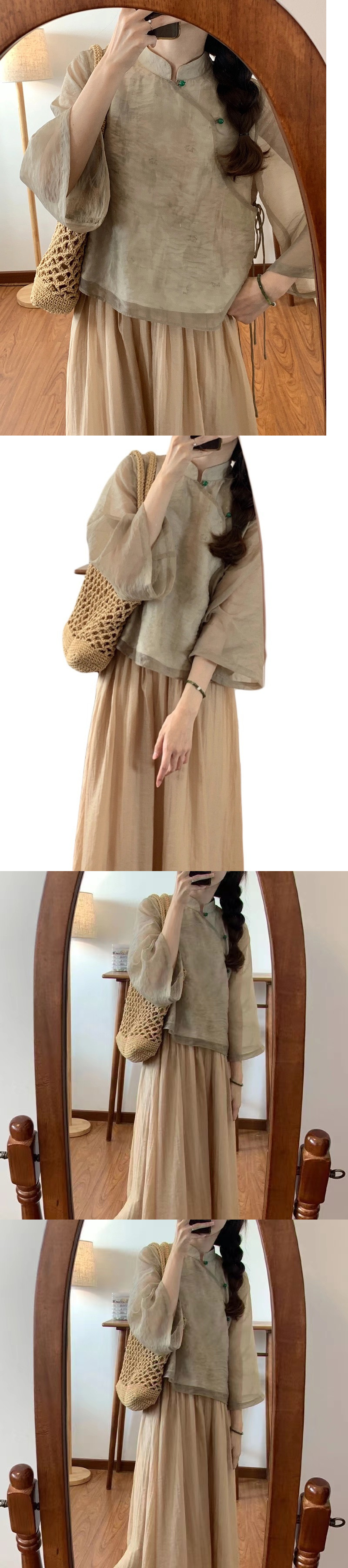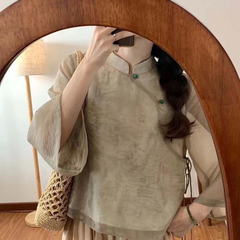 새로운 중국 스타일 라이트 Guofeng 탑 여성 2025 탕 세트 쿨 젠 골동품 스커트 투피스 세트 여성 의류스토어 가기