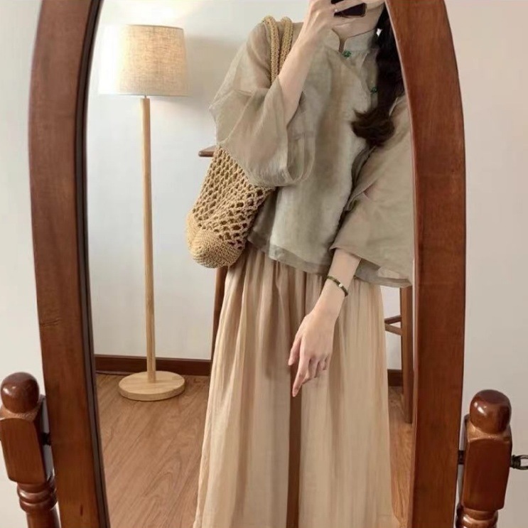 새로운 중국 스타일 라이트 Guofeng 탑 여성 2025 탕 세트 쿨 젠 골동품 스커트 투피스 세트 여성 의류