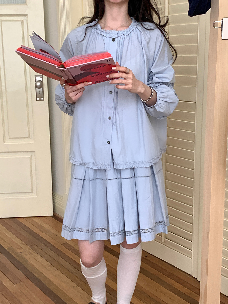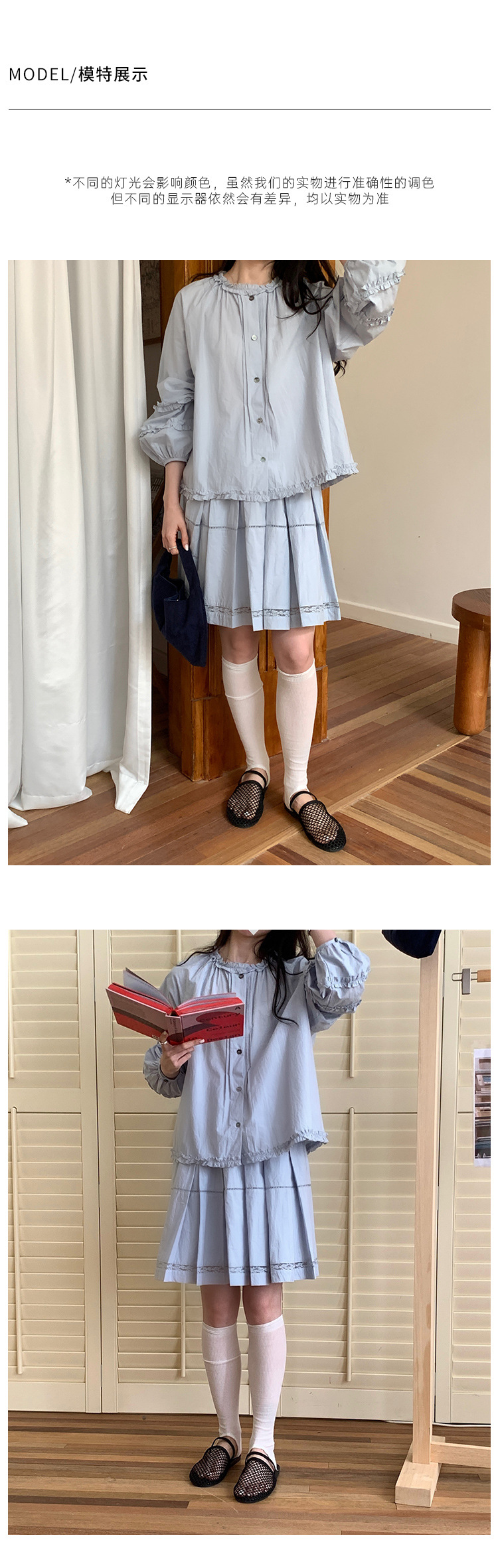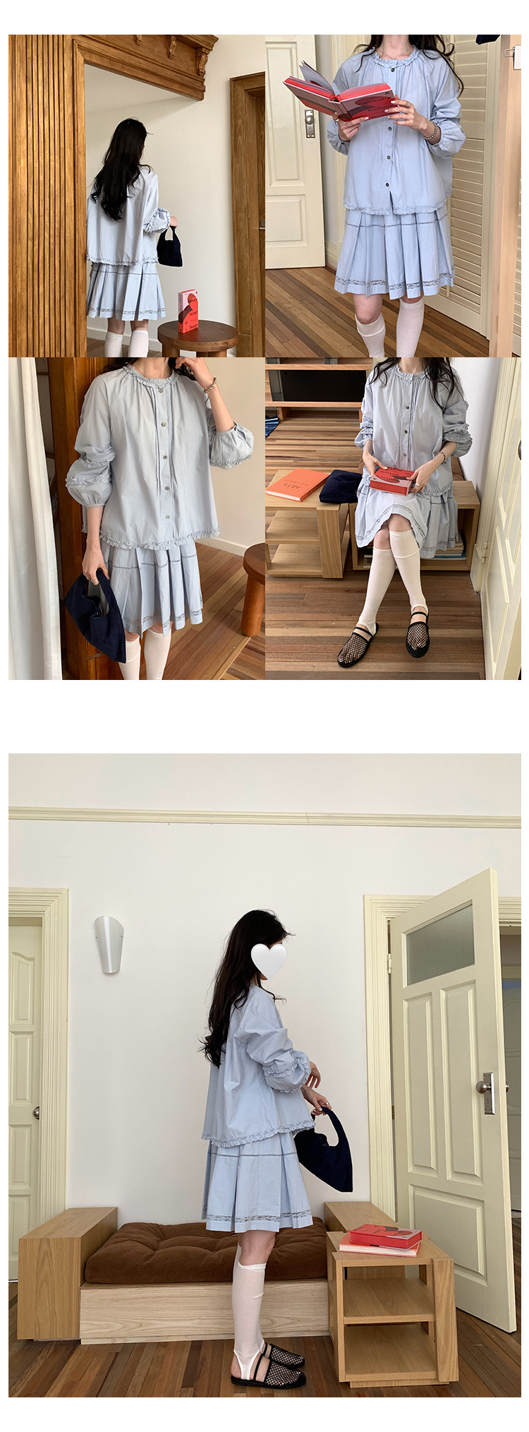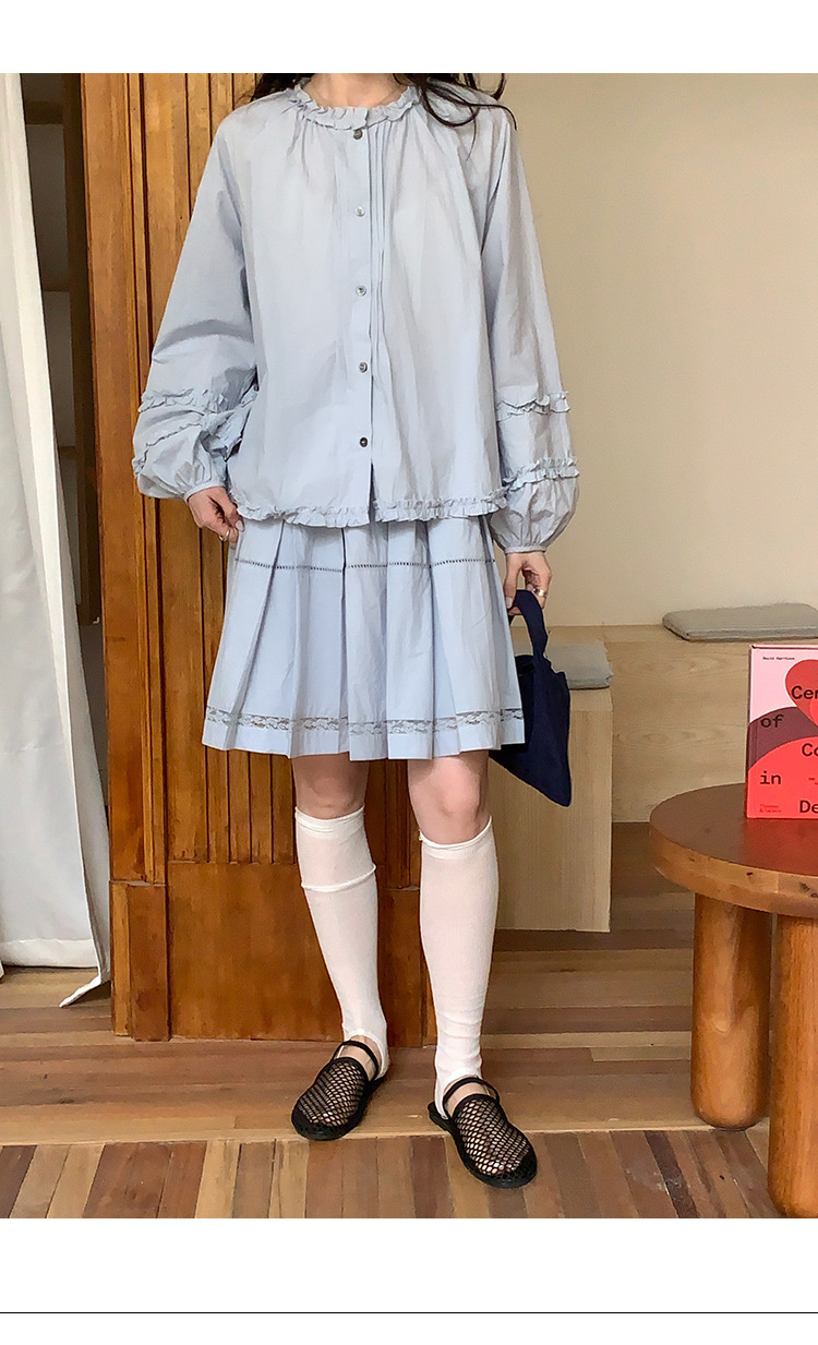 Weisong Clothing 2025 가을 프렌치 귀 라운드 넥 퍼프 슬리브 셔츠 + 여성용 하이 웨이스트 플리츠 스커트스토어 가기
