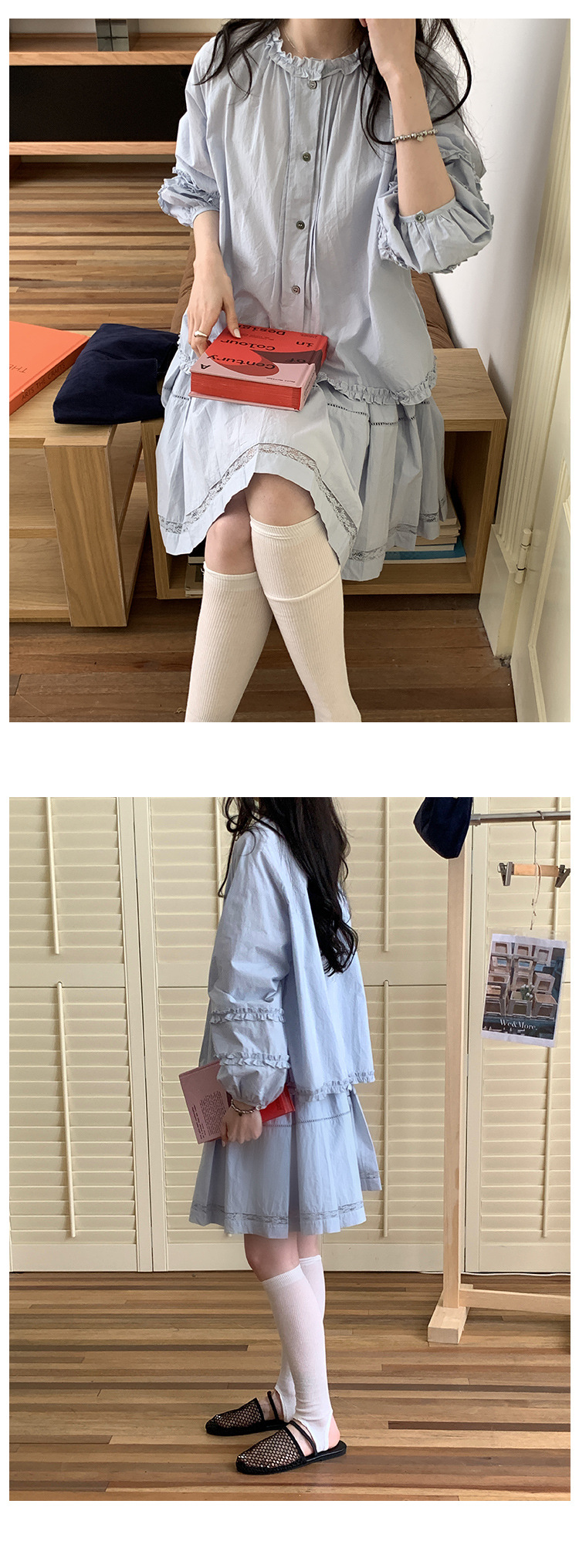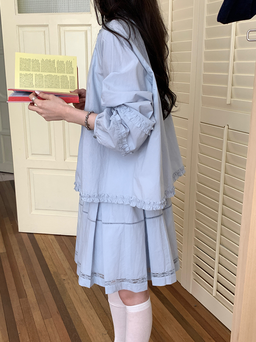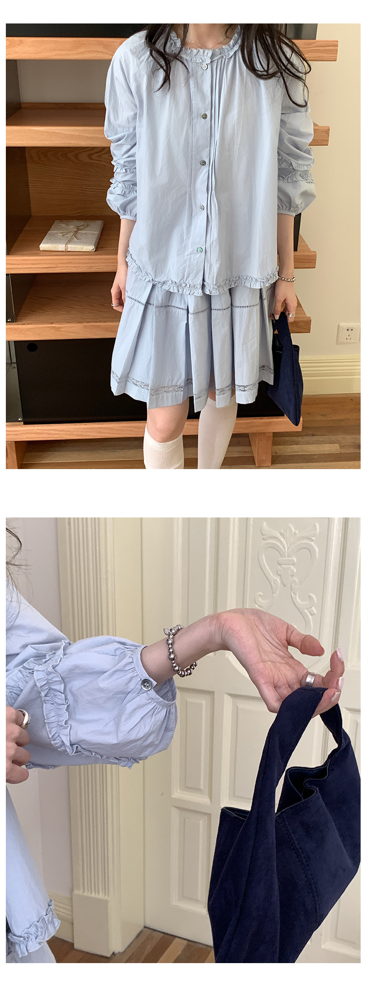 Weisong Clothing 2025 가을 프렌치 귀 라운드 넥 퍼프 슬리브 셔츠 + 여성용 하이 웨이스트 플리츠 스커트스토어 가기