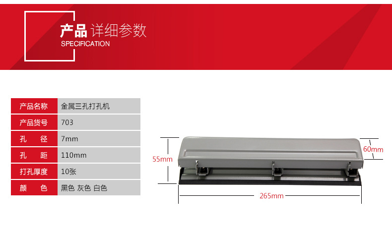 益而高纸张学生试卷打孔机 文件装订10张厚层圆形三孔活页打孔器