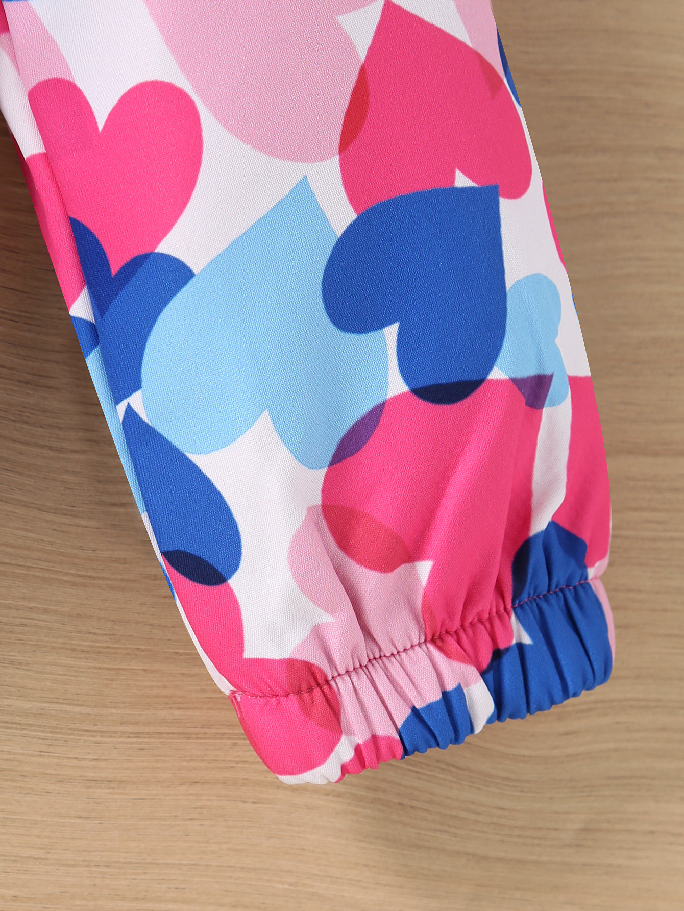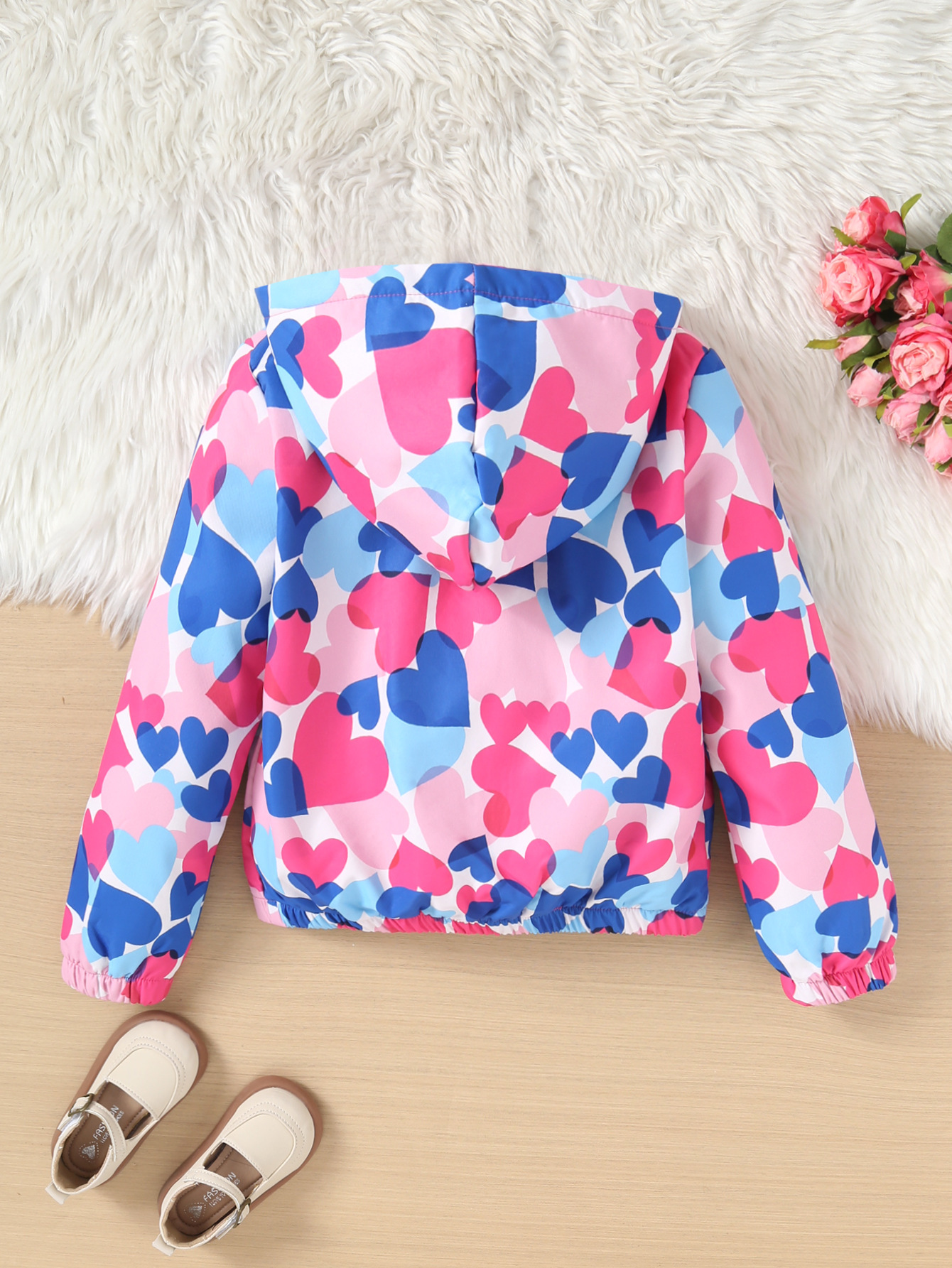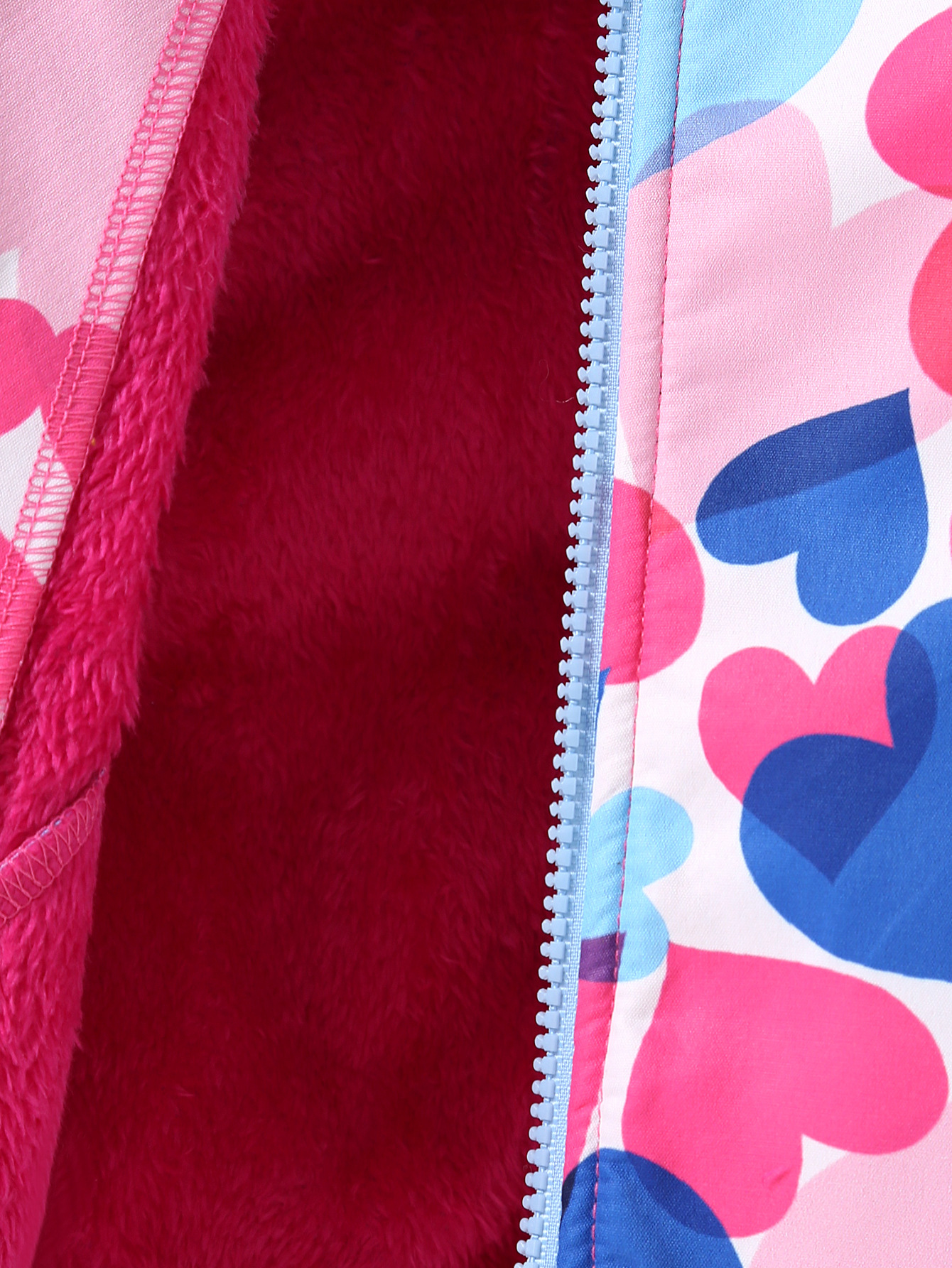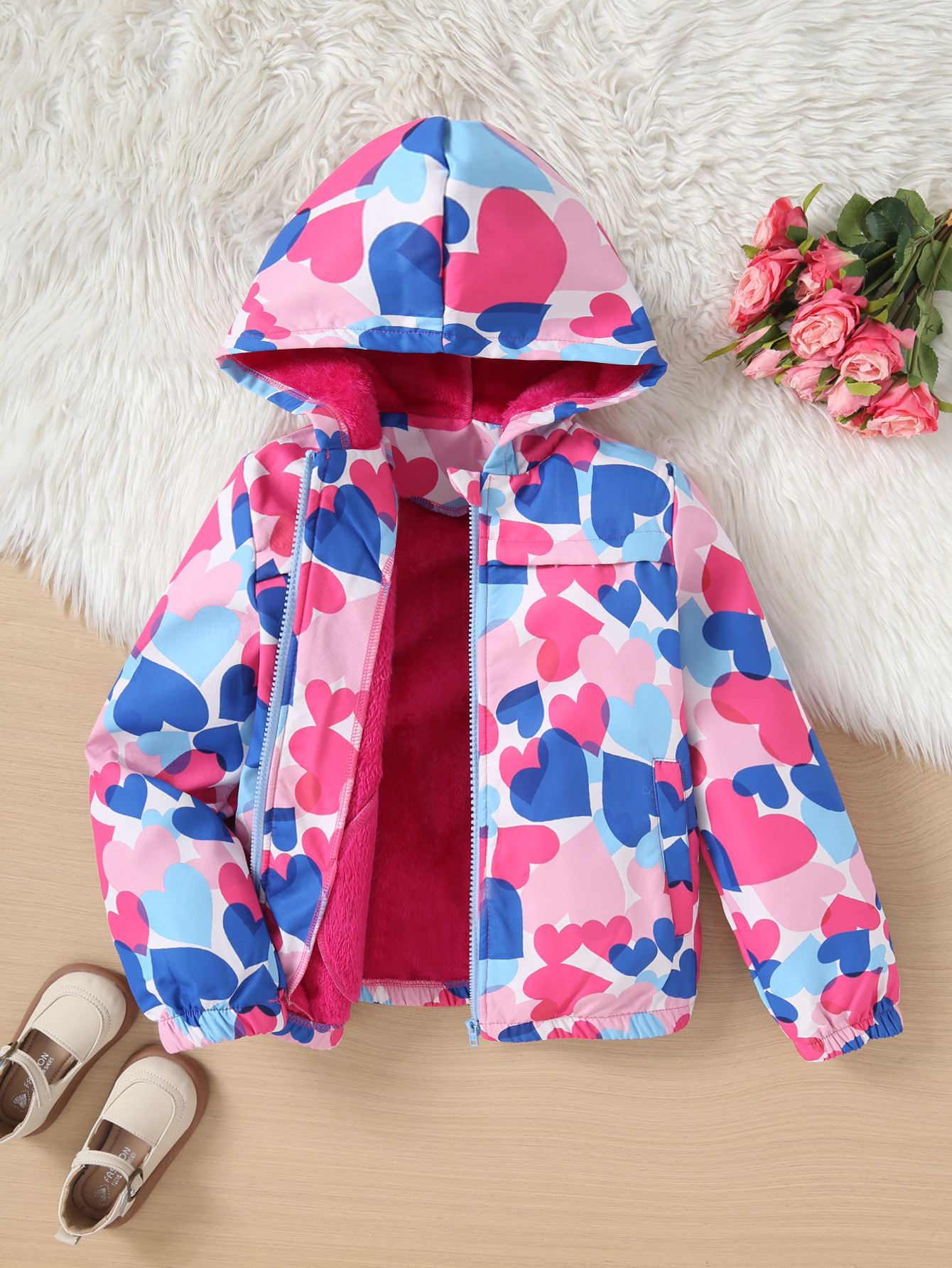 가을, 겨울 소녀의 사랑 프린트 포켓 지퍼 자켓 세련된 후드 자켓 따뜻한 외출 소녀 윈드 브레이커