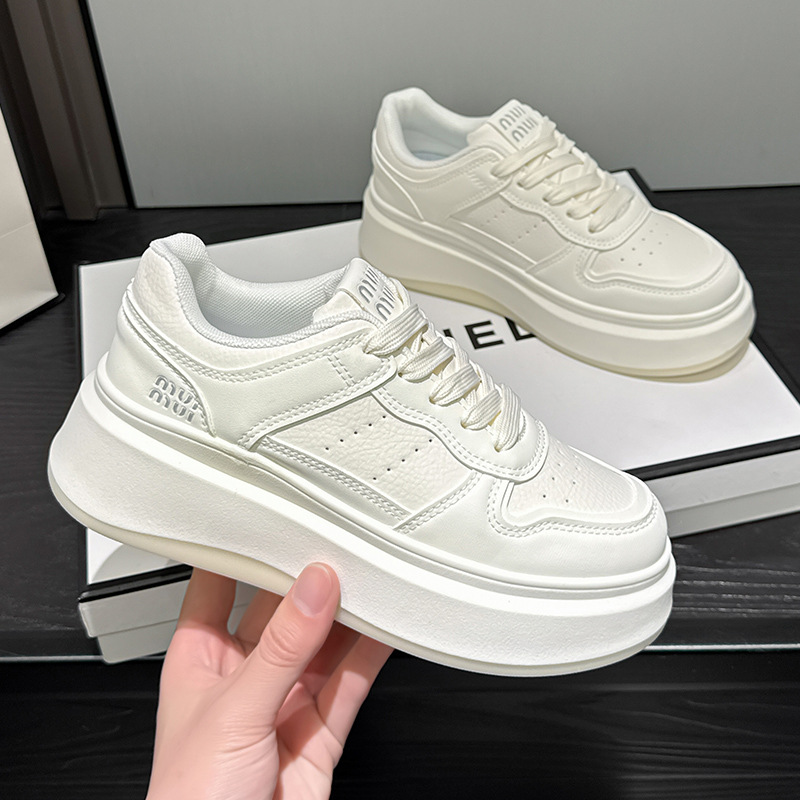 2025 봄과 가을 새로운 스타일 스포츠 및 레저 흰색 신발 여성용 한국어 버전 두꺼운 밑창 가죽 다용도 신발 유행 운동화