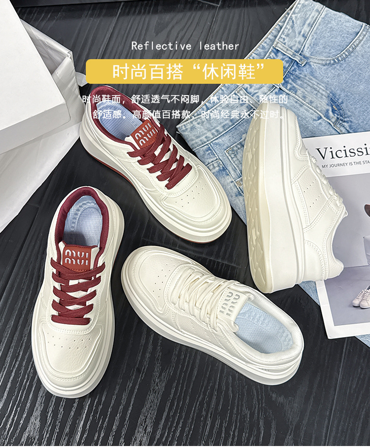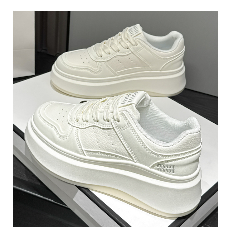 2025 봄과 가을 새로운 스타일 스포츠 및 레저 흰색 신발 여성용 한국어 버전 두꺼운 밑창 가죽 다용도 신발 유행 운동화스토어 가기