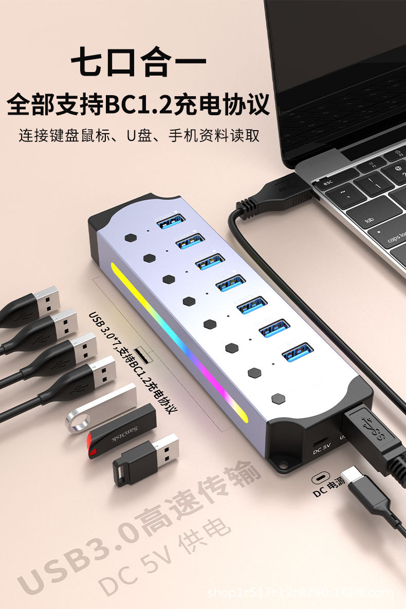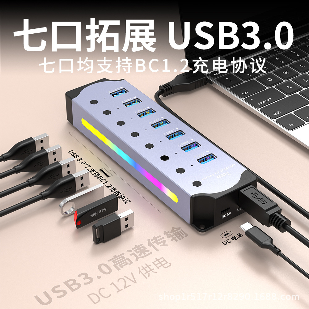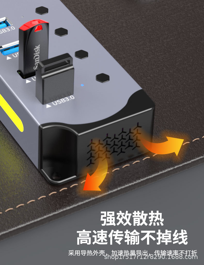 쿨 USB HUB3.0 허브 7 포트 10 포트 알루미늄 합금 3.0 스플리터 컴퓨터 익스텐더스토어 가기