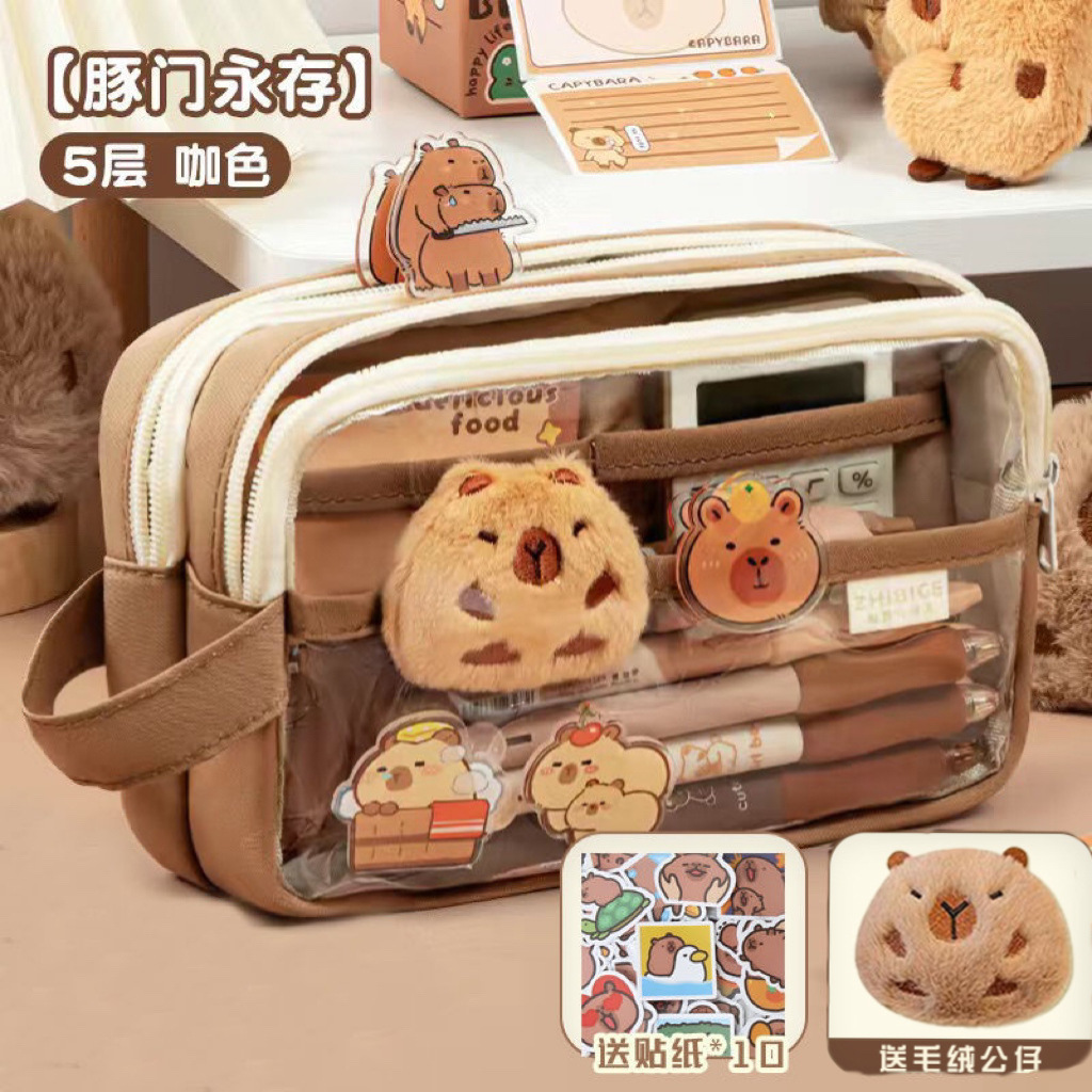 카피발라 연필 케이스 대용량 투명 휴대용 마일라드 컬러 다기능 문구 연필 케이스 중학교 및 초등학생스토어 가기