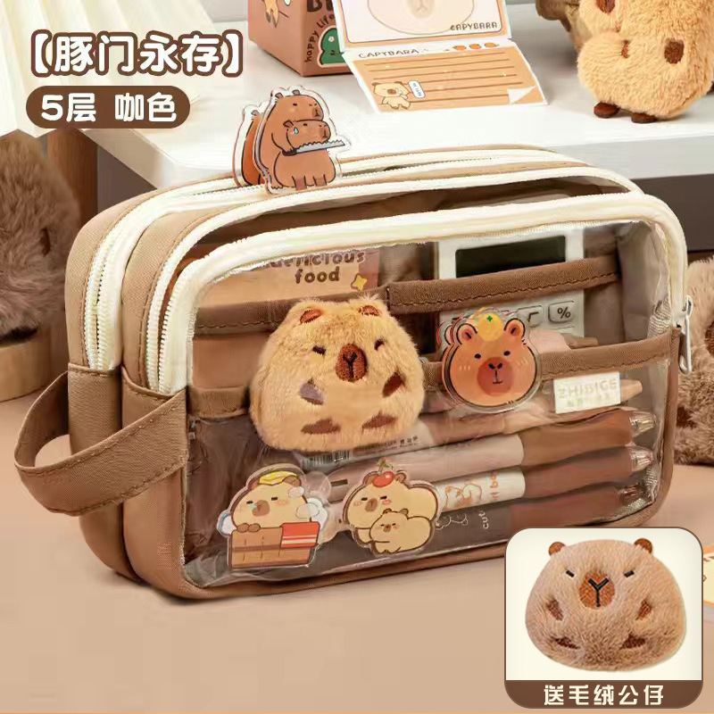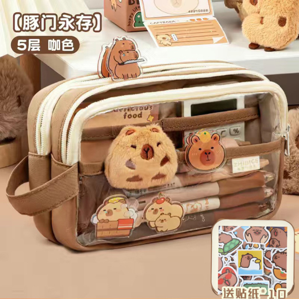 카피발라 연필 케이스 대용량 투명 휴대용 마일라드 컬러 다기능 문구 연필 케이스 중학교 및 초등학생
