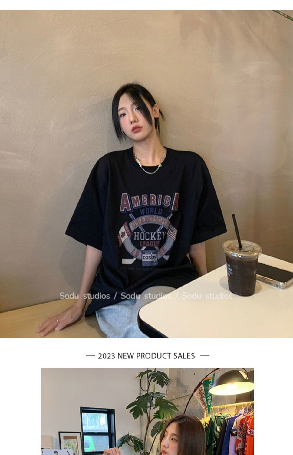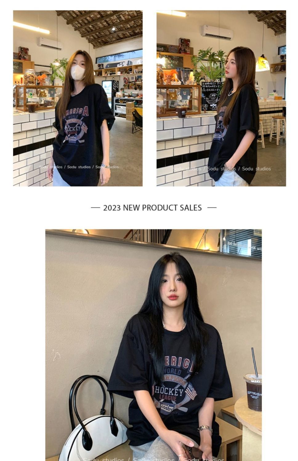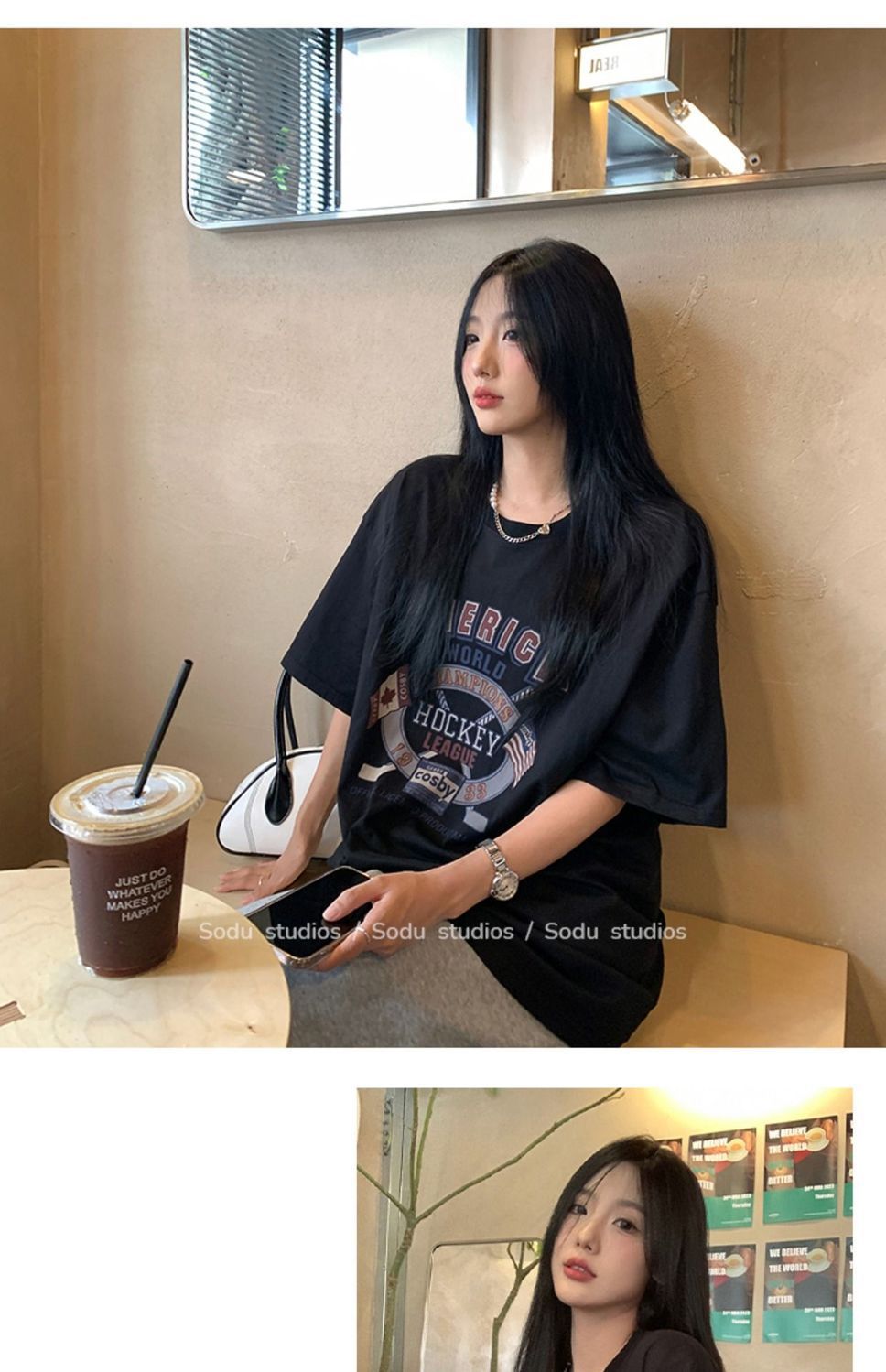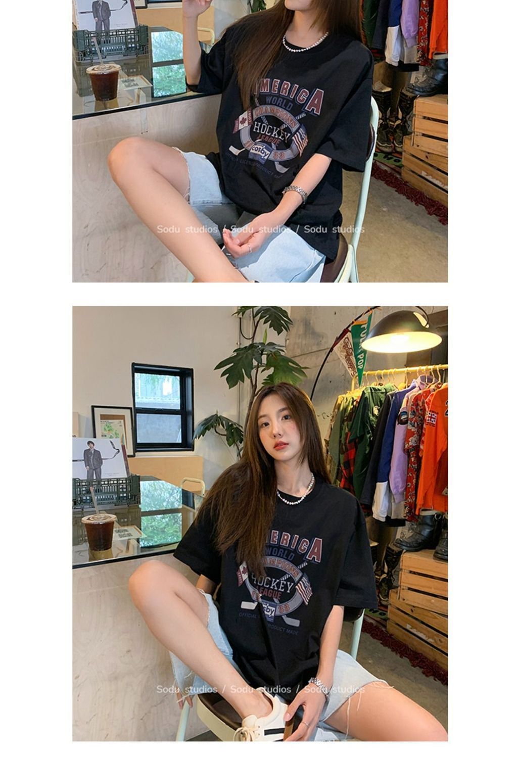 느슨한 둥근 목 중간 길이의 반팔 티셔츠 여성 여름 한국식 유행 연령 감소 캐주얼 탑 여성의 유행 머리스토어 가기