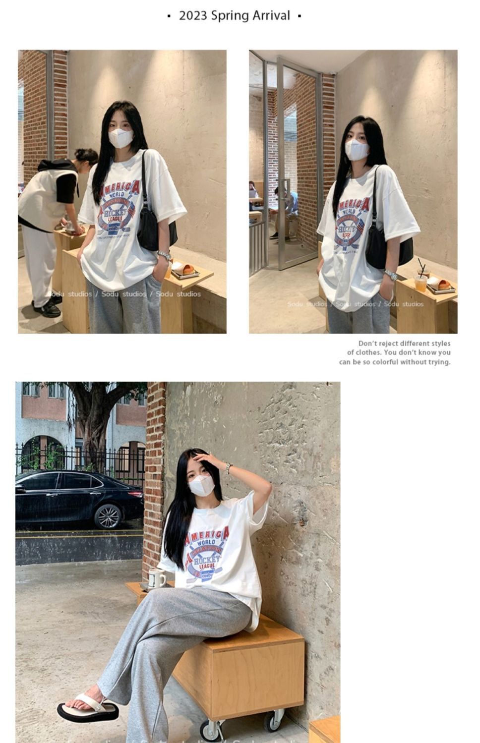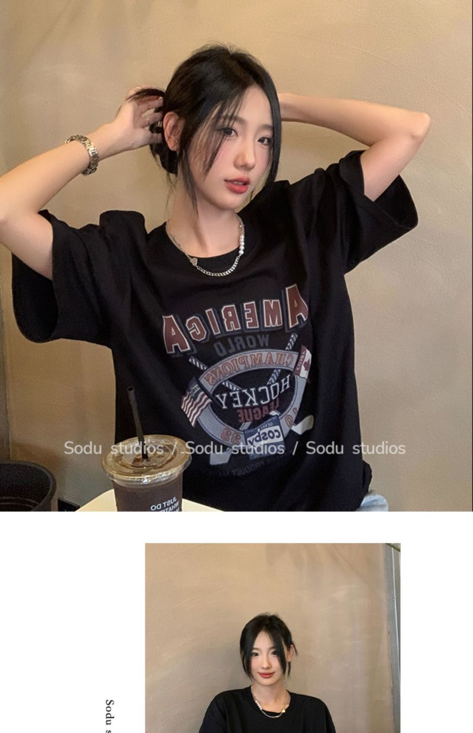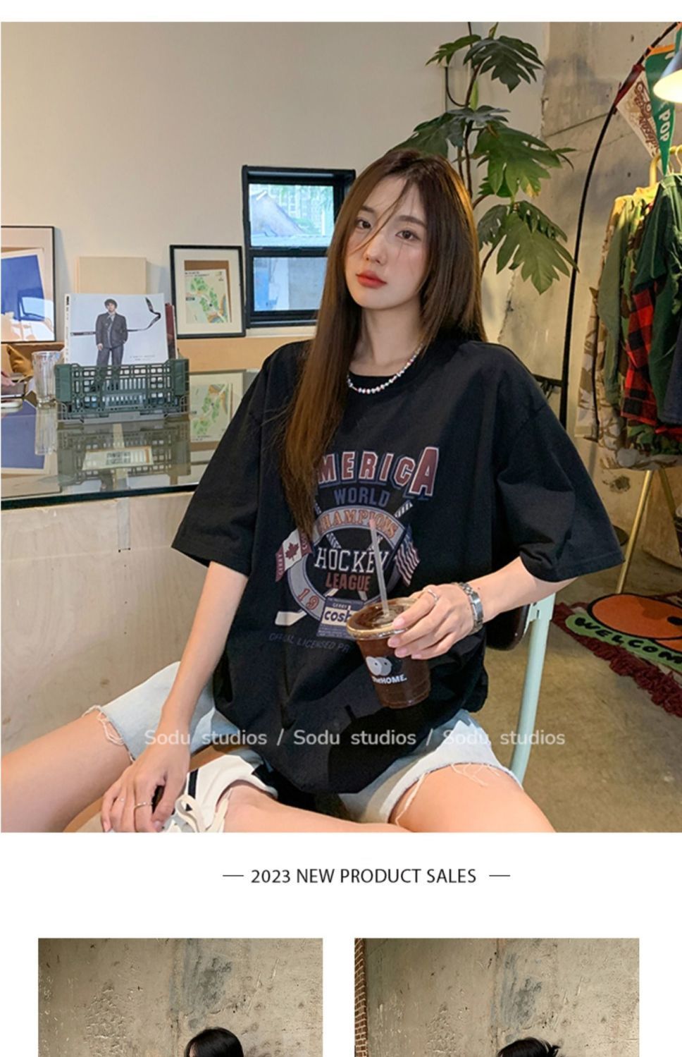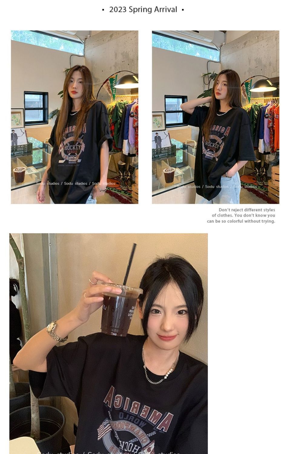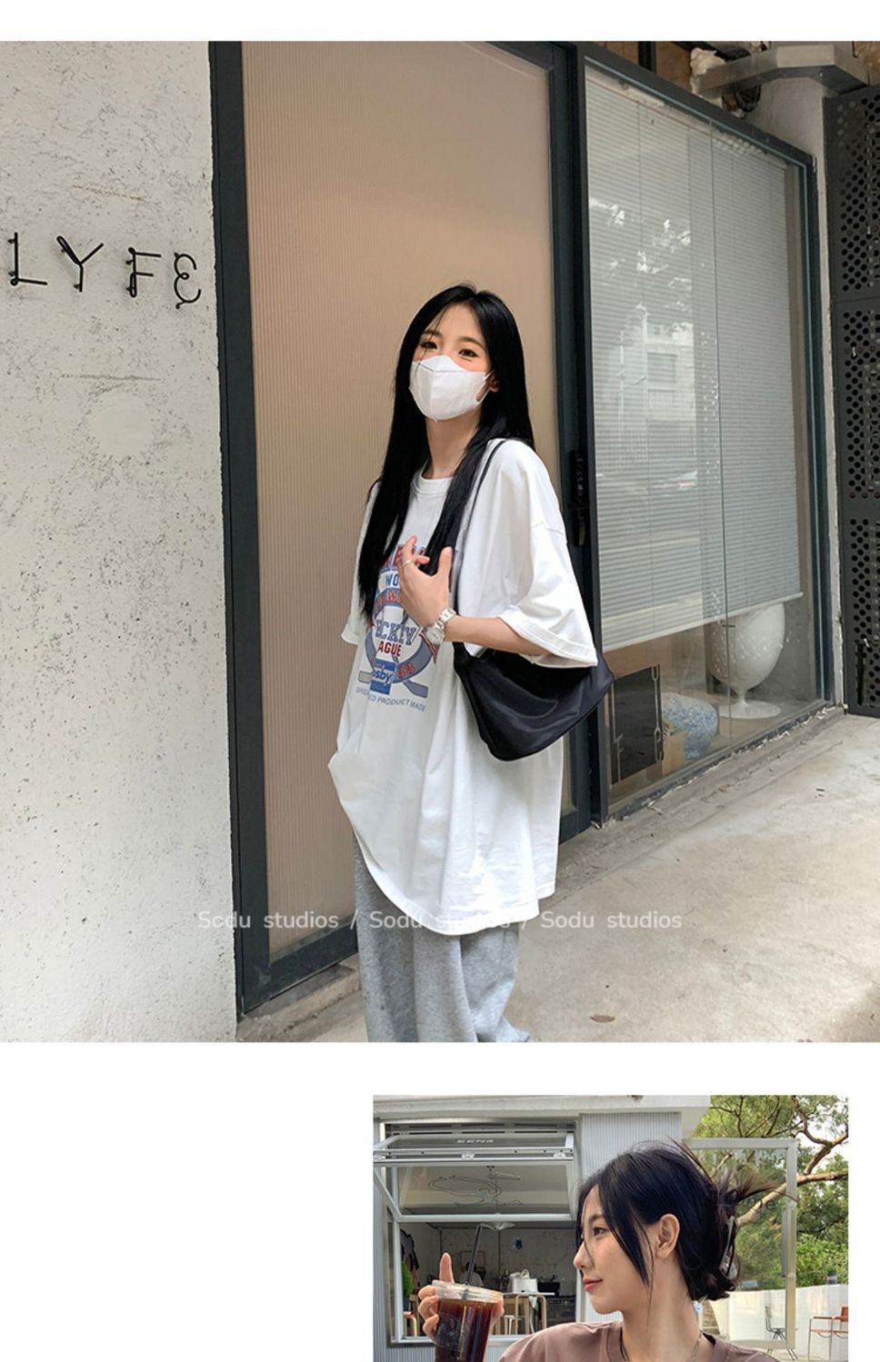 느슨한 둥근 목 중간 길이의 반팔 티셔츠 여성 여름 한국식 유행 연령 감소 캐주얼 탑 여성의 유행 머리스토어 가기