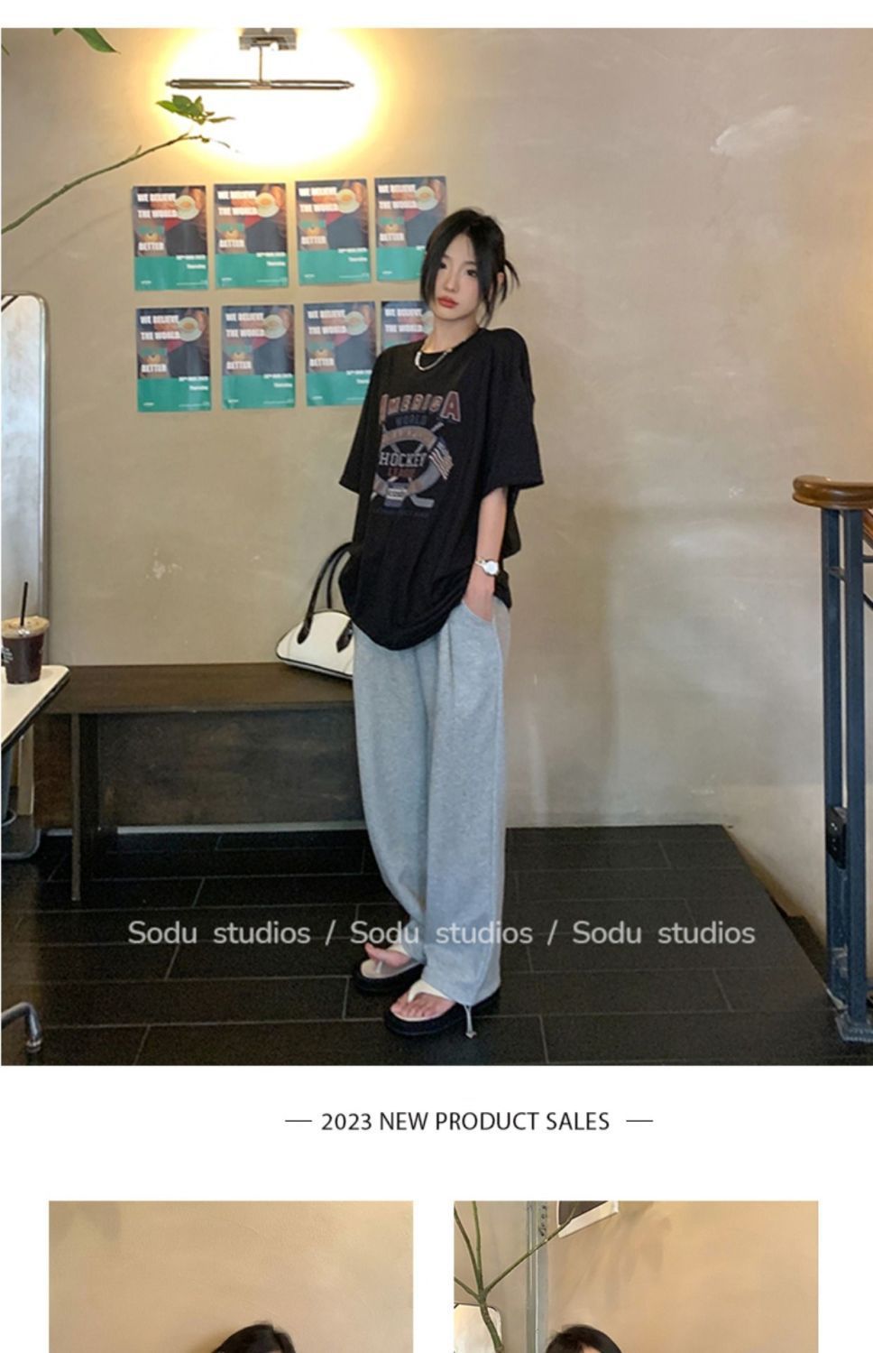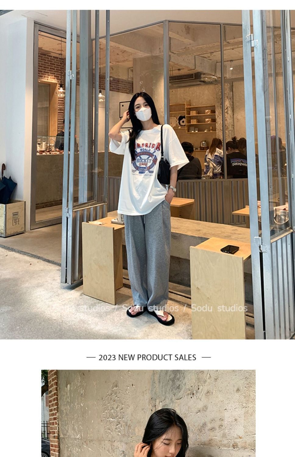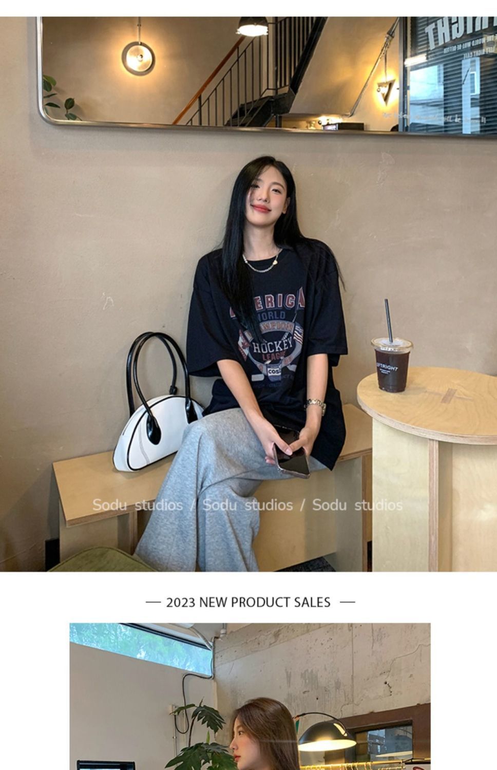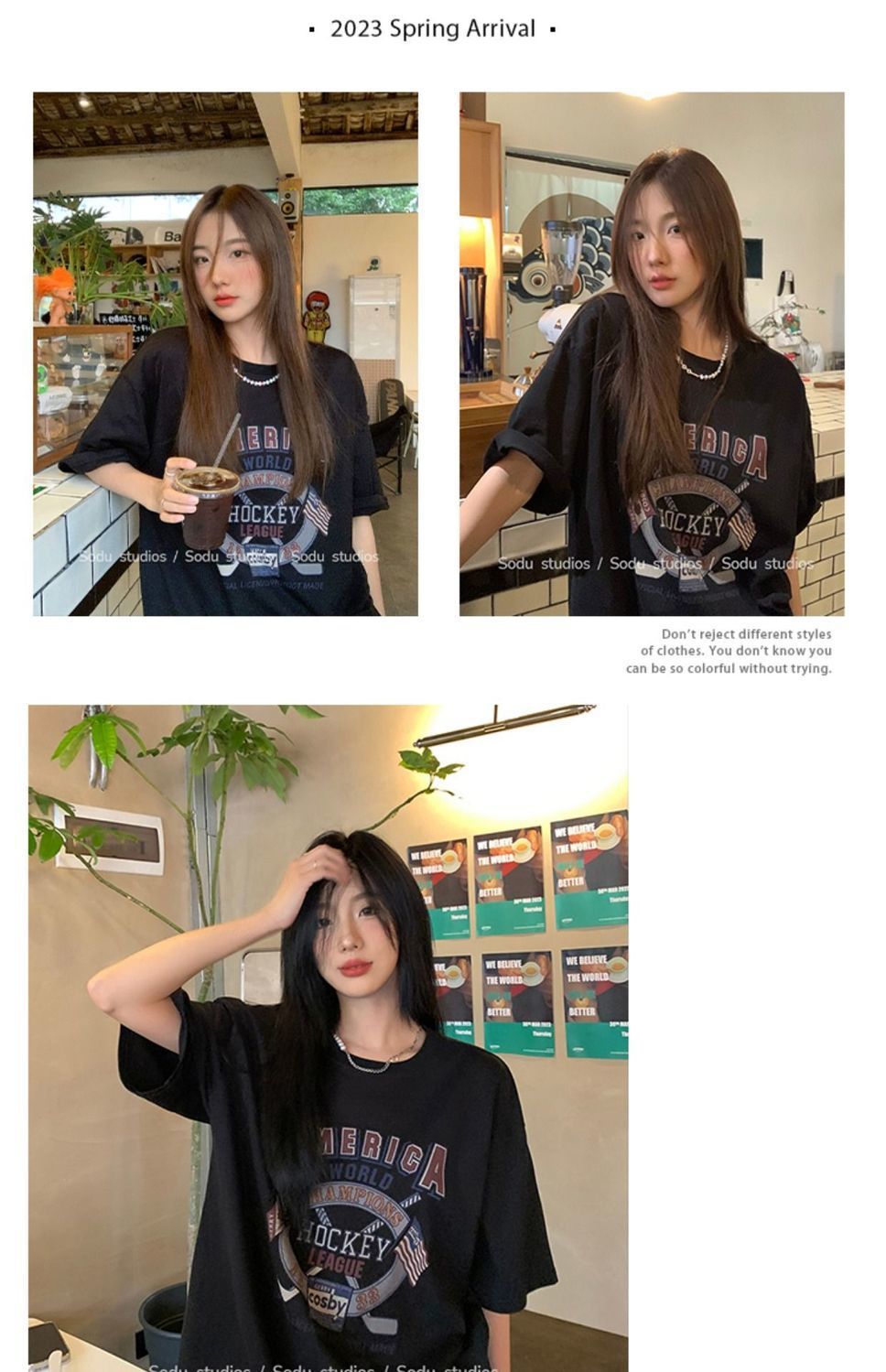 느슨한 둥근 목 중간 길이의 반팔 티셔츠 여성 여름 한국식 유행 연령 감소 캐주얼 탑 여성의 유행 머리스토어 가기