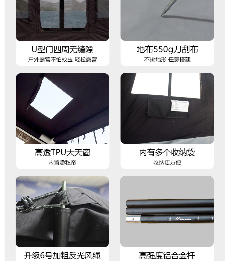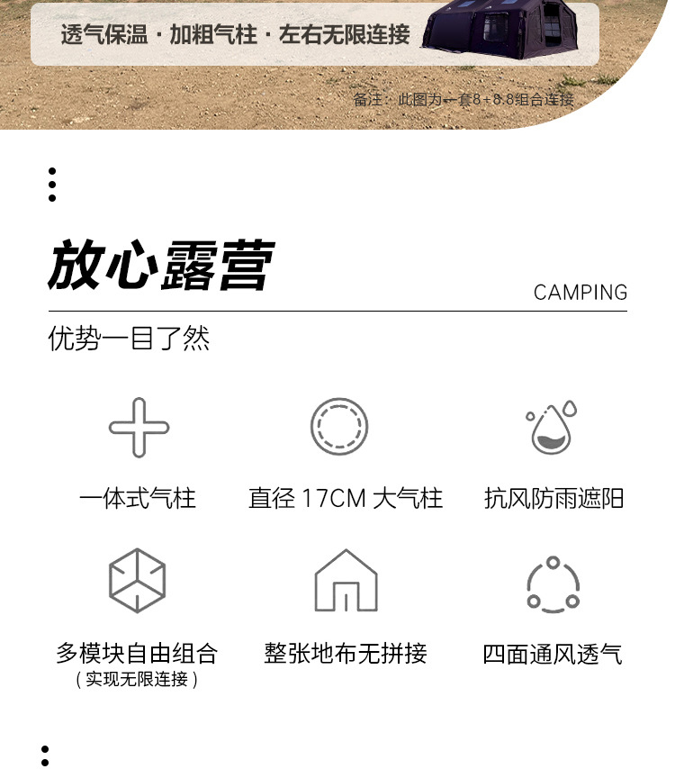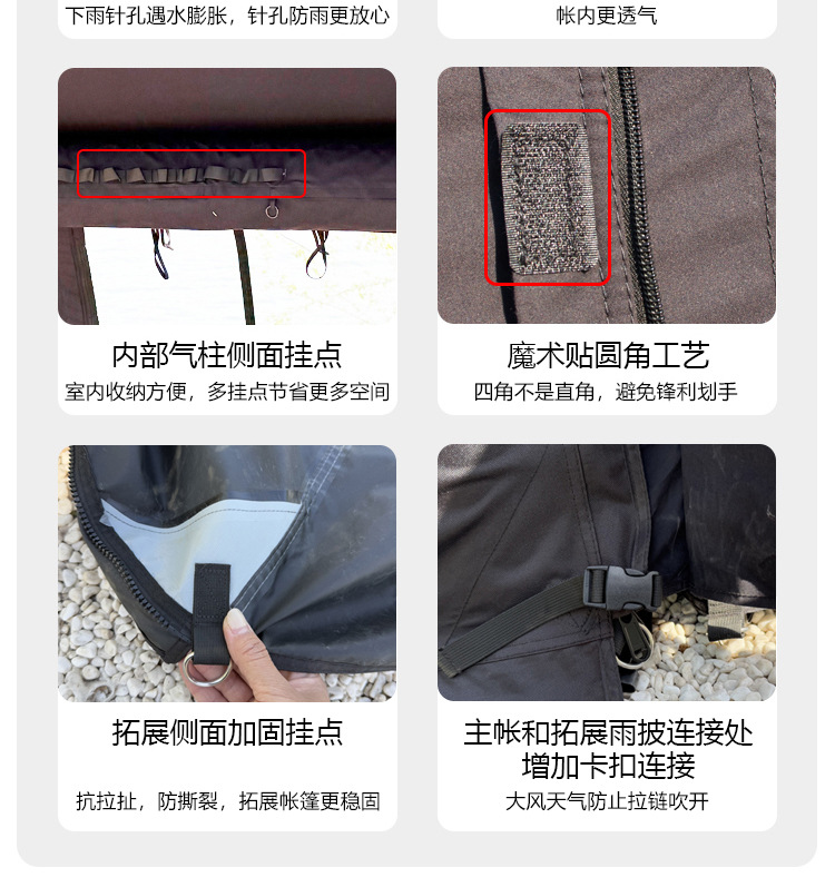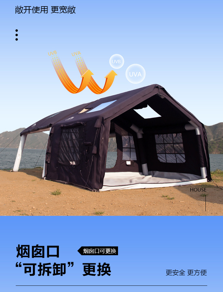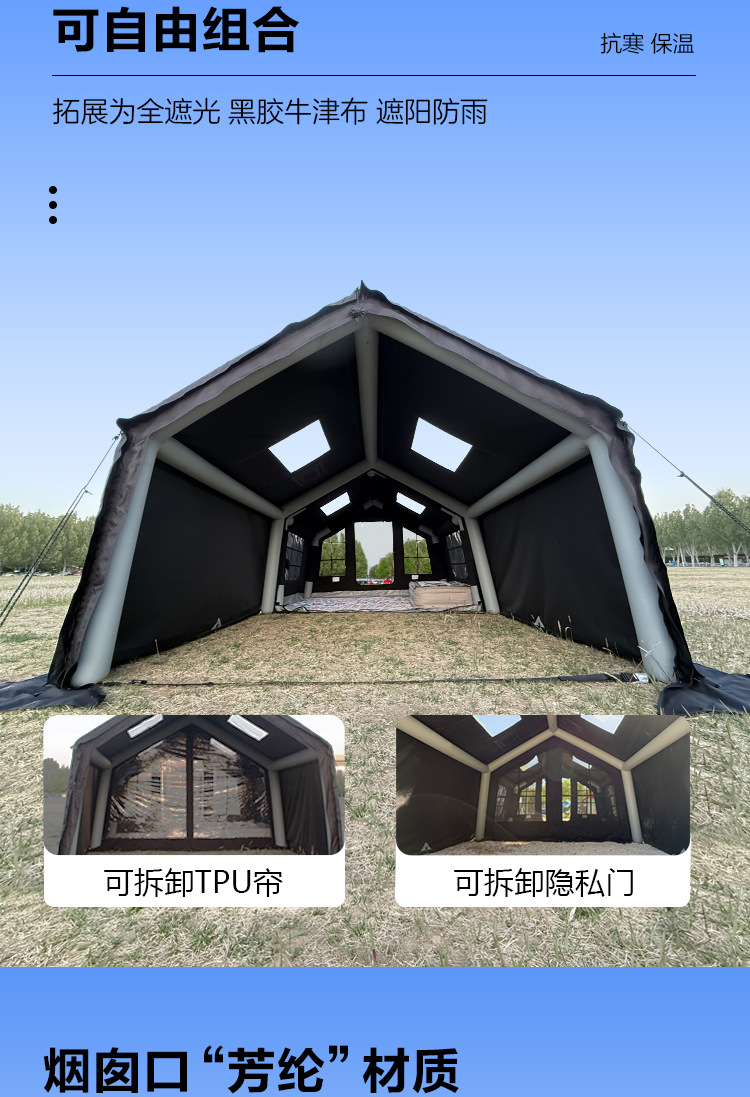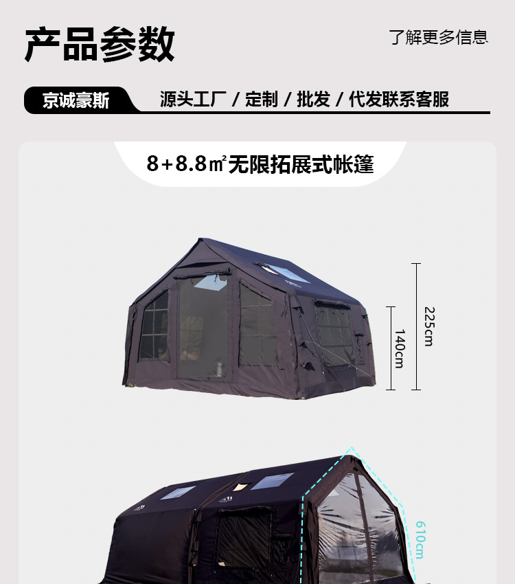 • 블랙 8+8.8㎡(확장 공기 기둥 + 메인 텐트 + 확장 + 탈착식 TPU 커튼 + 캐노피 폴 3개 전체 세트)