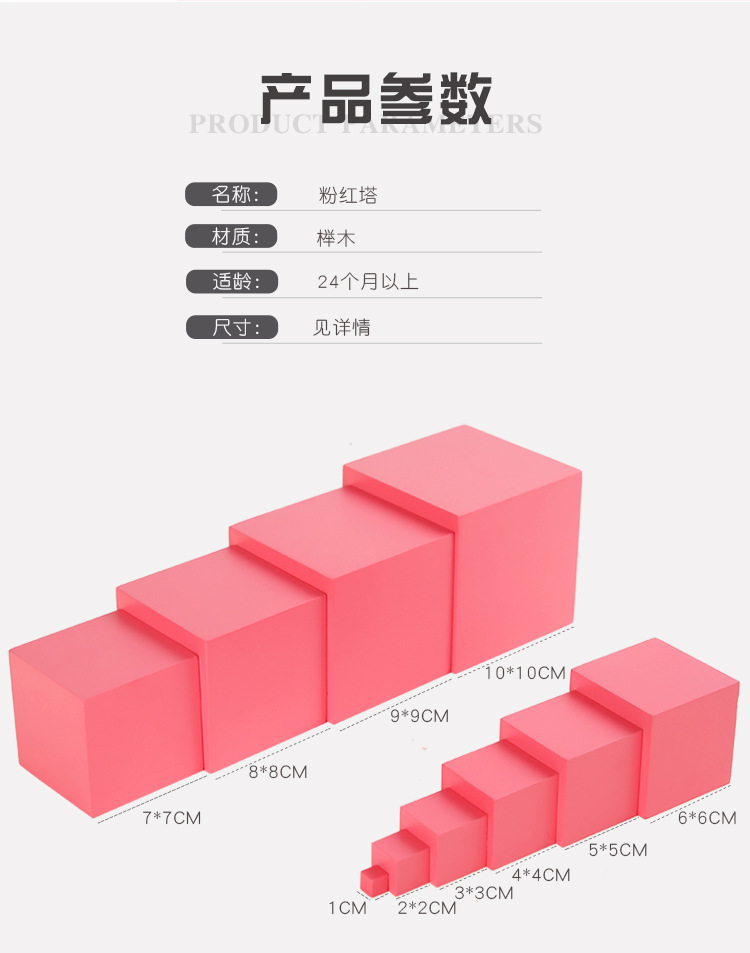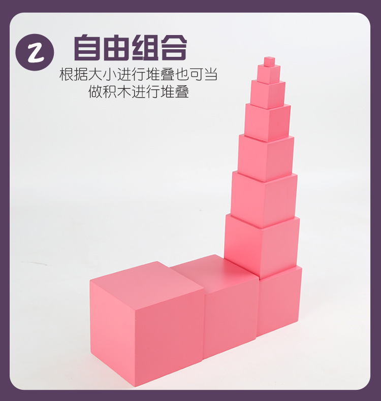 몬테소리 몬테소리 감각 집중력 훈련 교육 보조품 너도밤 나무 핑크 타워 3-6 세 유치원 장난감