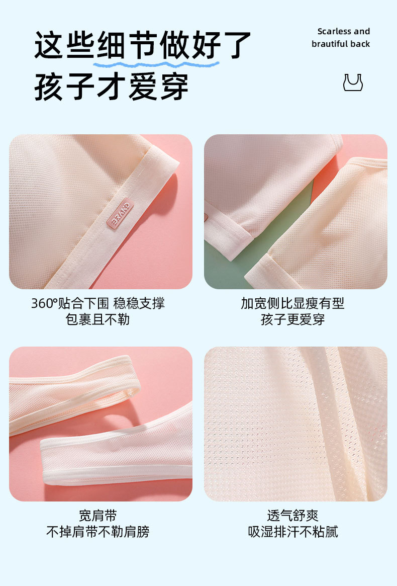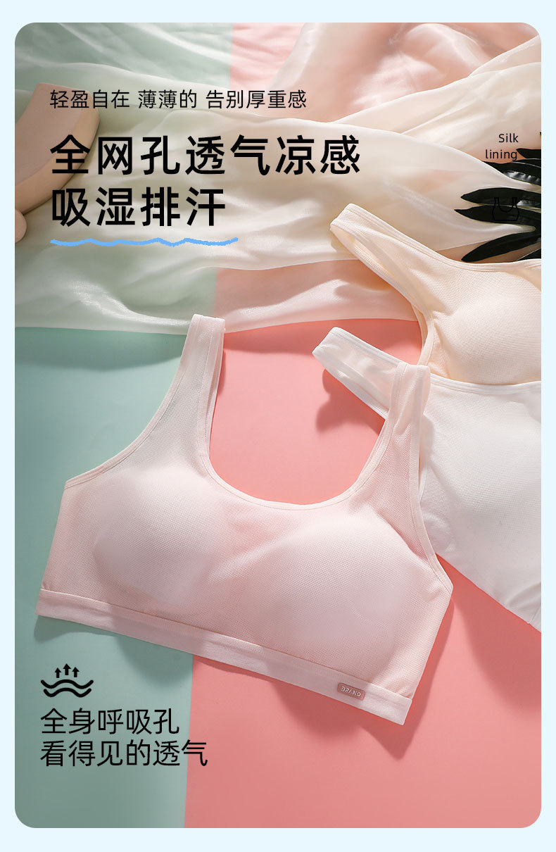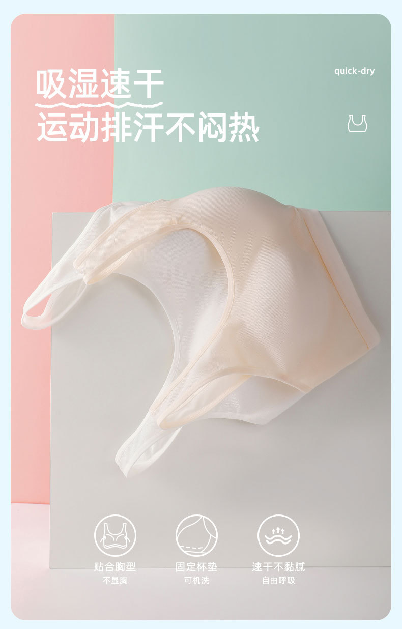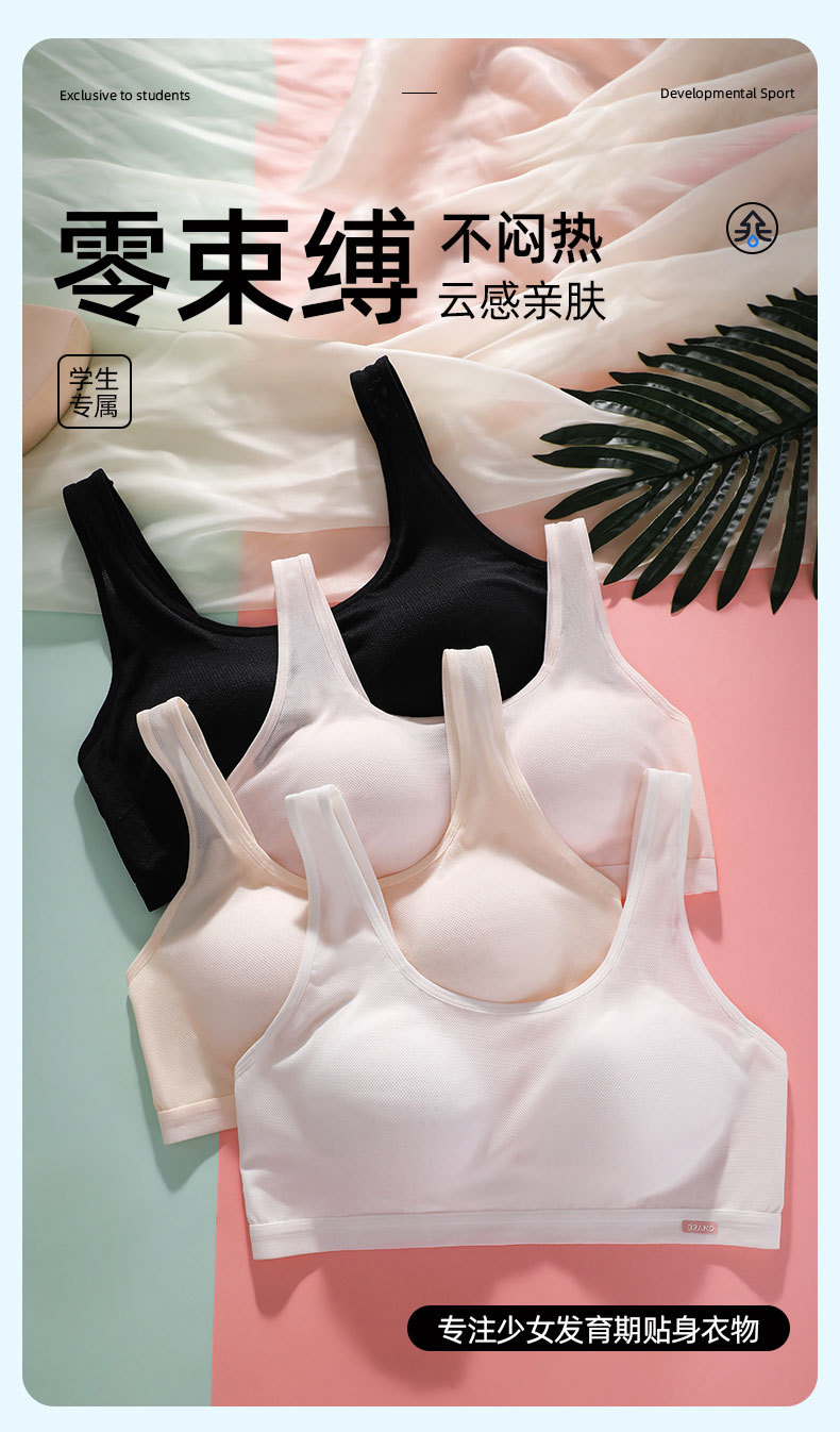 Omefen 발달 중학생 학생 스틸 링 없음 스포츠 브래지어 반대로 범프 고정 코튼 패드 조끼 속옷 여성