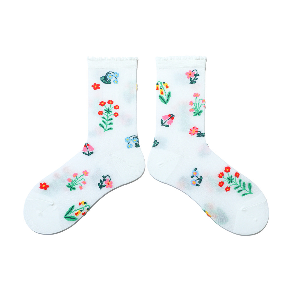 동물과 작은 꽃 2 여름 복고풍 귀여운 한국 스타일 달콤한 스타일 작은 꽃 토끼 동물 밝은 실크 봄과 여름 양말스토어 가기