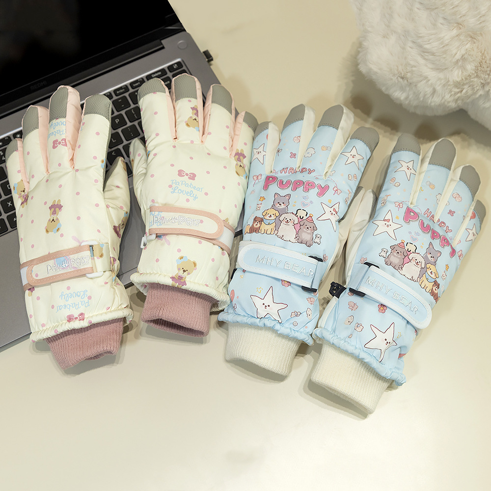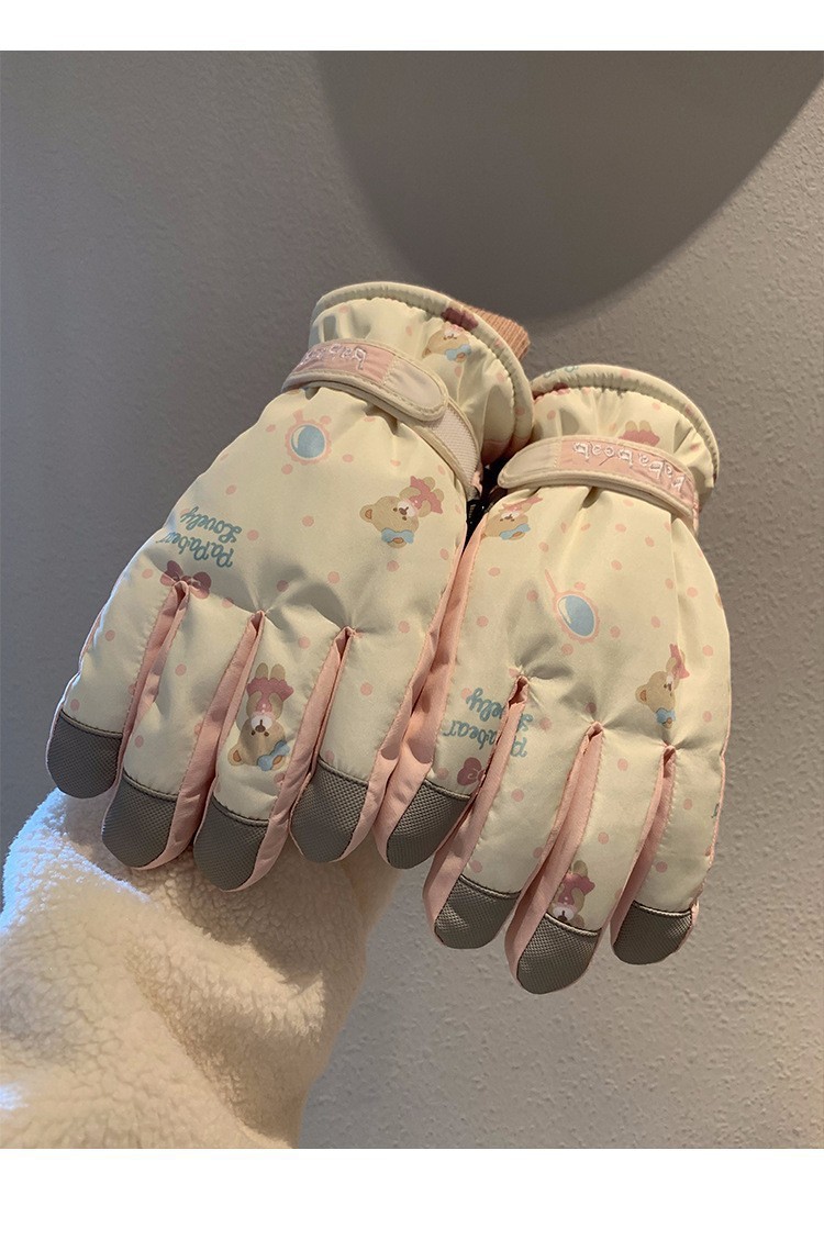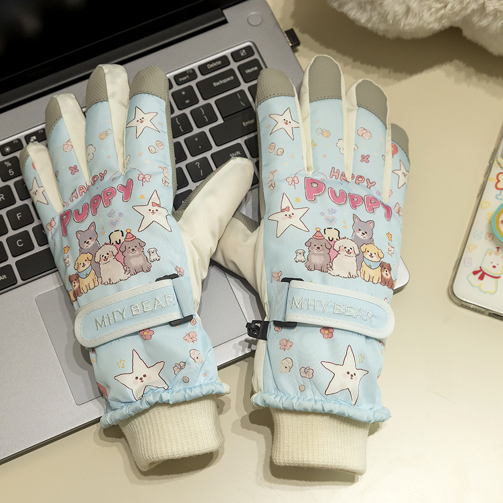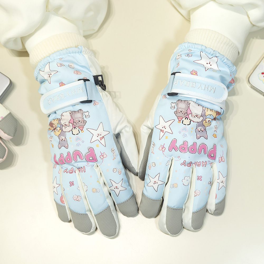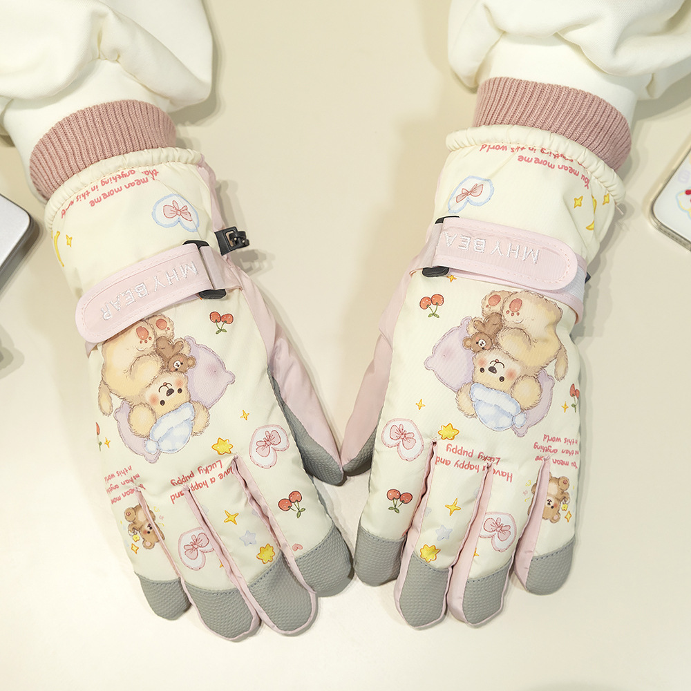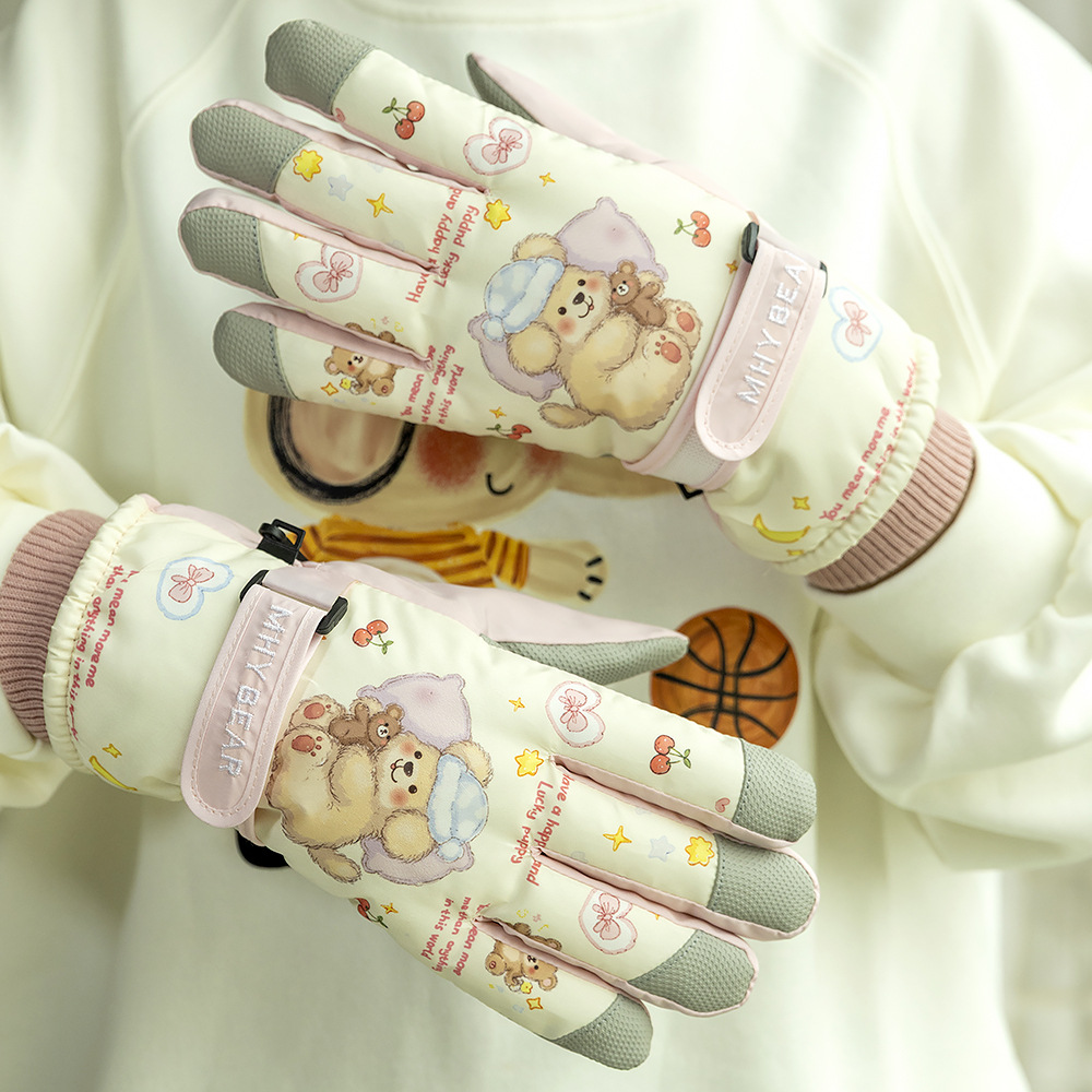 겨울용 남녀공용 귀여운 만화 캐릭터 스키 장갑, 터치스크린 사용 가능, 보온, 벨벳 안감, 두꺼운, 방풍, 방한, 방수
