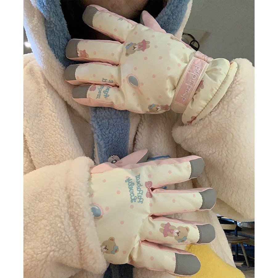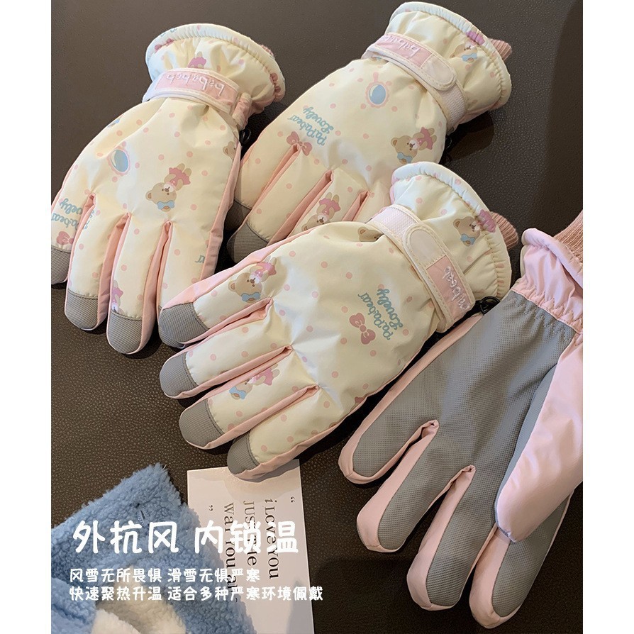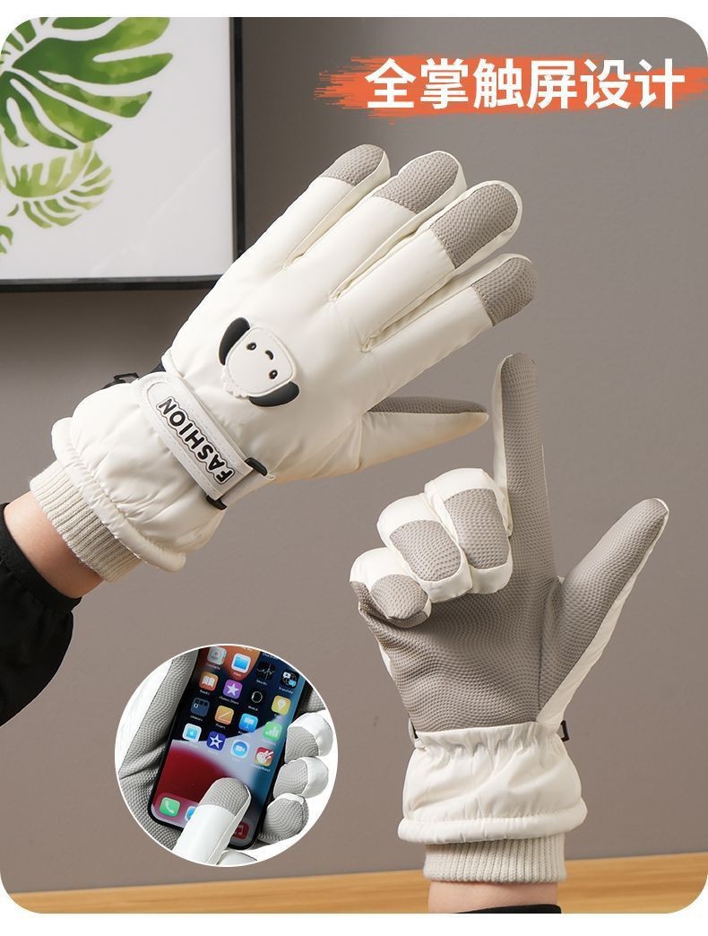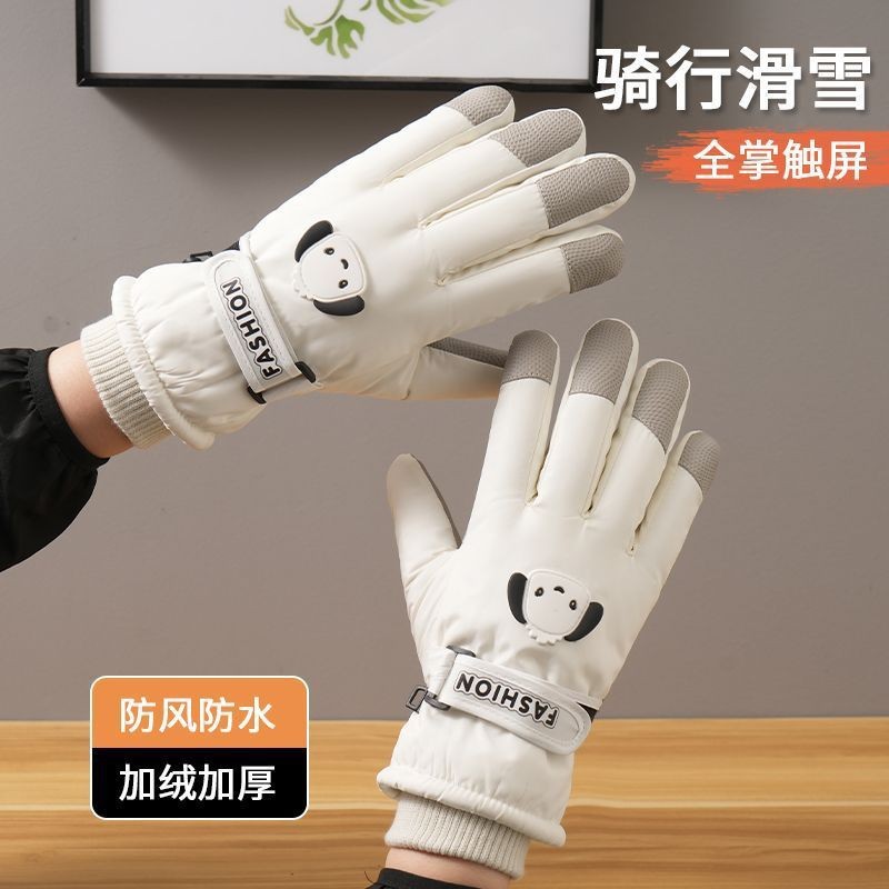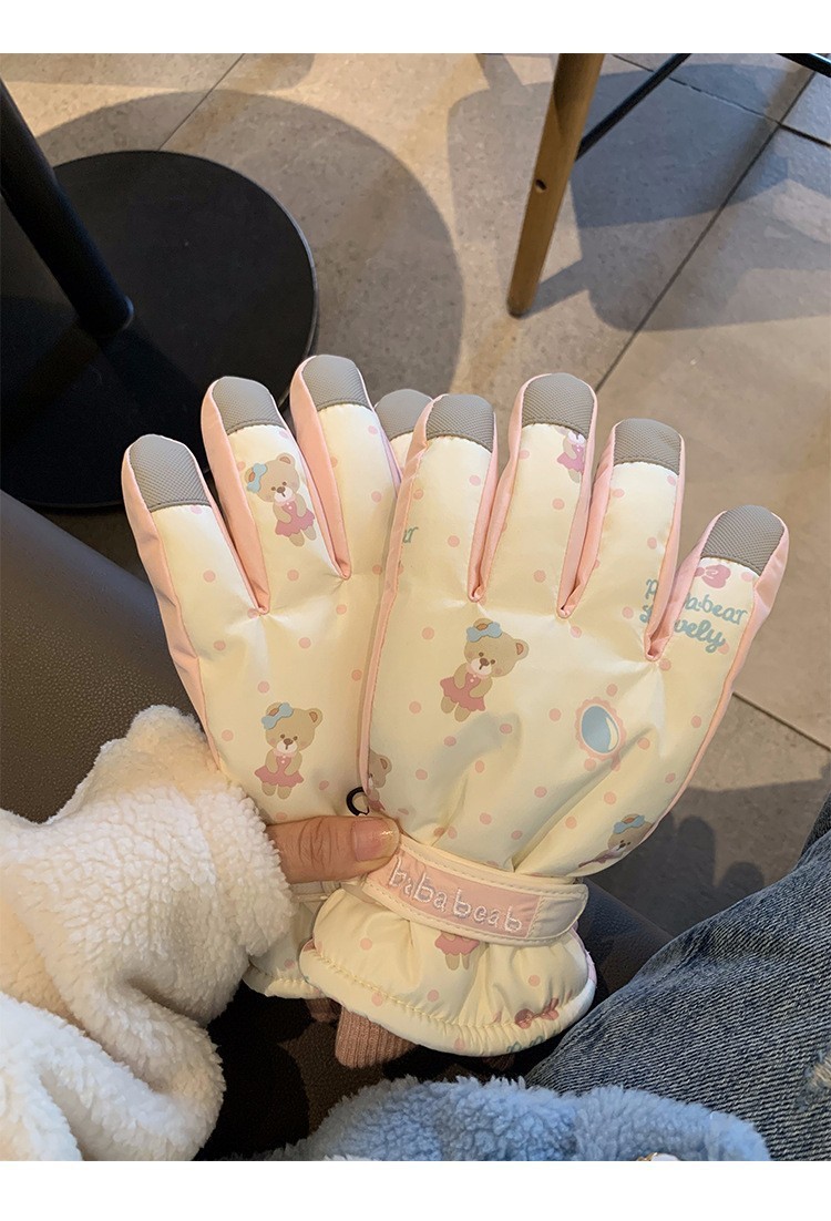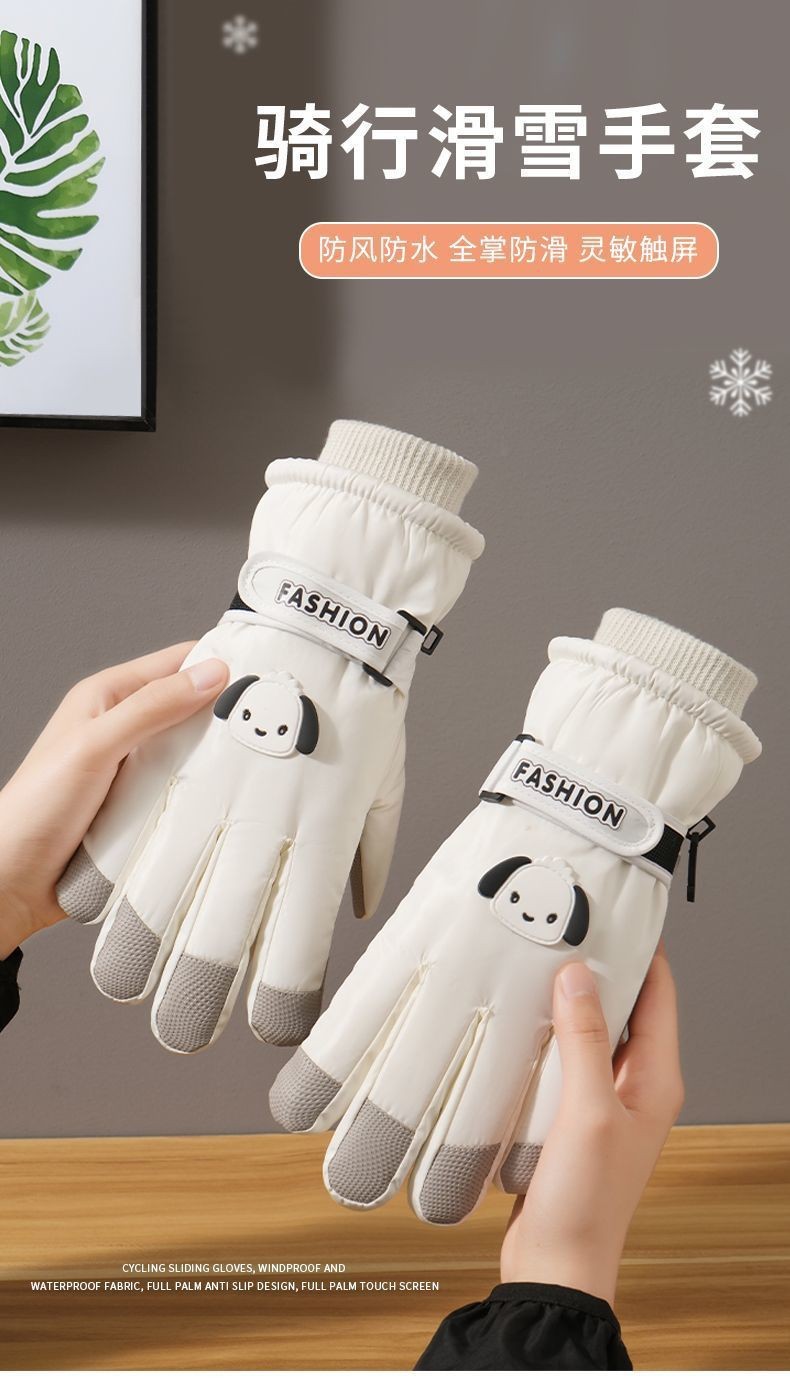 겨울용 남녀공용 귀여운 만화 캐릭터 스키 장갑, 터치스크린 사용 가능, 보온, 벨벳 안감, 두꺼운, 방풍, 방한, 방수
