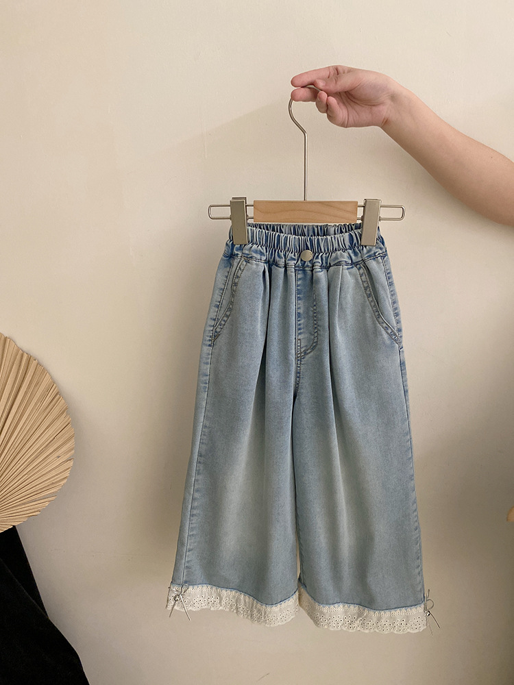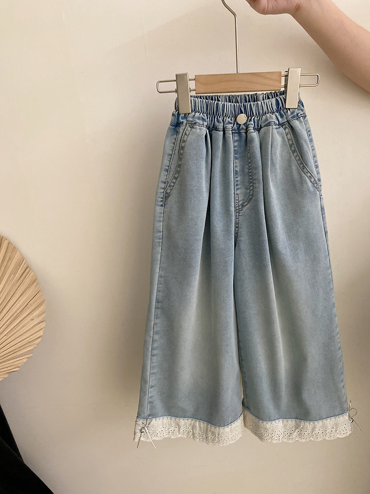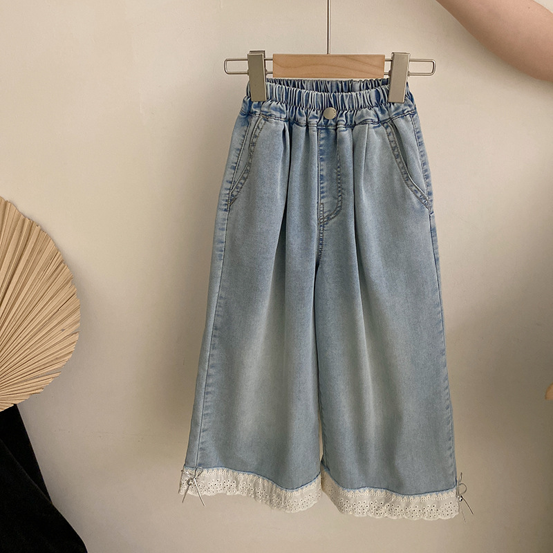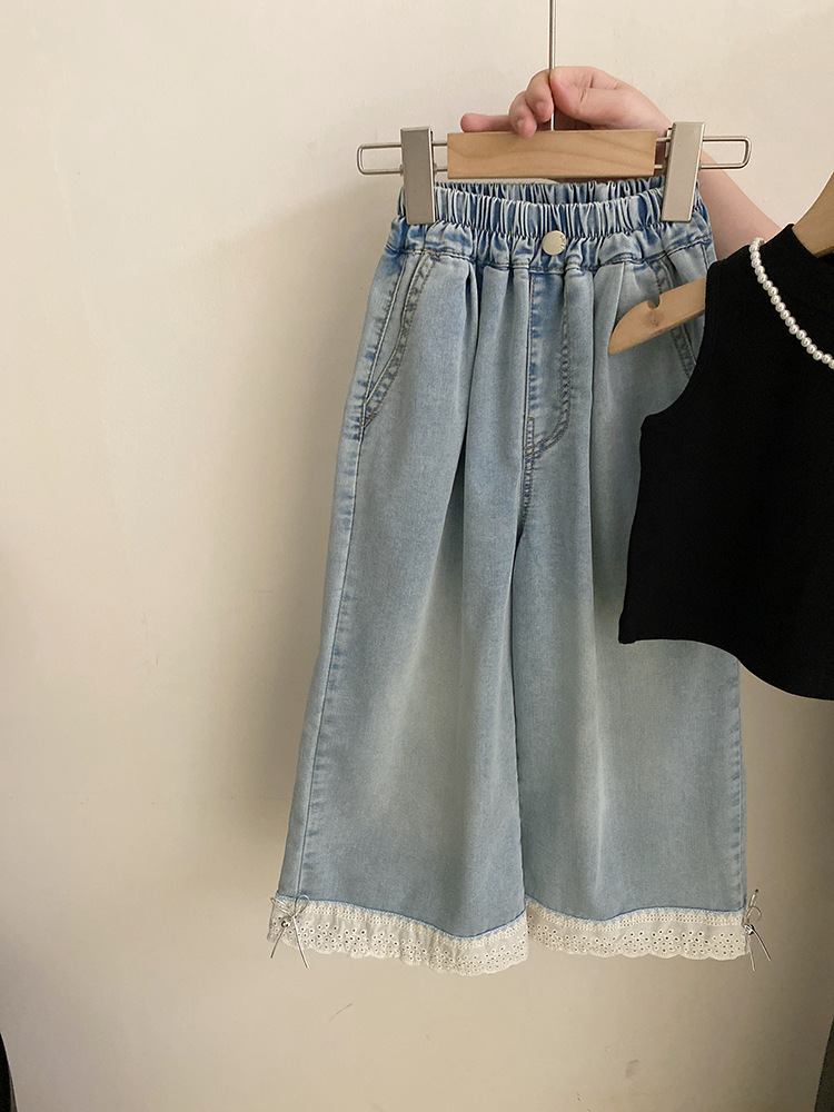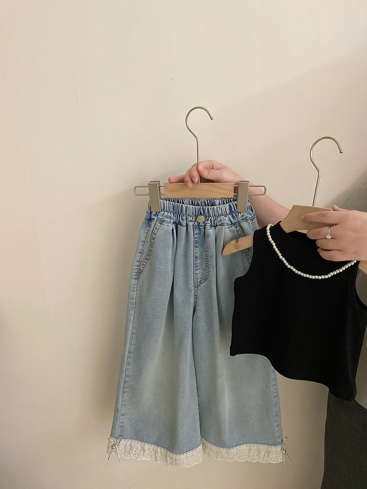 한국 스타일 걸스 여름 새로운 민소매 솔리드 컬러 올 매치 조끼 2025 느슨한 넓은 다리 레이스 청바지 투피스 세트